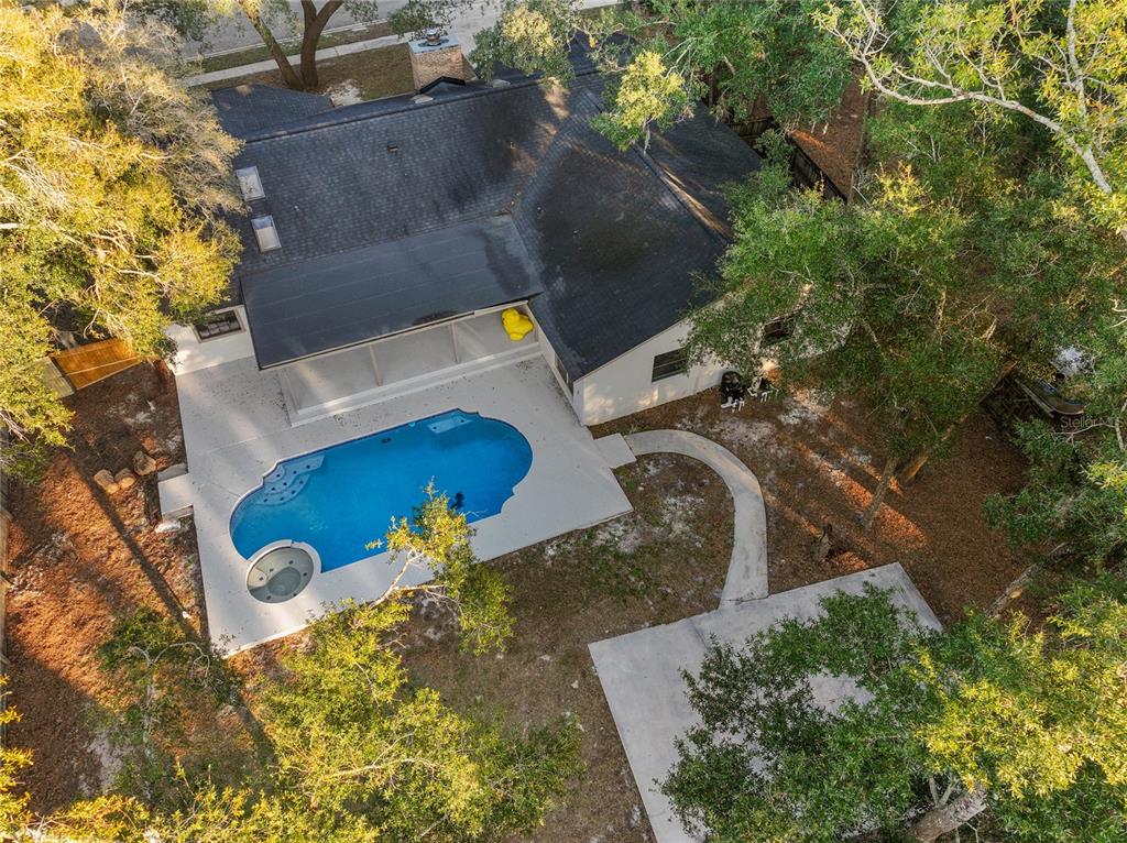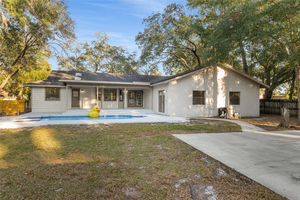 large covered lanai overlooking the large, fence enclosed backyard and steps away from your in ground swimming pool. a sport-court awaits weekends of pick-up basketball and other friendly competitions. backyard fencing makes for a perfect space for your family pet.
