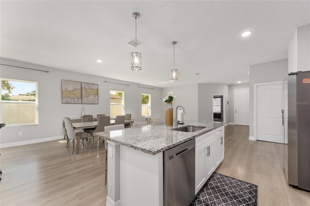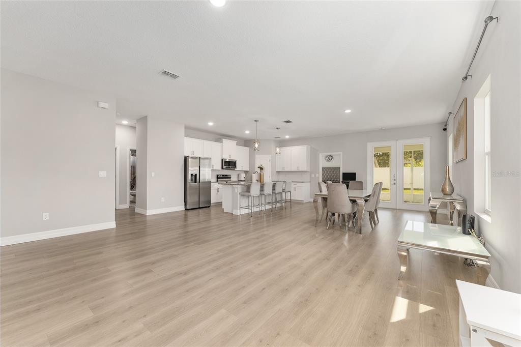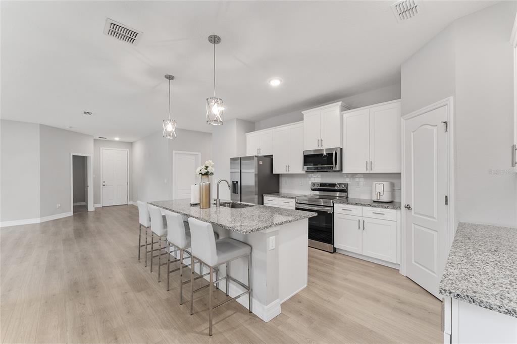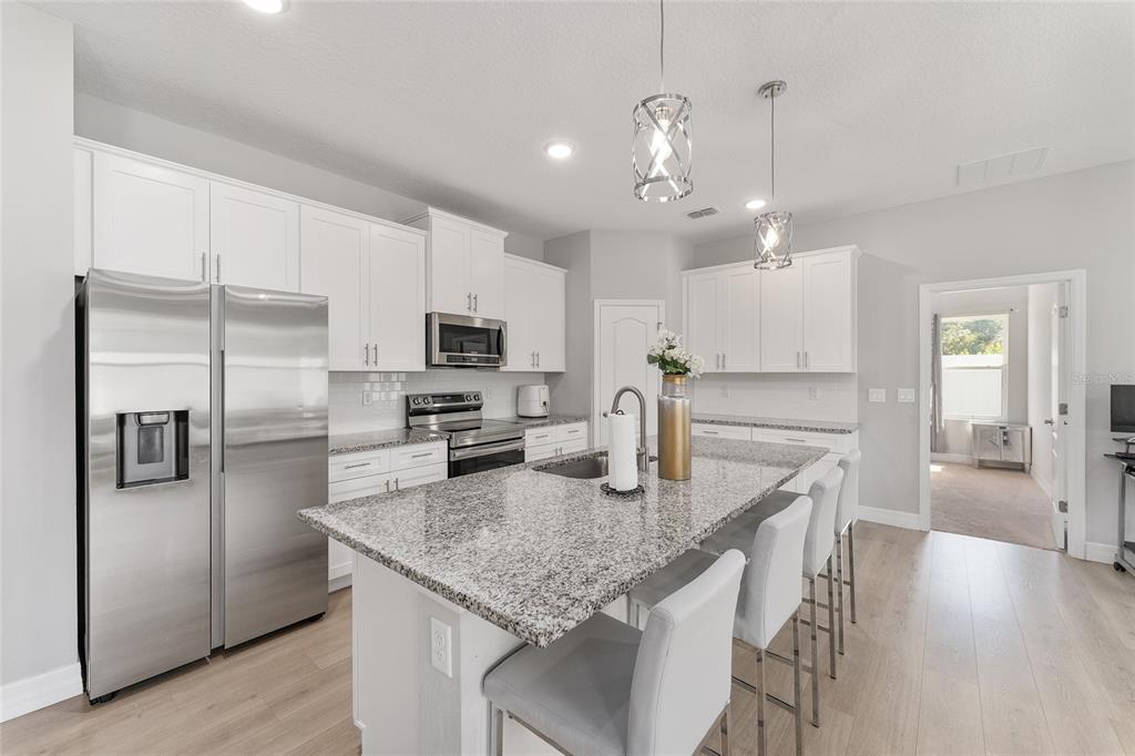 Excellent opportunity to own this beautifully upgraded 4-bedroom, 3-bathroom home at a new fantastic price adjustment. built in 2022, offering nearly 2400 sq ft under roof of open-concept living space. from the elegant dining and living room combination to the fully enclosed backyard retreat, every detail of this move-in-ready home has been designed for comfort and style. step into the spacious kitchen, a true showpiece, featuring stainless steel appliances, granite countertops, a large center island with breakfast bar, upgraded lighting, and a walk-in pantry—perfect for entertaining or everyday living. the primary suite is a luxurious escape, complete with tray ceilings, dual granite vanities and an oversized walk-in shower. two additional bedrooms provide ample space for family, guests. the 4th bedroom is a complete suite with its own private bath perfect for the in-laws. outside, enjoy privacy in your fully vinyl-fenced backyard which is perfect for all your pets. whether you're hosting gatherings or relaxing with a morning coffee, the enclosed patio creates a cozy, welcoming ambiance. a large shed adds extra storage or workshop potential. no hoa fees in this community. conveniently located minutes from i-75 and the hwy 200 corridor with its shopping, dining, and medical centers close to the renowned world equestrian center and its year-round events. don't miss the opportunity to own this exceptional property that combines modern living with unbeatable convenience!14055 SW 30TH TER, OCALA, FL 34473