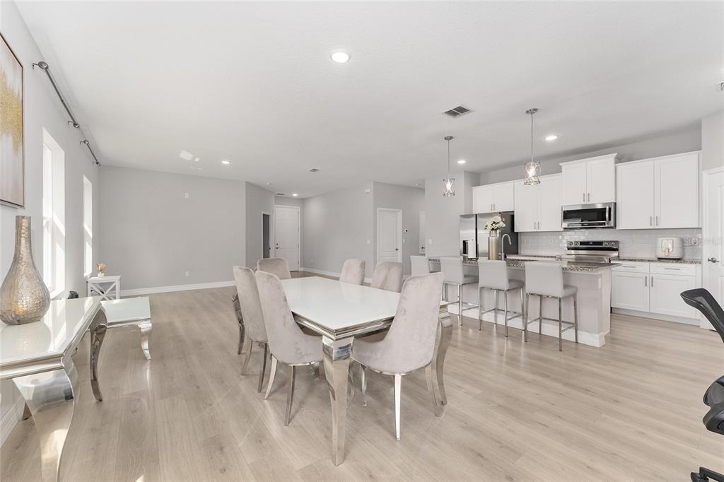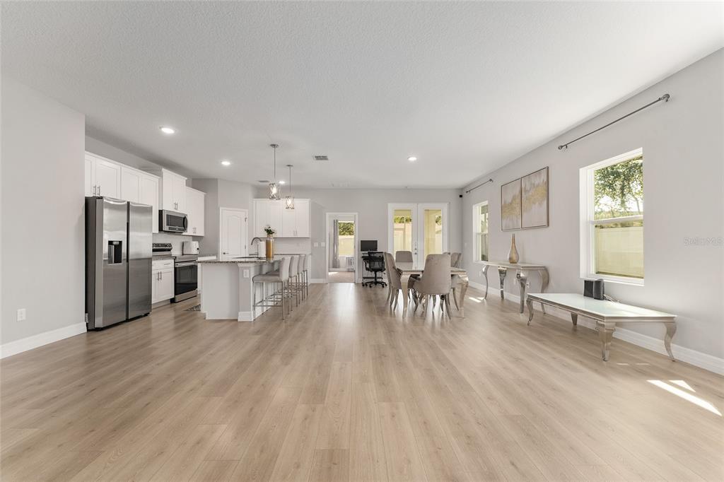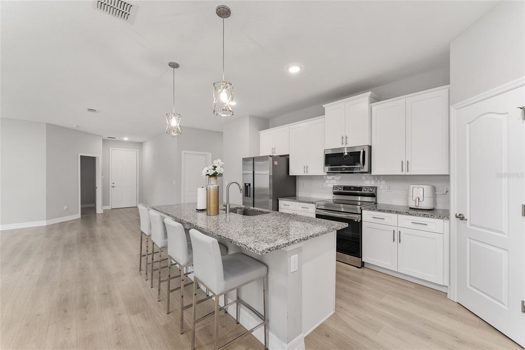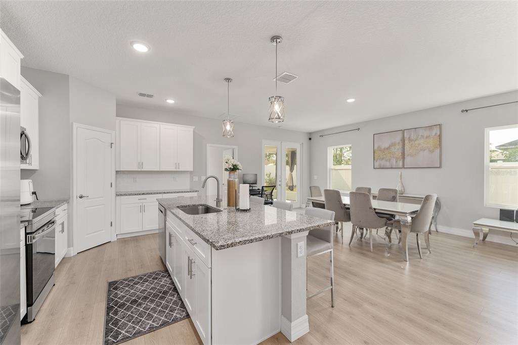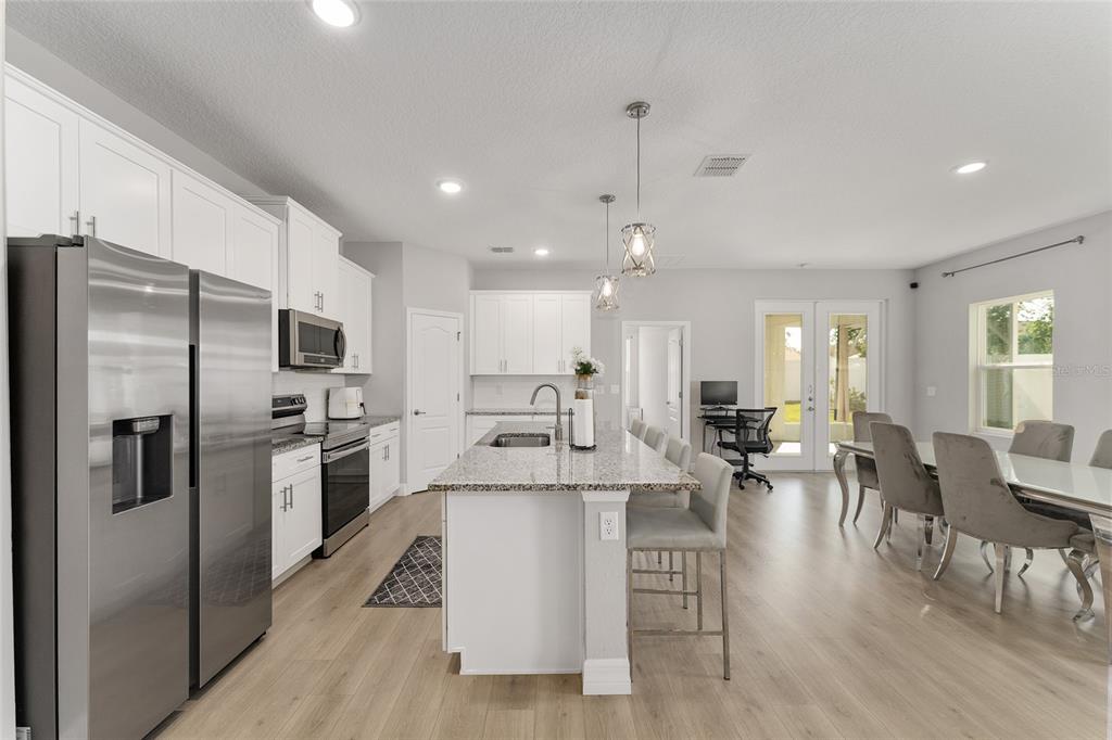 Excellent opportunity to own this beautifully upgraded 4-bedroom, 3-bathroom home at a new fantastic price adjustment. built in 2022, offering nearly 2400 sq ft under roof of open-concept living space. from the elegant dining and living room combination to the fully enclosed backyard retreat, every detail of this move-in-ready home has been designed for comfort and style. step into the spacious kitchen, a true showpiece, featuring stainless steel appliances, granite countertops, a large center island with breakfast bar, upgraded lighting, and a walk-in pantry—perfect for entertaining or everyday living. the primary suite is a luxurious escape, complete with tray ceilings, dual granite vanities and an oversized walk-in shower. two additional bedrooms provide ample space for family, guests. the 4th bedroom is a complete suite with its own private bath perfect for the in-laws. outside, enjoy privacy in your fully vinyl-fenced backyard which is perfect for all your pets. whether you're hosting gatherings or relaxing with a morning coffee, the enclosed patio creates a cozy, welcoming ambiance. a large shed adds extra storage or workshop potential. no hoa fees in this community. conveniently located minutes from i-75 and the hwy 200 corridor with its shopping, dining, and medical centers close to the renowned world equestrian center and its year-round events. don't miss the opportunity to own this exceptional property that combines modern living with unbeatable convenience!14055 SW 30TH TER, OCALA, FL 34473