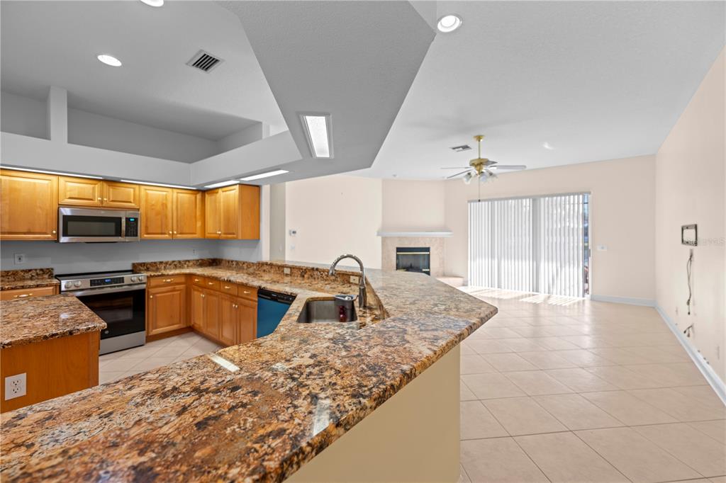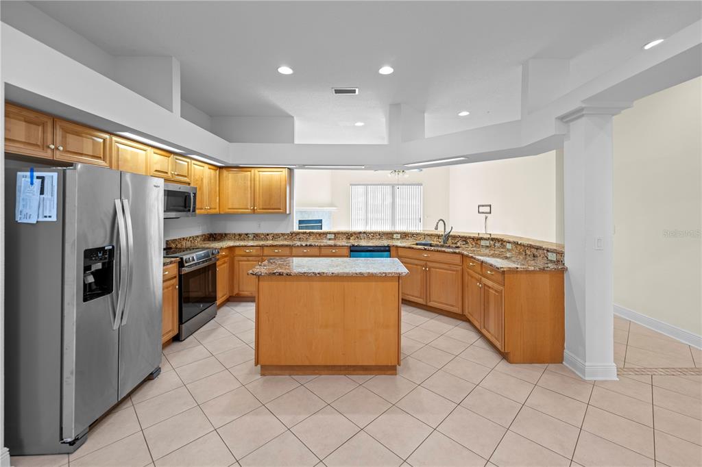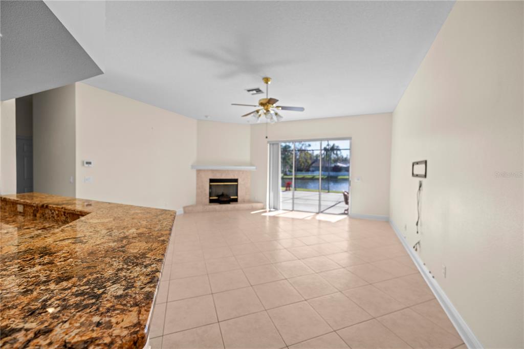 Huge price reduction!! nestled in the gated community of manor isle, this upgraded home offers a serene waterfront setting and exceptional design. enter through double glass doors to a tiled foyer flanked by a formal dining room with a bay window and a spacious living room, both featuring plantation shutters. the heart of the home is a large eat-in kitchen with granite countertops, a breakfast bar, maple cabinetry, a double-wide pantry, and a center island. it opens to a cozy family room with a wood-burning fireplace and triple sliders leading to a massive 55’ x 30’ screened lanai, perfect for entertaining or relaxing. the owner’s suite also opens to the lanai and features a luxurious bath with a state-of-the-art shower, garden tub, dual vanities, and two walk-in closets. a guest suite with an ensuite bath doubles as a pool bath. upgrades include new porcelain tile, granite countertops in all baths, security window film, dimmer switches, and decorative baseboards throughout. conveniently located near top shopping, dining, medical facilities, and major highways, this home is a true gem. don’t miss your chance to own this stunning property!1406 DEERBOURNE, WESLEY CHAPEL, FL 33543