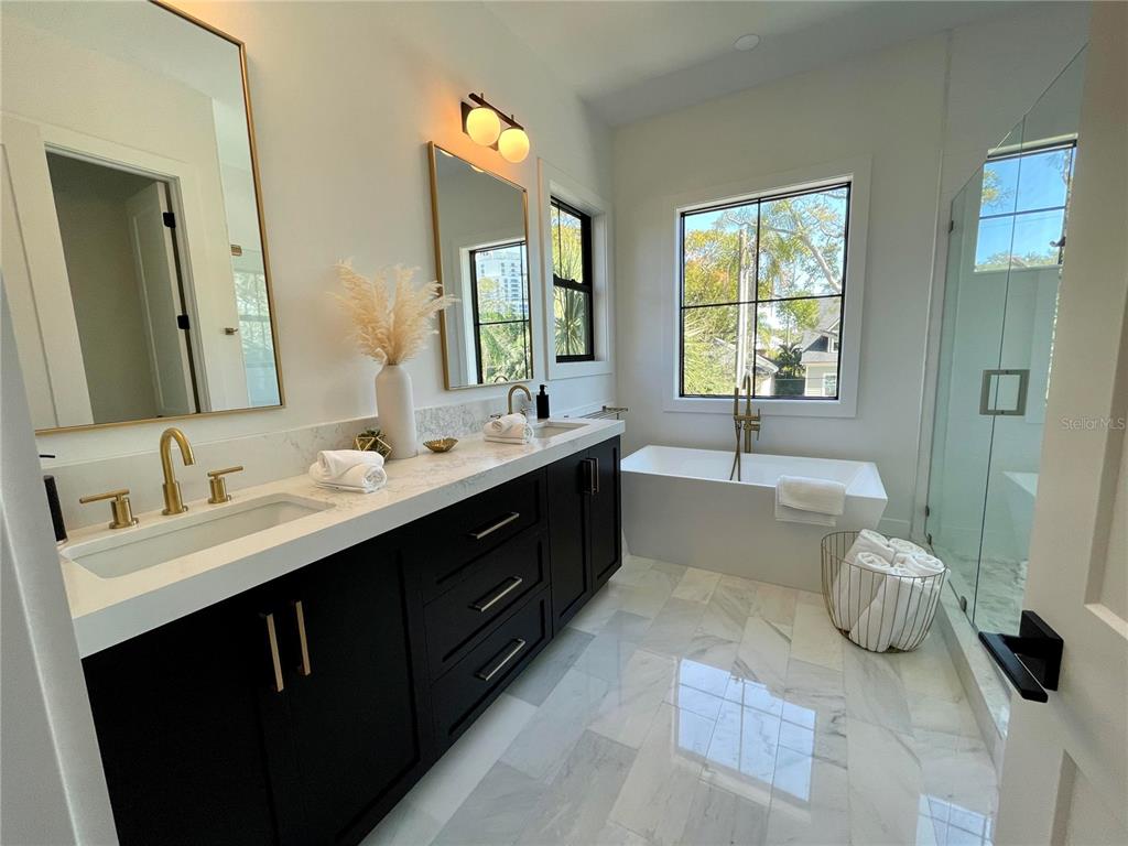 New construction completed 2023. upscale modern farmhouse townhome in highly desired south tampa neighborhood. walking distance to bayshore boulevard, howard ave and hyde park village. home contains 4 bedrooms, an office, and 3.5 baths. highlights: custom floor plan to maximize livable space, natural light throughout, hardwood floors throughout, quartz counters throughout, floor to ceiling kitchen cabinets, ge monogram appliances, gas fireplace, large covered back patio with generous green space (plumbed for outdoor kitchen and tv), oversized impact windows, dry bar with wine cooler, stand alone tub in master bath, 2 walk in closets in master, pot filler over gas range, 10 ft ceilings on both level.Townhouse 4 bedrooms - NEAR BAY SUB for Sale