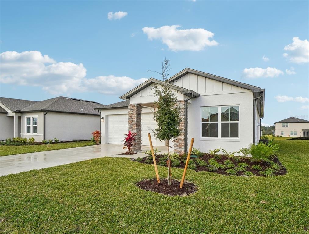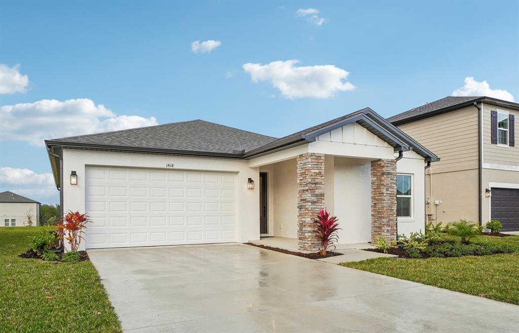 Under construction. brand new home located in deltona, just minutes north of orlando. this is our most popular 3 bedroom home with lots of storage space. the private covered lanai is a great place to enjoy the quiet backyard that backs up to our wet/dry retention. this home features our harmony premium collection. white 42' cabinets with large island and single basin stainless sink. the kitchen also features stainless steel appliances. primary suite has a bathroom to impress with optional toilet room door, frameless shower, large walk-in closet, and extended vanity. shower has a bench and niche for added luxury. upgraded baseboards also included.1418 ARBOR HL, DELTONA, FL 32725