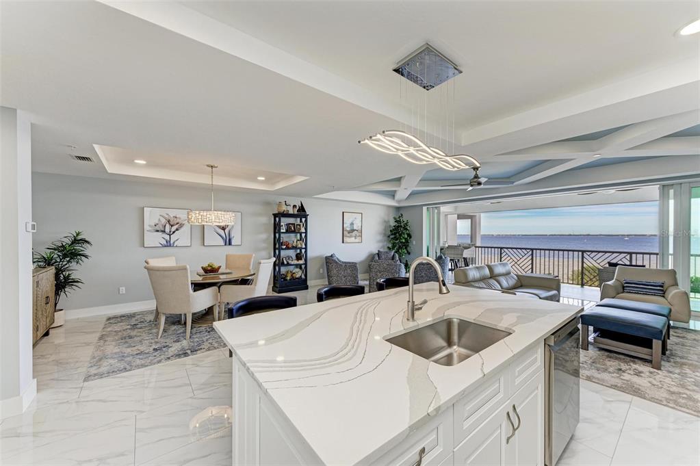 Option to buy furnished! two parking places! gorgeous top floor unit at paradise pointe, punta gorda isles' newest luxury condo complex with unobstructed views of charlotte harbor, sunseeker resort, fishermen's village, and more! tons of upgrades and customizations await in this unit, with beautiful plantation shutters, upgraded light fixtures, high-end appliances, added electrical components for ease of use, updated plumbing fixtures, and new paint complimenting the coastal decor (furniture available separately). it also has 2 under building parking spots-space 5 &6 with 4 storage containers! each unit has 174 square foot covered & tiled balconies overlooking the harbor with a wall of impact rated pocket sliders that open up the interior of the unit to the outdoors. inside, find 24"x"48" porcelain tile throughout with solid wood doors, quartz counters, soft close cabinetry, custom trim work and ceiling details, fans both inside and outside, with a great layout where every square inch of space is utilized perfectly. the guest bedroom has an en-suite bathroom and walk-in closet, as does the master suite, with separate soaking tub and glass/tile shower with dual vanities. an inside utility room with extra cabinetry and a storage closet are just down the hall along with a 1/2 bathroom located just off the main living areas for guests. the kitchen, dining, and living areas are all open and perfect for entertaining, with beautiful finishes from top to bottom. the property was built with concrete pilings, walls, and floors, and impact rated windows and doors, and has upgraded high-speed internet access/security in every unit. paradise point has a massive swimming pool and spa, keycard access to the secure lobby and elevator, 24 camera security, luxurious landscaping, a fire pit/recreation area, and a grilling area. nearby to fishermen's village, downtown punta gorda, ponce park & boat ramp, great golfing, fishing, boating, marinas, restaurants, and other great local waterfront amenities, along with access to several airports for easy travel, come see why paradise pointe should be your new home for the southwest florida lifestyle of your dreams! be sure to click the full virtual tour links for details!1425 PARK BCH #149, PUNTA GORDA, FL 33950