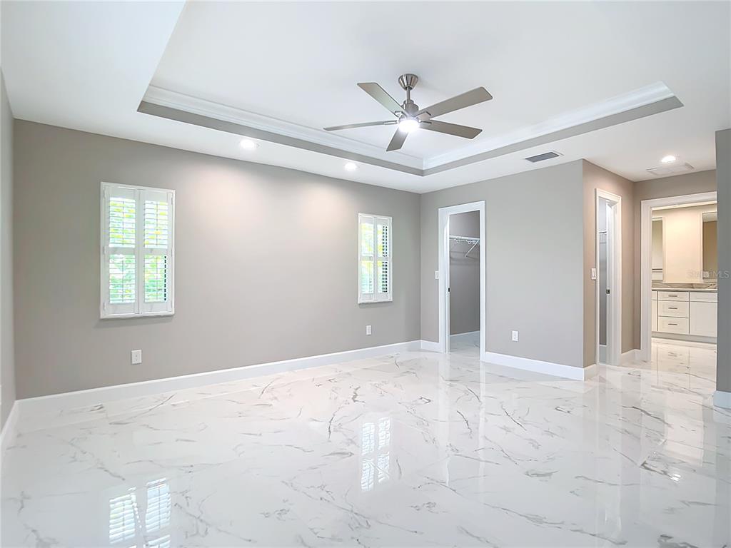 Split Bedroom Walk-In Closet(s)Ceiling Fan(s) Eating Space In Kitchen High Ceilings Stone Counters Thermostat Open Floorplan Solid Surface Counters Solid Wood CabinetsCrown Molding Primary Bedroom Main Floor Coffered Ceiling(s) Tray Ceiling(s)Exterior Features: