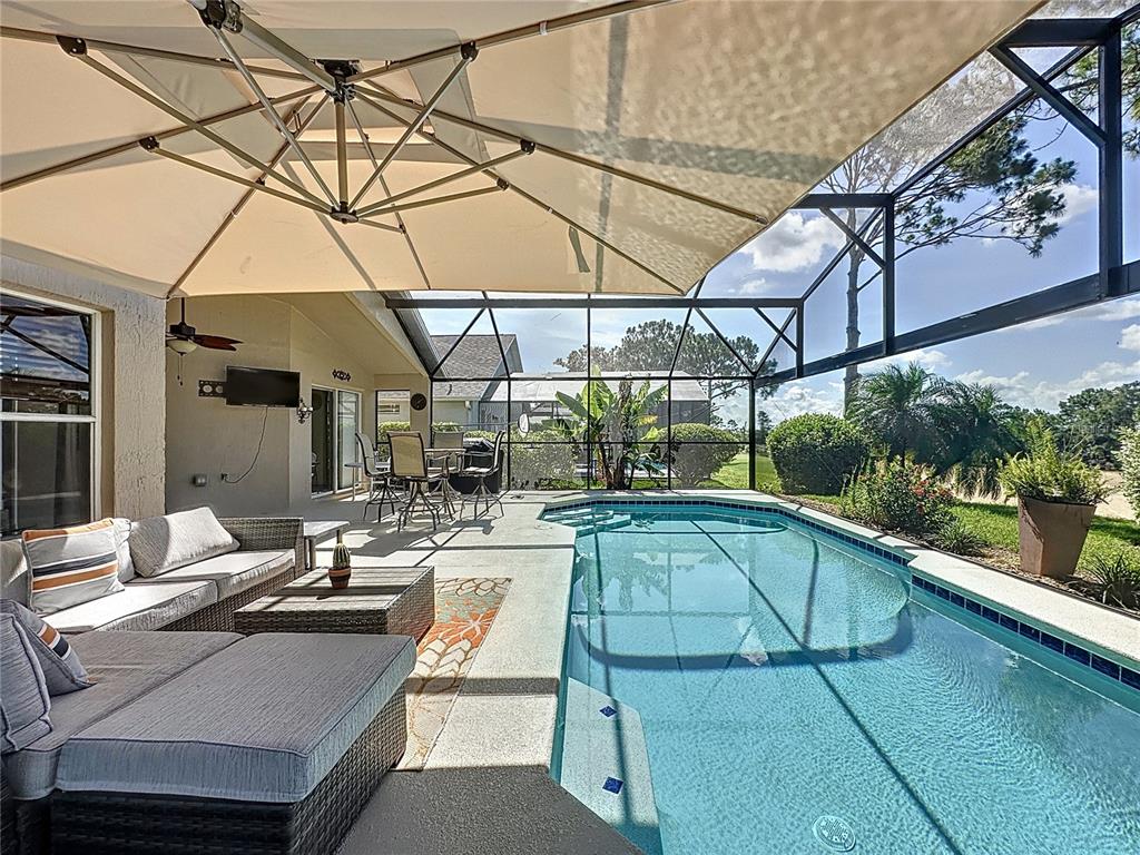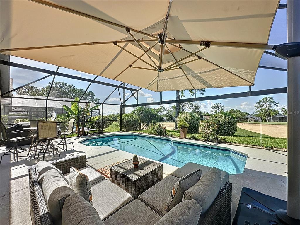 Adjusted price, great value for money! stunning golf course home in the prestigious golf community of southern dunes. *2018 roof * 2022 ac * whole house water filtration system* panormaic pool screen with golf course view*. this home shows real pride of ownership. solid surface counters, luxurious new carpet and custom cabinetry in the dining area make you feel like you want to relax and stay a while. the refinished pool deck is south facing and features a panoramic pool screen to really take in the beautiful golf course view. the lanai has a beautiful covered area for relaxing and enjoying the view of the course. the layout of this home is wonderful with two master suite's (primary bath has pool access) and 2 additional bedrooms, making this perfect as a vacation rental investment winter home or permanent residence. both bathrooms have had elegant upgrades including vanities with granite counters. the home is offered with some furniture and has a relaxing and elegant feel to it in one of the areas premier golf communities. located in the highly acclaimed, 24-hour guard-gated southern dunes golf & country club, the community also offers tennis courts, a clubhouse, playground and more. shops, restaurants, and daily conveniences are just minutes away, with easy access to both orlando and tampa, the gulf and atlantic beaches, and major airports. fairway homes of this standard are rarely available so come and see it for yourself today, you'll be glad you did!1428 PARK, HAINES CITY, FL 33844
