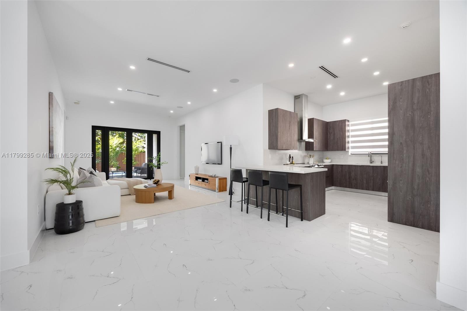 Welcome to this stunning 2022-built contemporary home in highly sought-after east shenandoah. nestled on a picturesque tree-lined street, this turnkey residence offers a modern open layout with soaring ceilings & expansive living spaces. the gourmet kitchen features a breakfast bar, premium cabinetry, & top-tier appliances. the luxurious primary suite boasts a sleek spa-like bath with a double vanity & two closets, including a large walk-in. step outside to your private backyard oasis with a covered patio & sunlit pool. additional highlights include impact windows & doors, a 1-car garage, & a dedicated laundry room. ideally located in the heart of miami, just minutes from brickell, coral gables, and coconut grove, this home perfectly blends quality, tranquility, and convenience.1436 SW 16TH ST, MIAMI, FL 33145