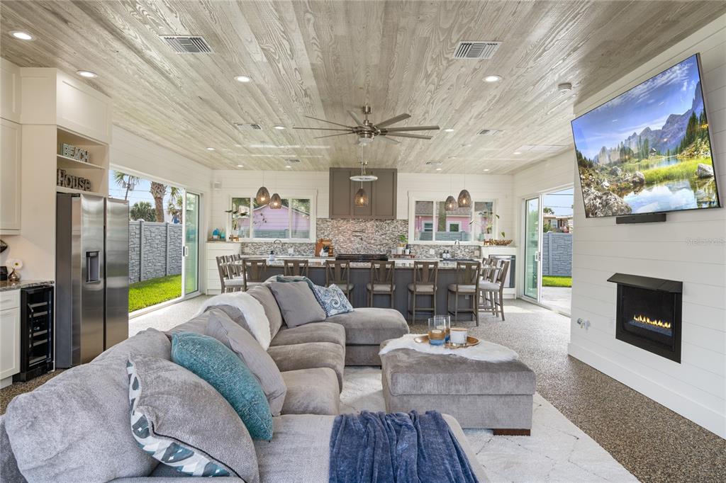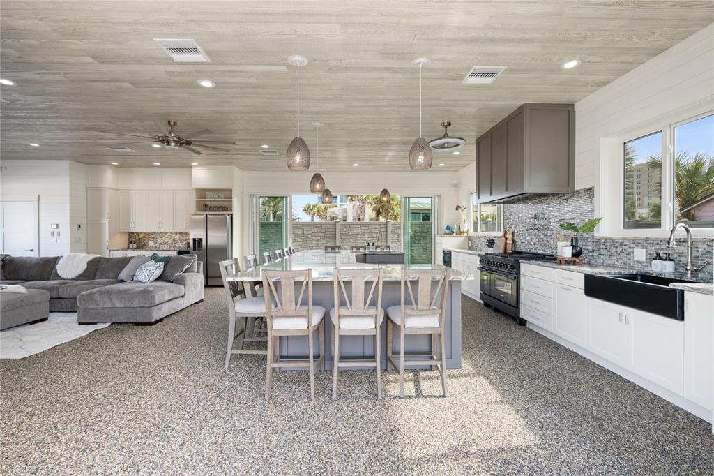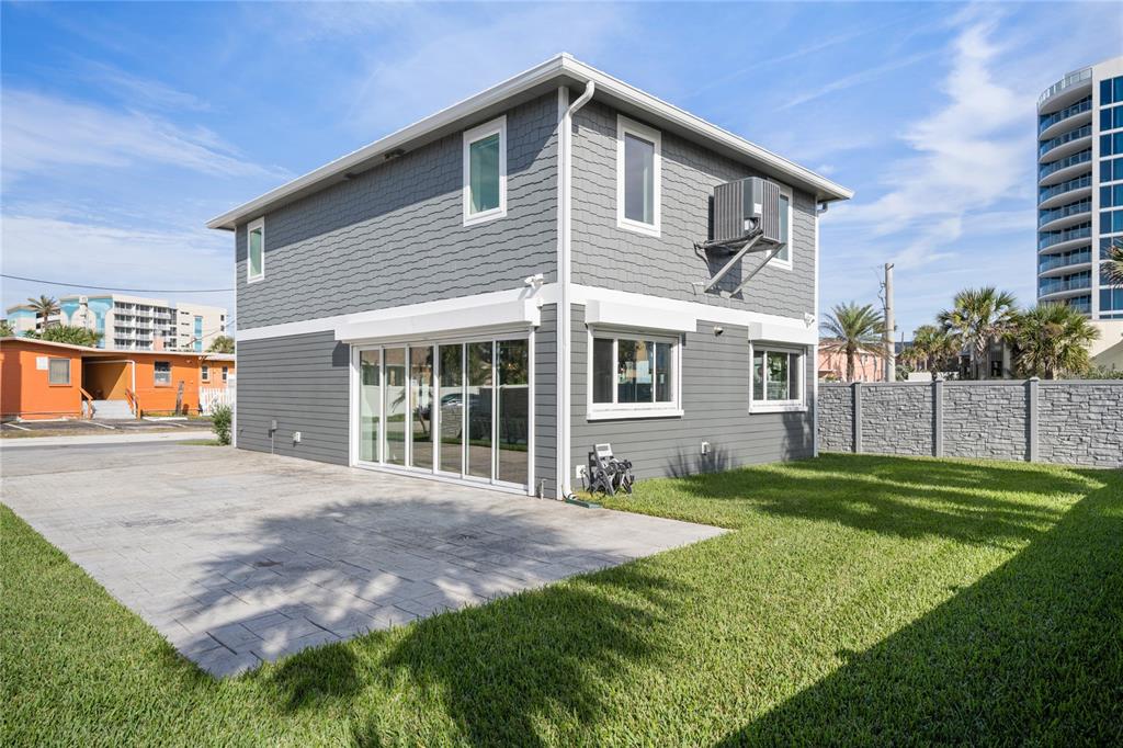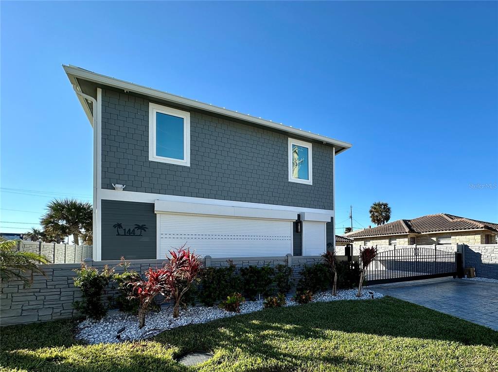 Newly built luxurious beach house. this ocean view home is an entertainer's dream with indoor/outdoor living at its best. this is a must see. no expense was spared in constructing this optimal beach home featuring icf construction, 4'' block concrete walls, 2'' spray foam insulation, metal roof, hurricane rated windows and doors, starboard cabinets, pvc shiplap walls, pebble flooring, dual zone ac/ heat, natural gas that powers the tankless hot water system and automatic hurricane shutters. this house has been constructed to withstand the worst of hurricanes. enjoy the open concept main floor chef's kitchen featuring a huge island that seats twelve, a 48'' natural gas stove with dual electric oven and pot filler, dual beverage coolers, dual sinks, and undercounter commercial ice maker. a large living room offers a beautiful natural gas fireplace, wet bar with a wine fridge, and a half bathroom. open up the expansive sliding doors to create an impressive indoor outdoor vibe. the shiplap walls and bright and airy colors throughout gives you a modern coastal feeling. the 2nd floor offers two primary bedrooms, each with their own ensuite bathroom, built in custom closet cabinetry and an ocean view balcony. the second floor also offers a laundry closet with stacked front load washer and dryer with built-in cabinets for storage, countertop for folding and a trash can for your lint and trash. the exterior is gated and fenced in and offers a true rv pad with water, a clean out and can fit an impressive 45' rv or just bring all of your cars and toys to keep safe beyond your private fence and keypad/remote driveway gate. electric hurricane shutters enclose the entire downstairs and upstairs balcony when needed. directly across the street is the public walkway to the beach. all information is intended to be correct but should be verified by the buyer and buyers agent.144 FRAZAR, DAYTONA BEACH, FL 32118