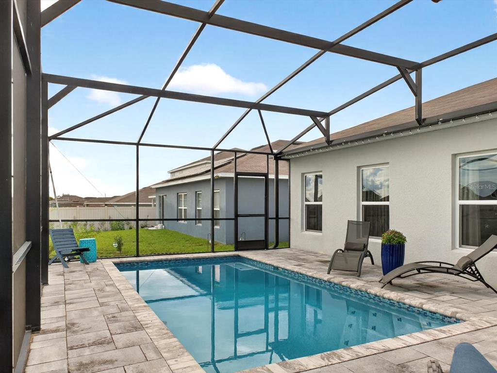 Don’t miss your chance to own a beautifully designed four-bedroom, two-bath salt-water pool home in the popular southern crossing neighborhood of davenport. this split floorplan features an open living area with ceramic tile flooring throughout. when you enter, the first two bedrooms are at the front of the house, with a third bedroom across the hall. the laundry closet is centrally located for easy access from all three bedrooms. the great room combines the kitchen, dining, and living spaces for easy entertaining or everyday family life. the kitchen includes a center island with a breakfast bar, walk-in pantry, modern backsplash, and updated finishes. step outside to a screened lanai and private salt-water pool—ideal for relaxing, hosting friends, or enjoying the florida weather. there’s plenty of space for outdoor dining and seating, making the backyard a comfortable spot for recreation and downtime. the layout makes it easy to move between indoor and outdoor spaces, so you can enjoy your home year-round. southern crossing offers convenient access to major highways, schools, hospitals, and shopping. schedule a visit today to see this home in person.144 SILVER MAPLE, DAVENPORT, FL 33837