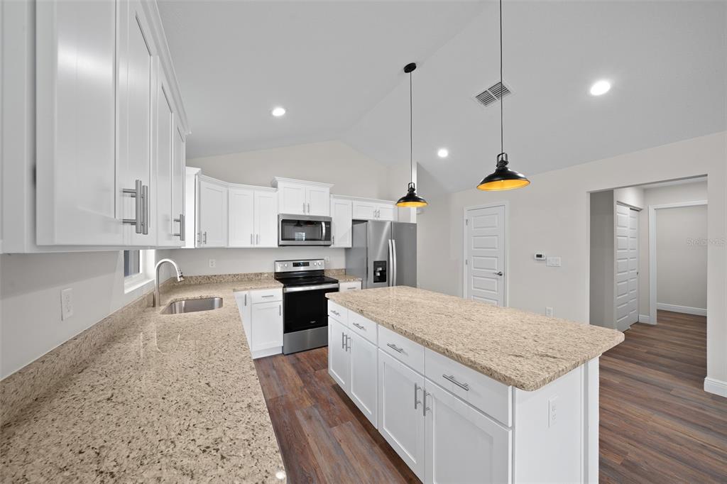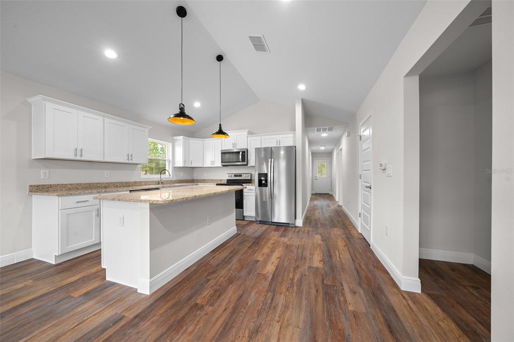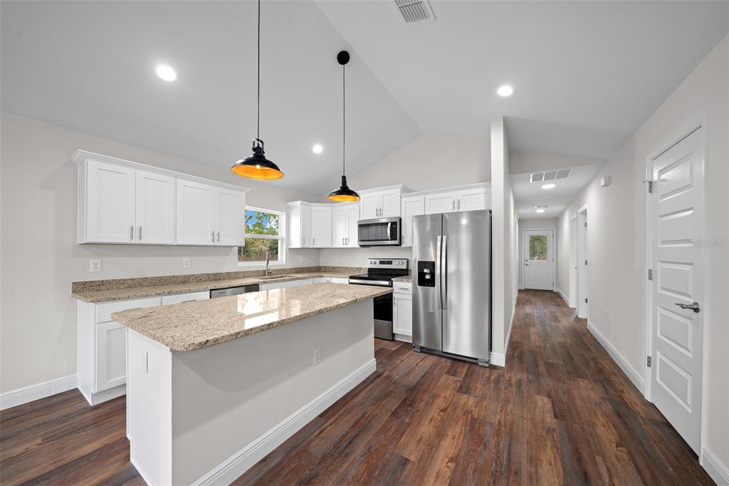 One or more photo(s) has been virtually staged. one or more photo(s) has been virtually staged. back on the market. buyer could not fullfill contingency. adorable cottage style home under construction. this 3/2 home features a great, open layout. large kitchen with all wooden cabinets, soft close, granite countertops, stainless steel appliances and walk in pantry. living room with vaulted ceilings for an open, airy feeling. the master bedroom has a tray ceiling, large walk in closet and double window for plenty of light. master bathroom with tiled shower, double sink and granite counter tops. luxury lvp flooring all throughout, inside laundry room, large guest bath with tub and tile features. covered front and back patio to enjoy the quiet this property has to offer. the pictures are stock photos and colors and features may vary. buyers can make certain color choices during construction process. property does not back up to the farm. this was a similar model. some photos are virtually staged. easy access to hwy 40 and close proximity to wec, hits, rainbow river and more. builder will give $5000 credit towards buyers closing cost or home upgrades.14409 SW 30TH, OCALA, FL 34481