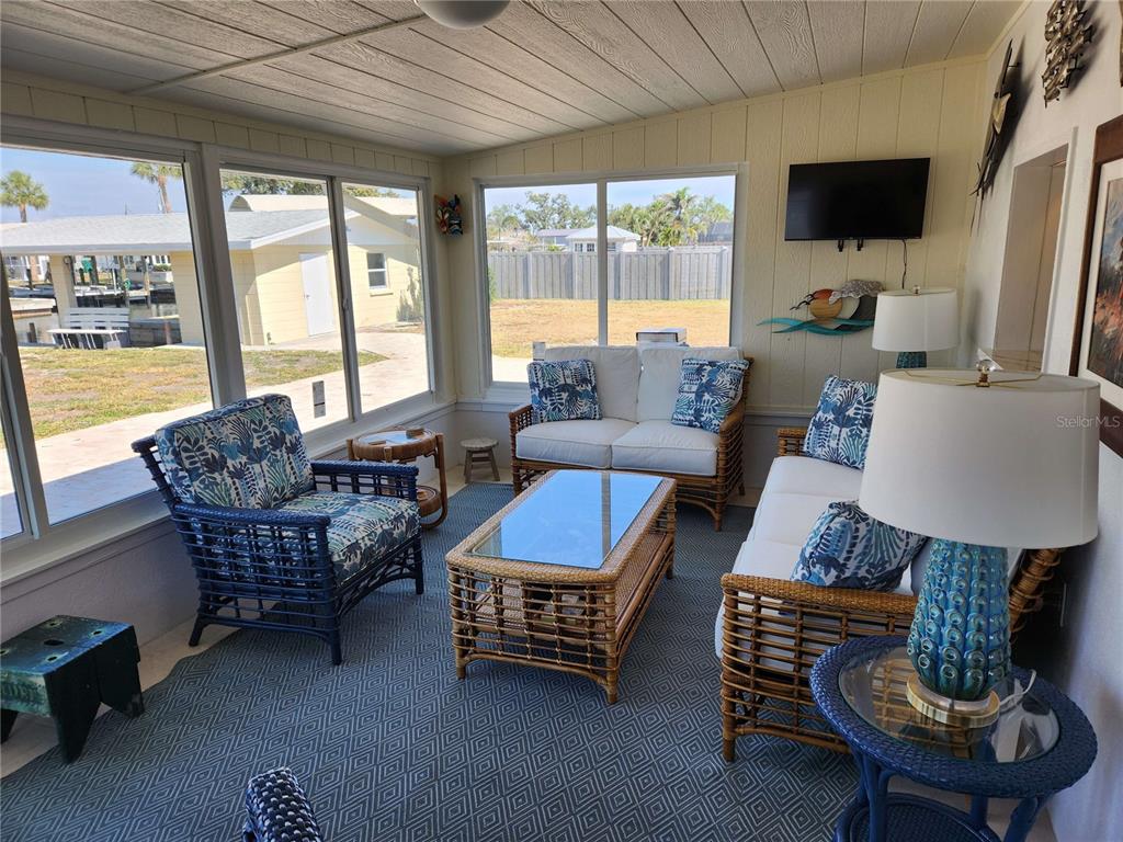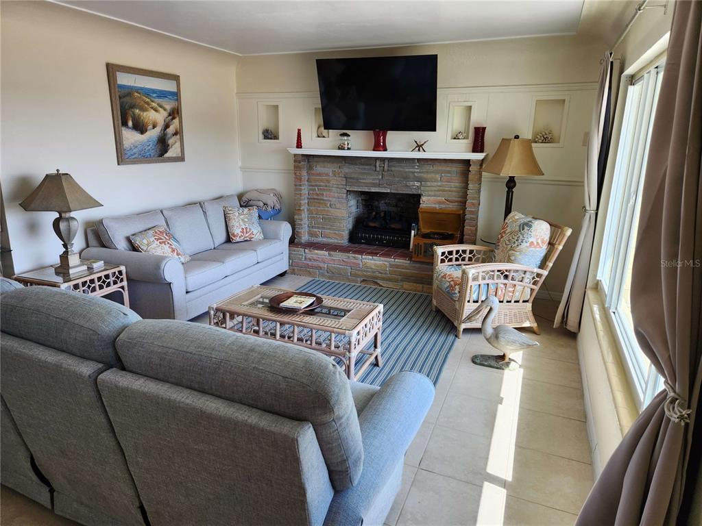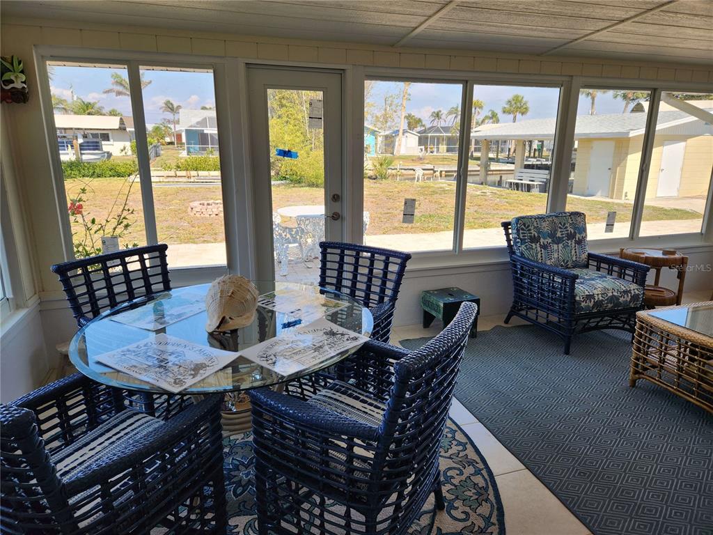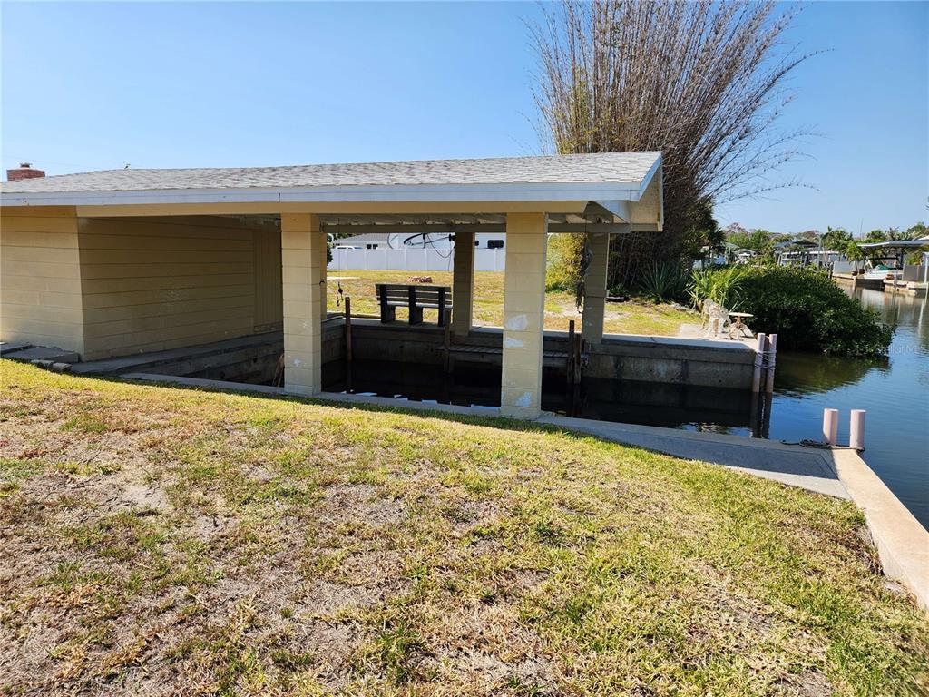Beutiful ranch home. no steps. single car garage, could be converted to master bed room suite. oversized lot allows for an accessory garage w/ upper room and a guest house. unique boat house w/ covered slip.remodeled in 2024. all tile floors. new impact doors and windows, masonary fireplace w/ electric logs and heat. plenty of space for pool and hot tub.1447 LEMON BAY, ENGLEWOOD, FL 34223