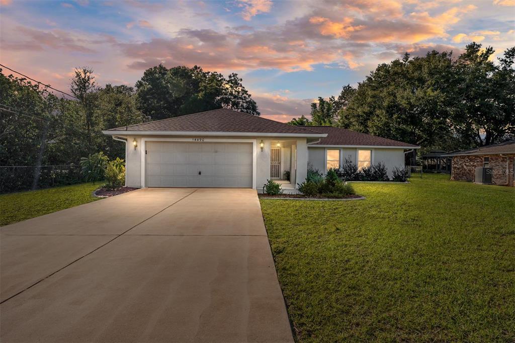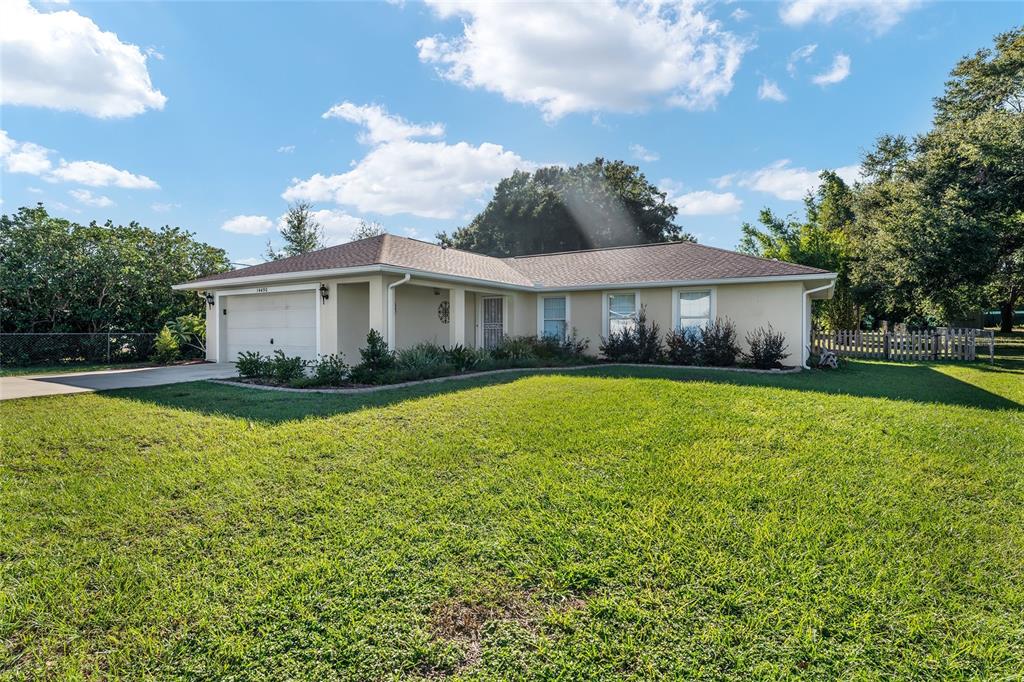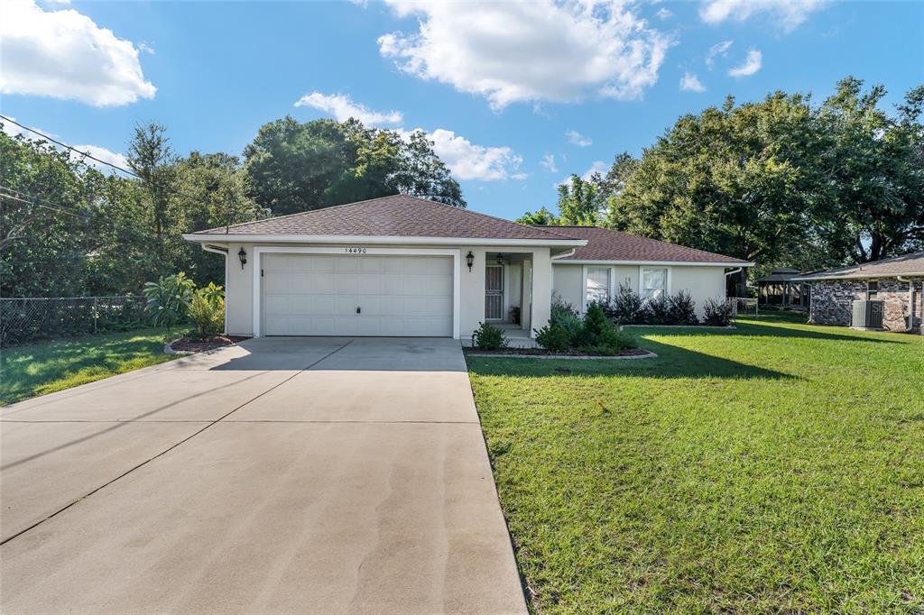 Welcome home to this 3/2 block & stucco with a 2 car garage home situated on an oversized lot in the quaint town of summerfield. the location is ideal, with close proximity to the villages, belleview, shopping, & more. located near well rated schools for all ages. as you make your way up the sidewalk to enter the home you will appreciate matured landscaping, a storm door for all seasons, and a well kept neighborhood. entering the home, you will notice a split floor plan, no carpeting with luxury vinyl flooring, inside laundry & neutral paint! the kitchen and dining area boast ample space for all your culinary inspiration. the primary bedroom is large, featuring a walk in closet. the split floor plan brings plenty of privacy for both guest bedrooms with spacious closets. enjoy your days on the covered screened in back porch leading you out to a pergola covered patio. the backyard is an outdoor lovers dream, over a half acre lot with plenty of privacy and a shed on the back of the property for storage. leave your mind at ease as the hvac was replaced in 2019 & roof replaced 2022. call today for your private tour!14490 SE 96TH, SUMMERFIELD, FL 34491