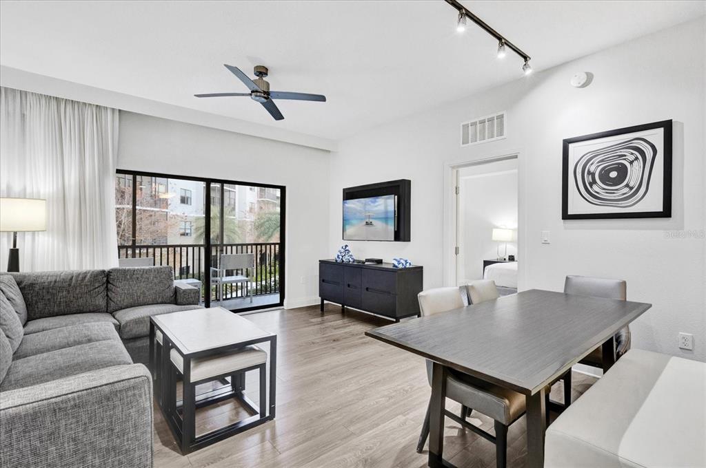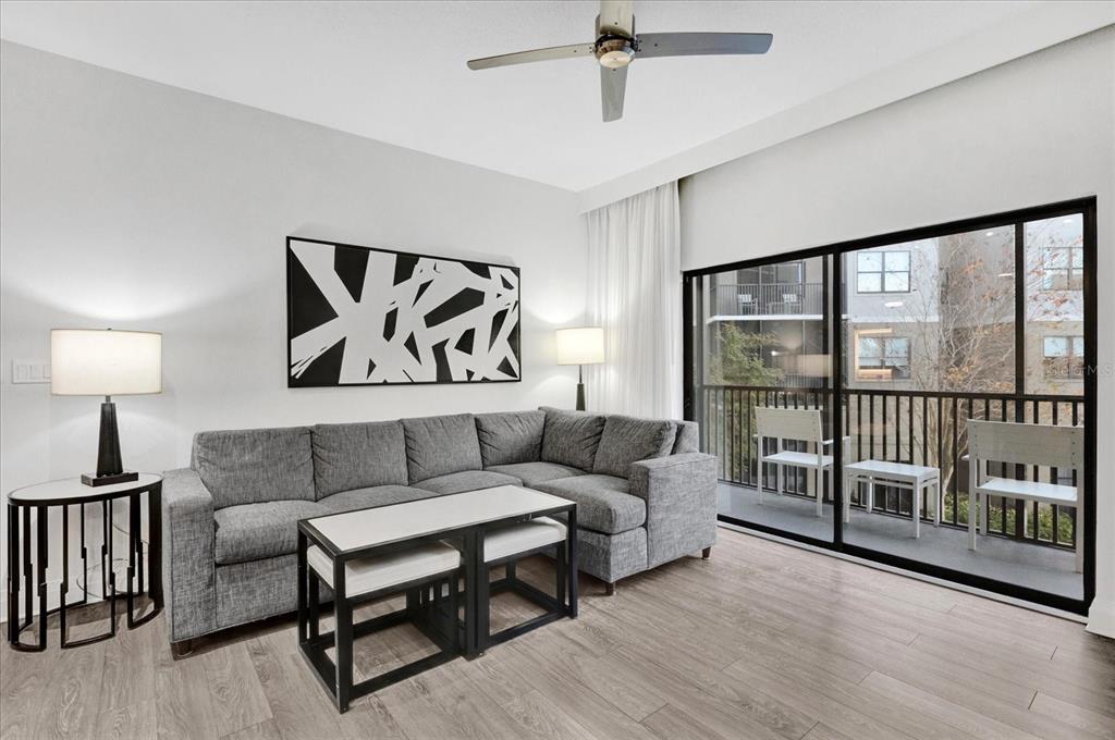 Experience the ultimate in comfort and convenience at the grove resort and spa! this fully furnished 3 bedroom condo, located just minutes away from disney and orlando's top attractions, offers the perfect blend of luxury and relaxation. situated on the second floor, this condo features a screened-in balcony with a stunning view of the courtyard-a rare perk not found in all units. whether your watching live events or simply enjoying the peaceful surroundings, this view is sure to impress. the location is unbeatable-two staircases conveniently lead you directly to the pools and waterpark. spend your days enjoying thrilling water slides, a lazy river, a splash pad, and a poolside bar and restaurant. or, take in the peaceful ambiance of lake austin at the covered fishing pier. with something for everyone, the resort boasts an arcade, glow-in-the-dark mini golf, a full service spa, gym, dining options, convenience store and poolside bar. the condo has a parking garage for added convenience, and with the disney shuttle service, you can easily skip the hassle of parking at the parks. the condo is fully equipped so just pack a suitcase and you're ready to enjoy. the open floor plan with a split primary bedroom is a favorite among visitors. the vinyl flooring, stainless steel appliances, granite counters, and neutral furnishings add to the beauty of this home. three of the tv's were new in 2024. when you aren't able to enjoy the condo yourself, an onsite management company handles renting the condo for you. don't miss your chance to own a slice of paradise-book your tour today!14501 GROVE RESORT AVE #3208, WINTER GARDEN, FL 34787