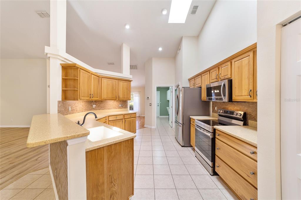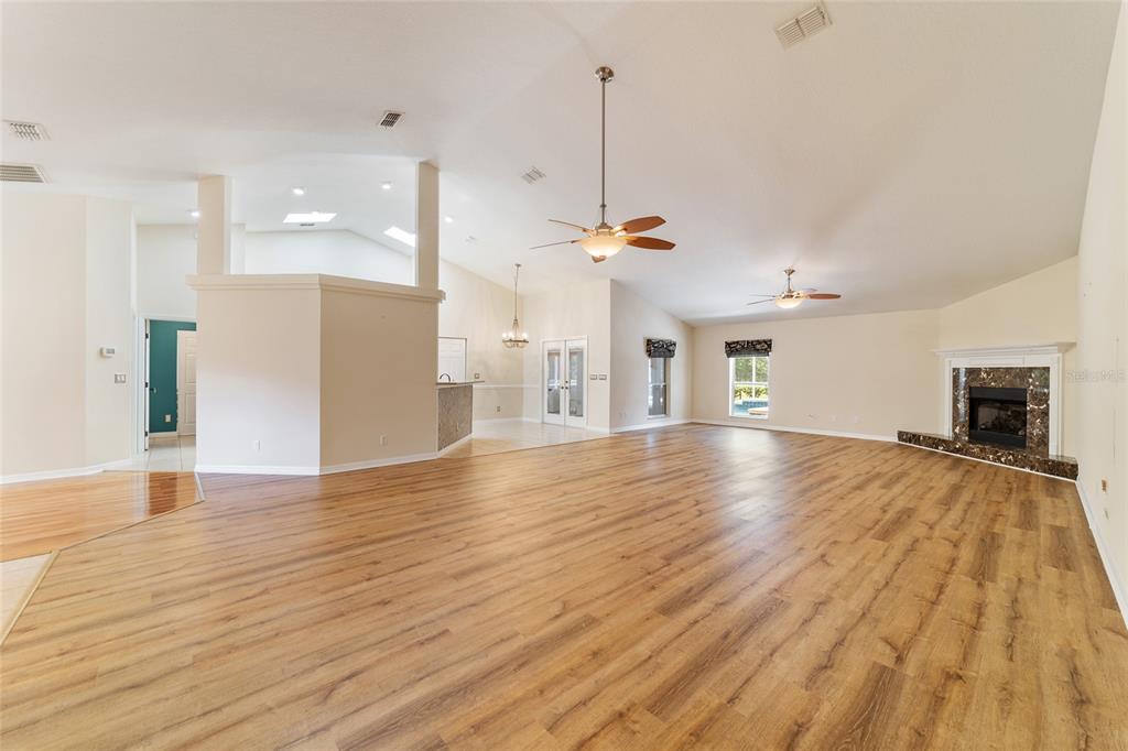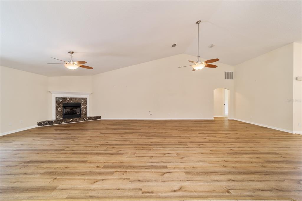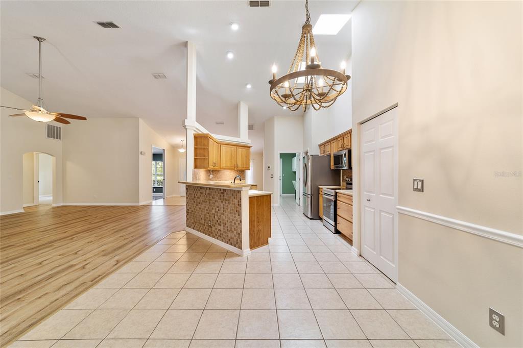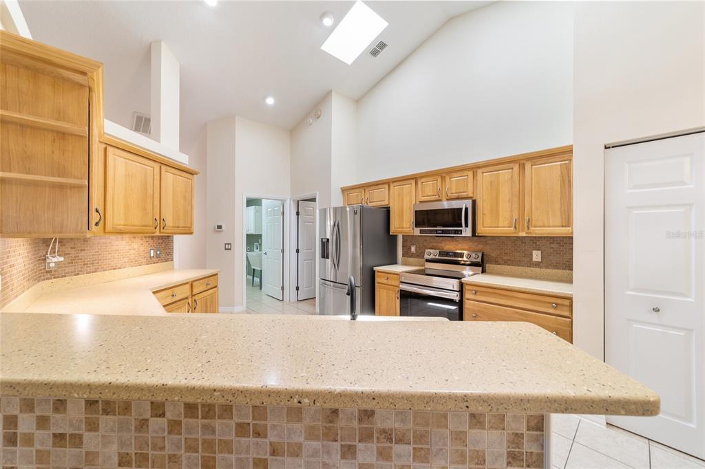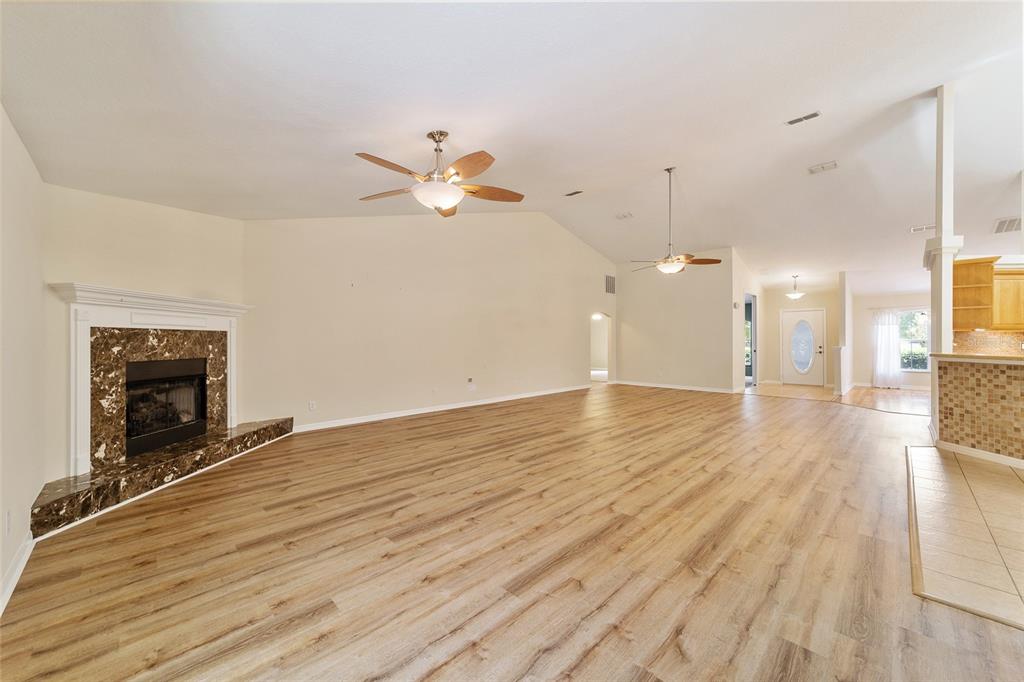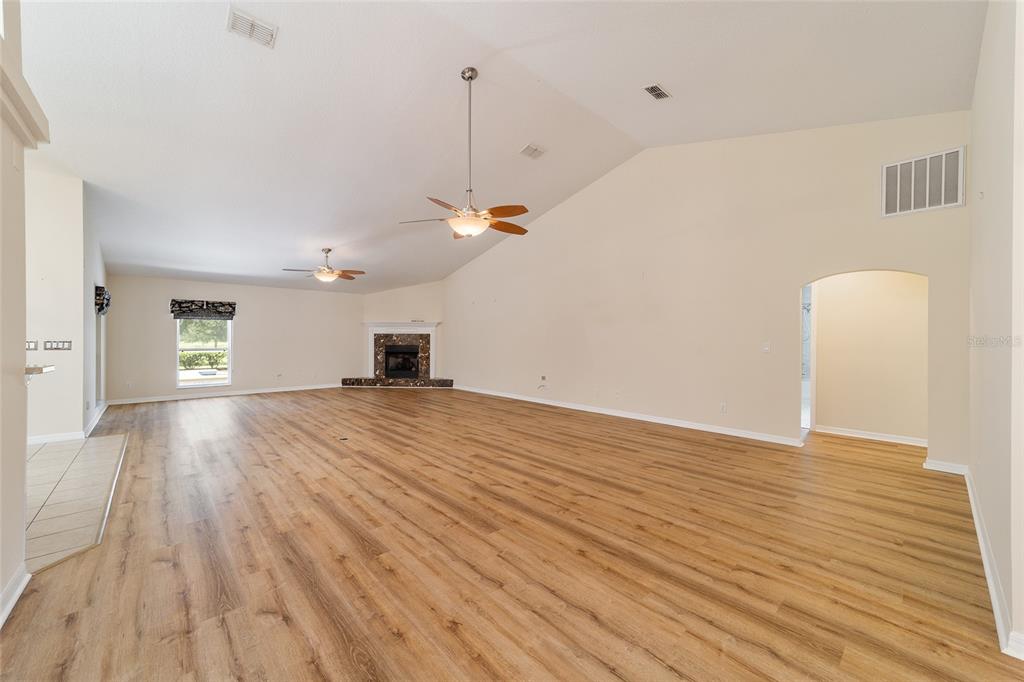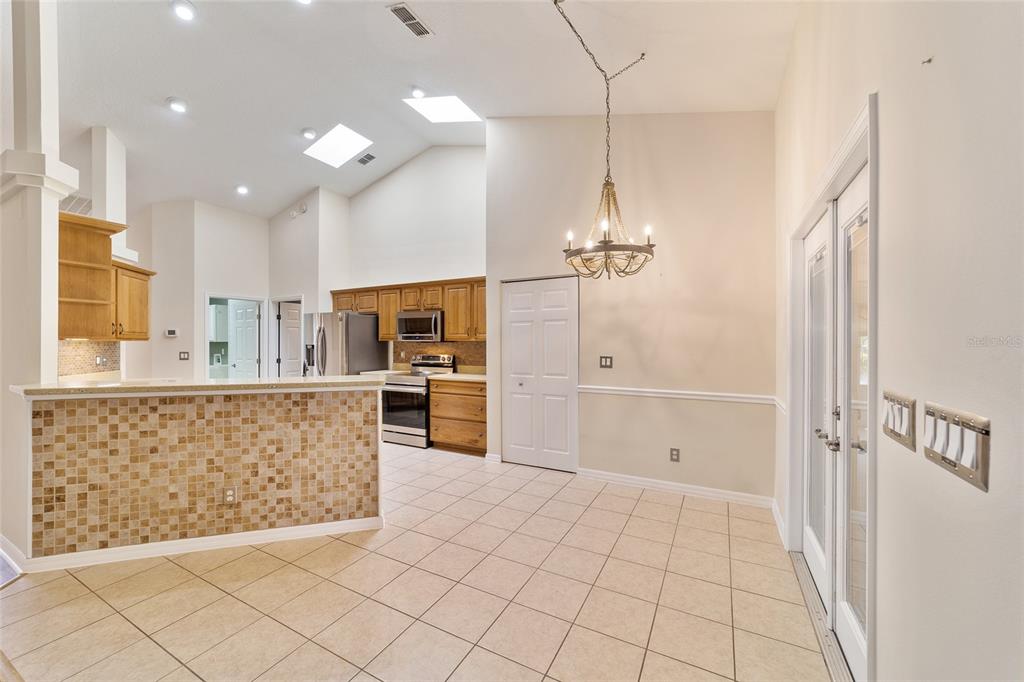 Split Bedroom Walk-In Closet(s)Ceiling Fan(s) Eating Space In Kitchen High Ceilings Stone Counters Solid Wood Cabinets Primary Bedroom Main Floor Kitchen/Family Room ComboCathedral Ceiling(s)Exterior Features: