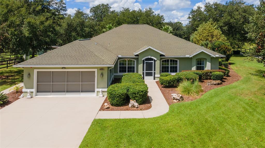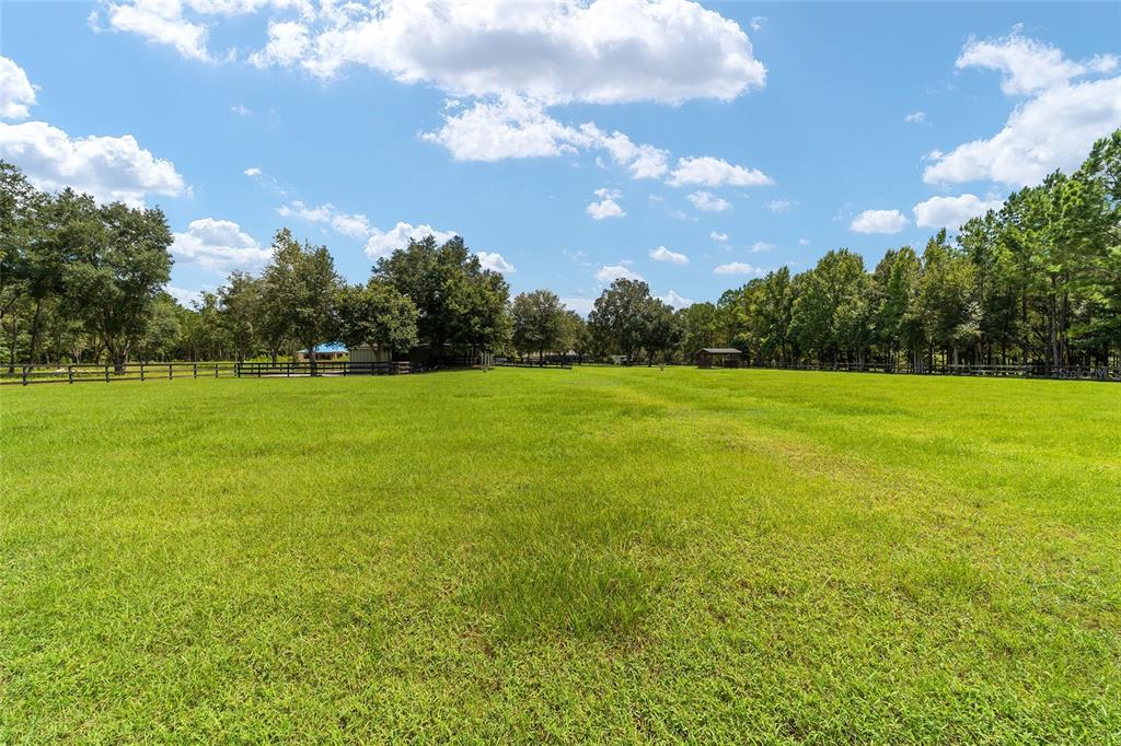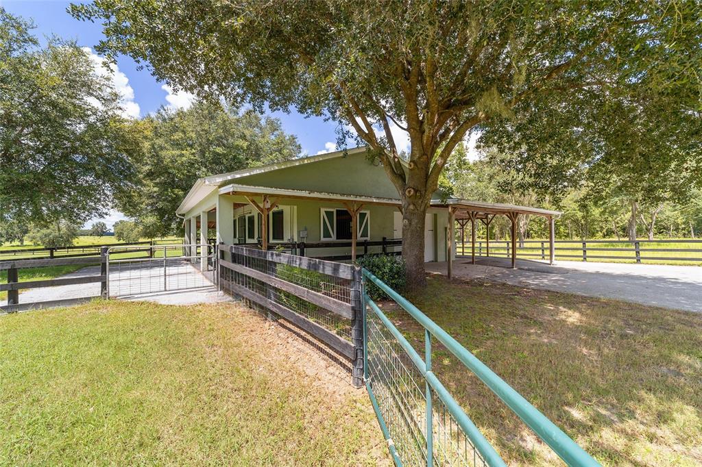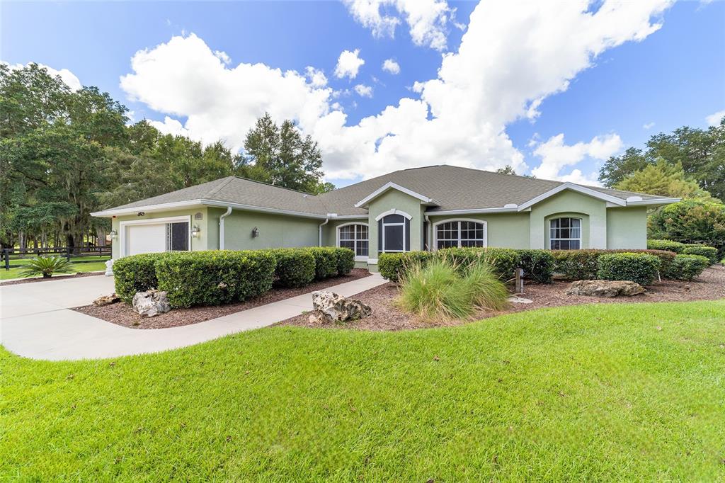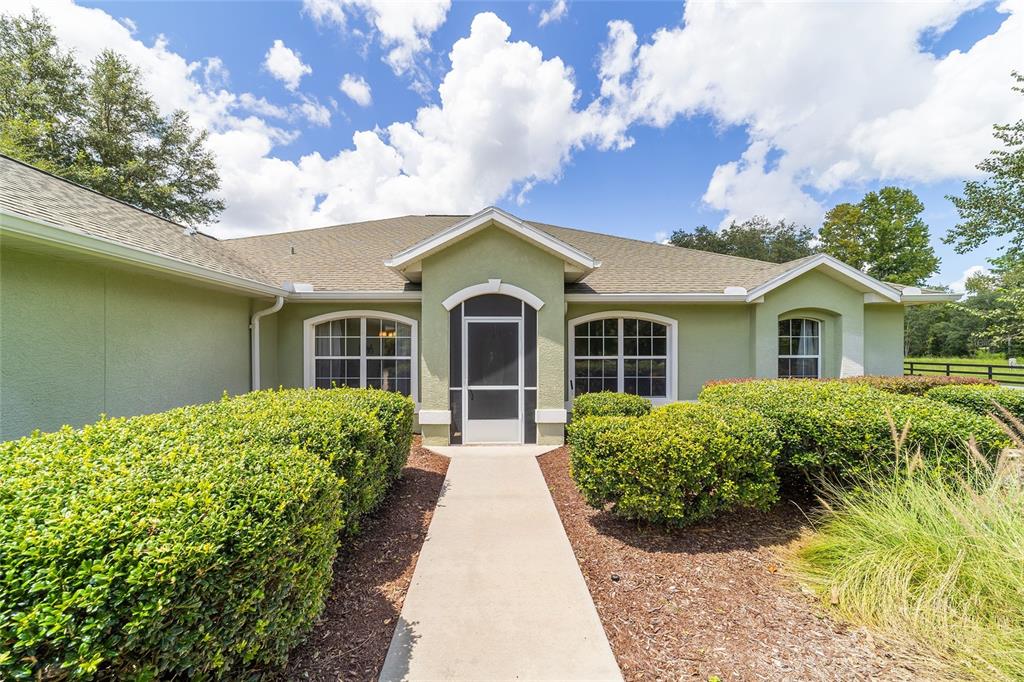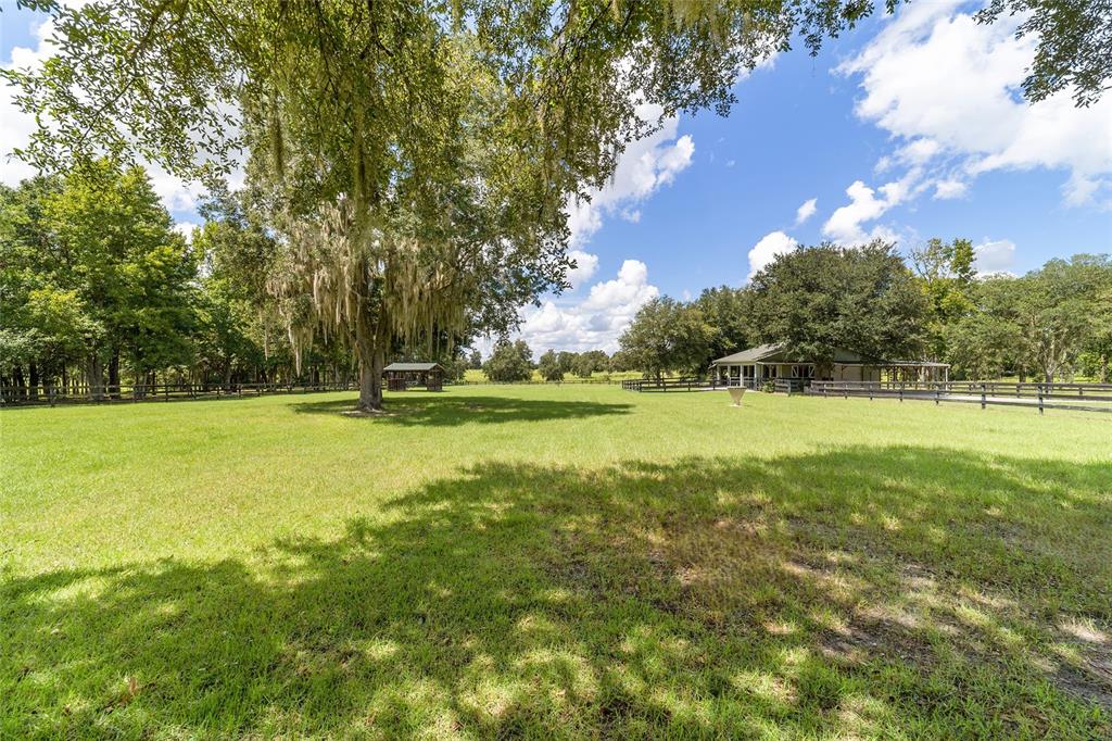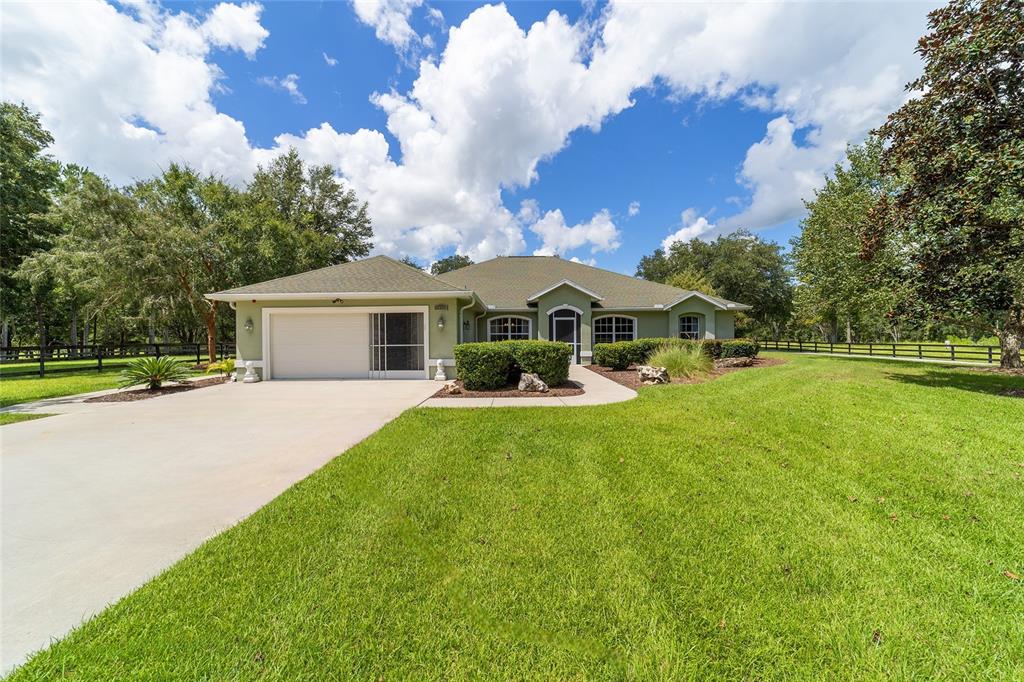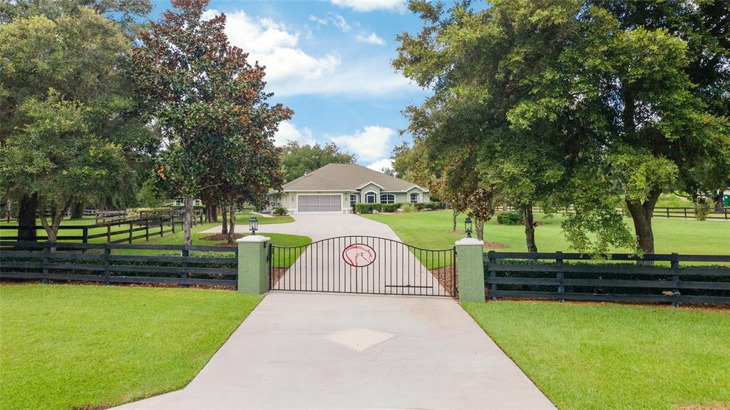 The village at hidden lakes: welcome to your dream equestrian estate in the tranquil village at hidden lakes, a premier gated equestrian community known for its serene setting and abundant wildlife. this exquisite 4-bedroom, 2-bath home is perfectly designed for both relaxation and entertaining, offering a spacious living environment and exceptional outdoor amenities. as you step through the front door, the home welcomes you into a large living room, complete with a cozy gas fireplace that seamlessly opens to a well-appointed kitchen. the kitchen is a chef's delight accented with neutral tile backsplash, featuring corian countertops, newer stainless-steel appliances, ample cabinet space, an attached dining area and a breakfast bar, ideal for casual meals . additional dining options include a separate formal dining room. french doors from the kitchen lead into a tiled sun-drenched enclosed sunroom, providing panoramic views of the property and direct access to the screened outdoor oasis. the master suite is a luxurious retreat situated on one side of the home, boasting a large closet and an en-suite bathroom with a sunken garden tub, separate shower, and dual vanities. the opposite side of the home houses three additional bedrooms and a spacious guest bathroom with dual sinks. practical features include an inside laundry room with a sink and cabinets, a two-car garage, and a whole-home generator, ensuring comfort and convenience throughout the property. the outdoor living area is nothing short of spectacular, featuring an inground pool with a new propane heater, a relaxing hot tub, and a captivating waterfall, all enclosed to create a private paradise. just off the pool deck you will find the stamped stone deck which offers ample space for sunbathing, grilling, and entertaining guests. mature landscaping enhances the beauty and privacy of this outdoor haven. equestrian facilities on this 4.52-acre estate are thoughtfully designed to meet all your needs. a three-stall concrete block barn with oversized stalls, mats, a large tack room with potential for air conditioning, a storage closet, a loading dock, and a ramp making deliveries very convenient. a concrete aisleway also ensures the utmost in care and convenience for your horses. the property includes two irrigated pastures, each equipped with automatic waterers, a rain gauge and a new oversized loafing shed, providing plenty of space for grazing on some of the best soil/grass marion county has to offer. and extra bonus to this property is you have two gated entrances, one to the main home and one to the barn. this is perfect for convenience and enhancing the accessibility and security of the equestrian facilities. located less than 10 minutes from williston, 20 minutes to gainesville, 9 miles to the hits showgrounds, 19 miles to the world equestrian center, and just 20 miles to ocala, this property offers easy access to some of the best equestrian facilities in marion county. whether you're watching the breathtaking sunsets over the adjoining 1200-acre farm, observing the family of hand-fed deer that frequent the farm, or simply enjoying the pastoral view of neighboring farms, this estate and community promises a life of peaceful enjoyment and equestrian excellence.Farm 4 bedrooms - THE VILLAGE HIDDEN LAKES for Sale