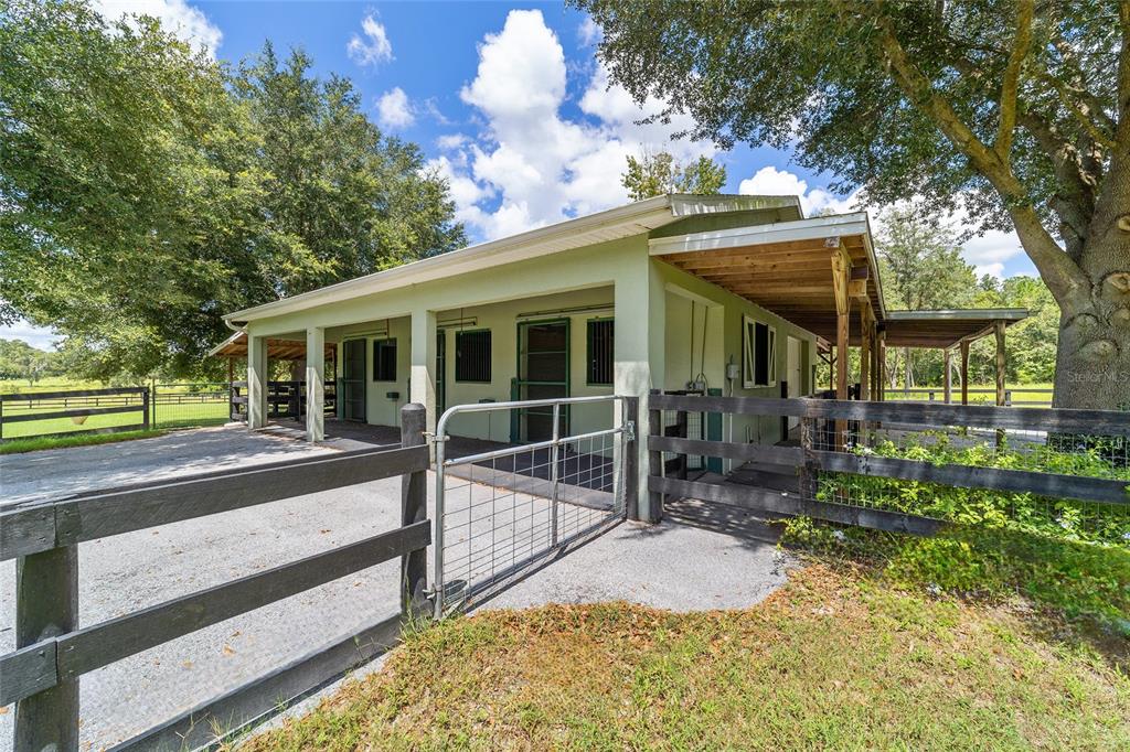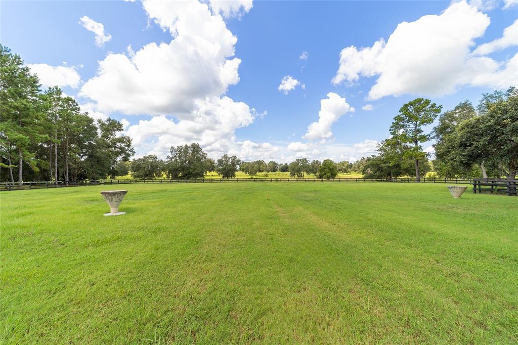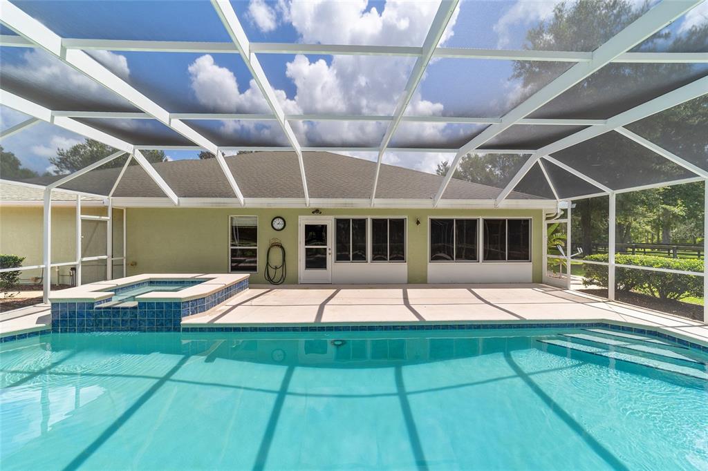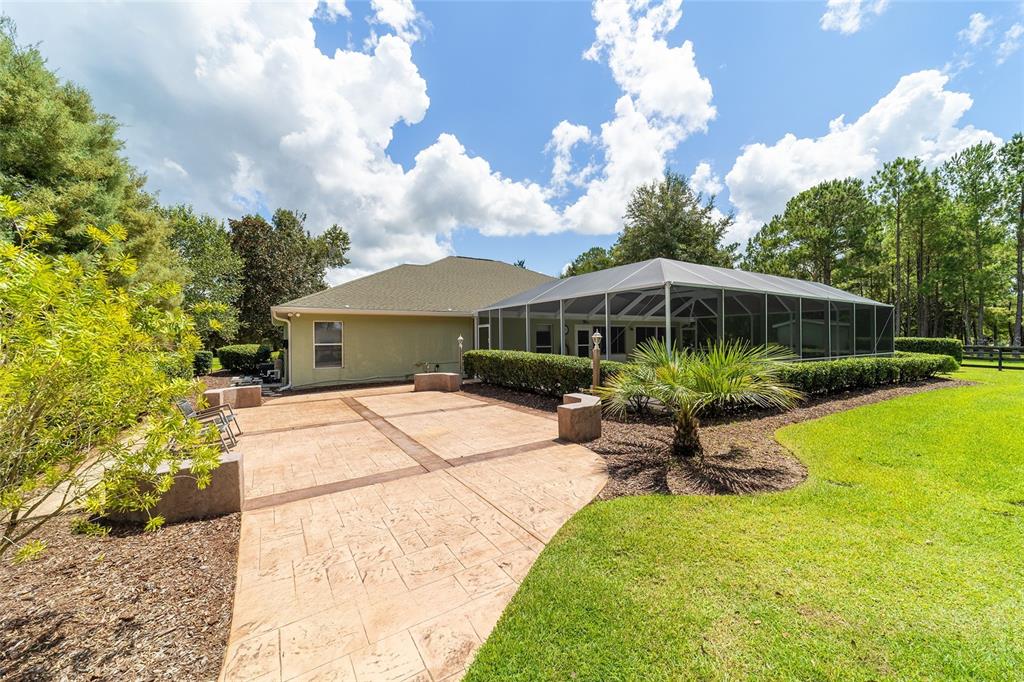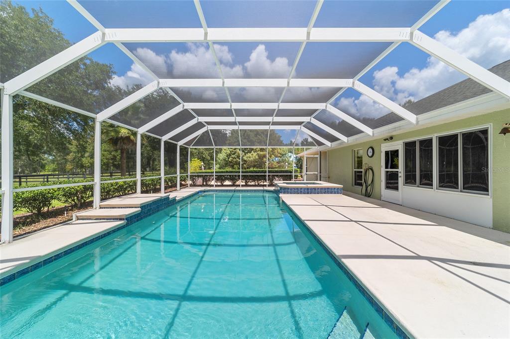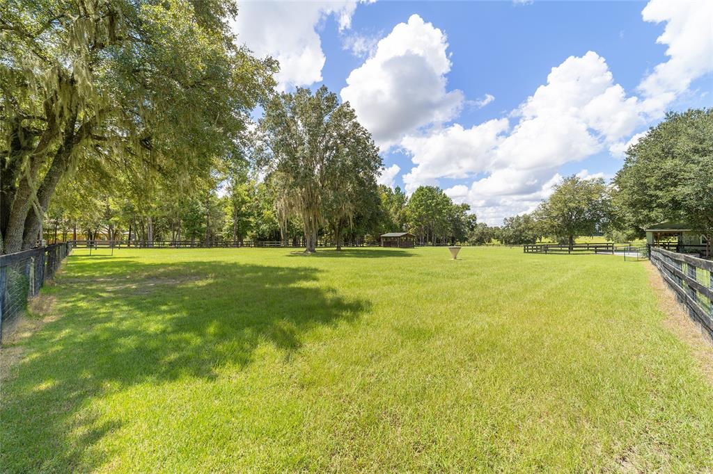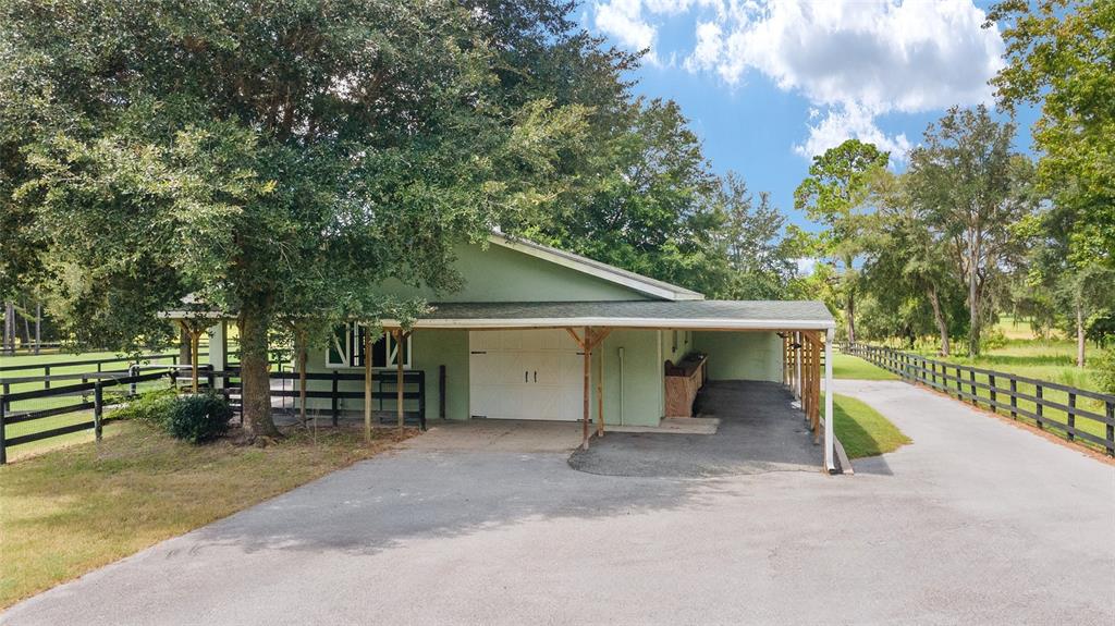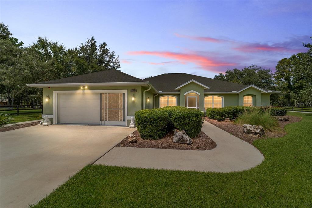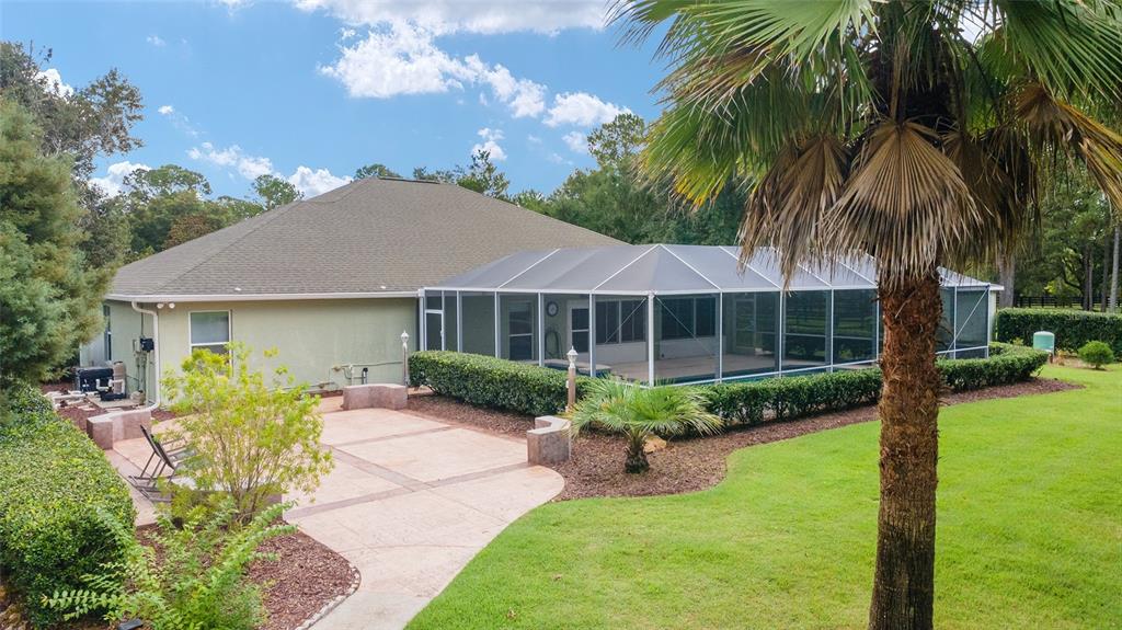 The village at hidden lakes: welcome to your dream equestrian estate in the tranquil village at hidden lakes, a premier gated equestrian community known for its serene setting and abundant wildlife. this exquisite 4-bedroom, 2-bath home is perfectly designed for both relaxation and entertaining, offering a spacious living environment and exceptional outdoor amenities. as you step through the front door, the home welcomes you into a large living room, complete with a cozy gas fireplace that seamlessly opens to a well-appointed kitchen. the kitchen is a chef's delight accented with neutral tile backsplash, featuring corian countertops, newer stainless-steel appliances, ample cabinet space, an attached dining area and a breakfast bar, ideal for casual meals . additional dining options include a separate formal dining room. french doors from the kitchen lead into a tiled sun-drenched enclosed sunroom, providing panoramic views of the property and direct access to the screened outdoor oasis. the master suite is a luxurious retreat situated on one side of the home, boasting a large closet and an en-suite bathroom with a sunken garden tub, separate shower, and dual vanities. the opposite side of the home houses three additional bedrooms and a spacious guest bathroom with dual sinks. practical features include an inside laundry room with a sink and cabinets, a two-car garage, and a whole-home generator, ensuring comfort and convenience throughout the property. the outdoor living area is nothing short of spectacular, featuring an inground pool with a new propane heater, a relaxing hot tub, and a captivating waterfall, all enclosed to create a private paradise. just off the pool deck you will find the stamped stone deck which offers ample space for sunbathing, grilling, and entertaining guests. mature landscaping enhances the beauty and privacy of this outdoor haven. equestrian facilities on this 4.52-acre estate are thoughtfully designed to meet all your needs. a three-stall concrete block barn with oversized stalls, mats, a large tack room with potential for air conditioning, a storage closet, a loading dock, and a ramp making deliveries very convenient. a concrete aisleway also ensures the utmost in care and convenience for your horses. the property includes two irrigated pastures, each equipped with automatic waterers, a rain gauge and a new oversized loafing shed, providing plenty of space for grazing on some of the best soil/grass marion county has to offer. and extra bonus to this property is you have two gated entrances, one to the main home and one to the barn. this is perfect for convenience and enhancing the accessibility and security of the equestrian facilities. located less than 10 minutes from williston, 20 minutes to gainesville, 9 miles to the hits showgrounds, 19 miles to the world equestrian center, and just 20 miles to ocala, this property offers easy access to some of the best equestrian facilities in marion county. whether you're watching the breathtaking sunsets over the adjoining 1200-acre farm, observing the family of hand-fed deer that frequent the farm, or simply enjoying the pastoral view of neighboring farms, this estate and community promises a life of peaceful enjoyment and equestrian excellence.Farm 4 bedrooms - THE VILLAGE HIDDEN LAKES for Sale