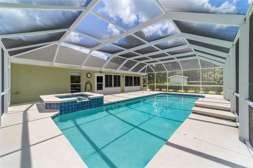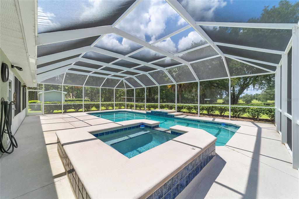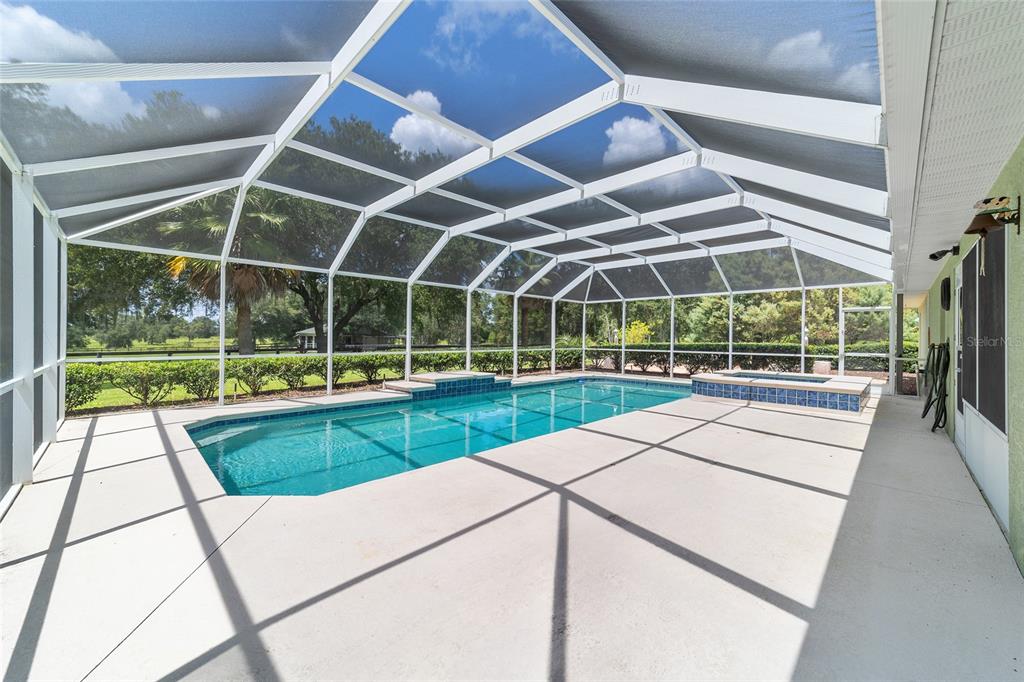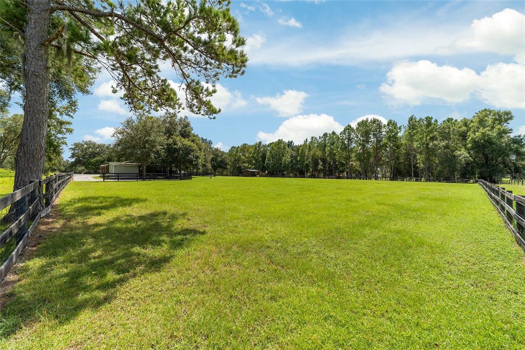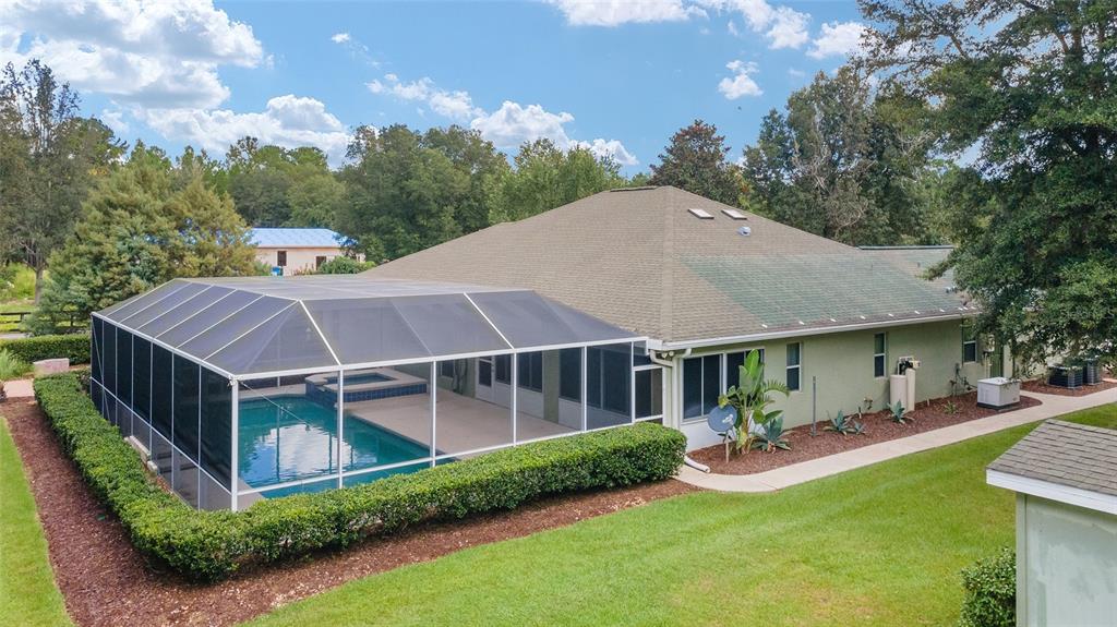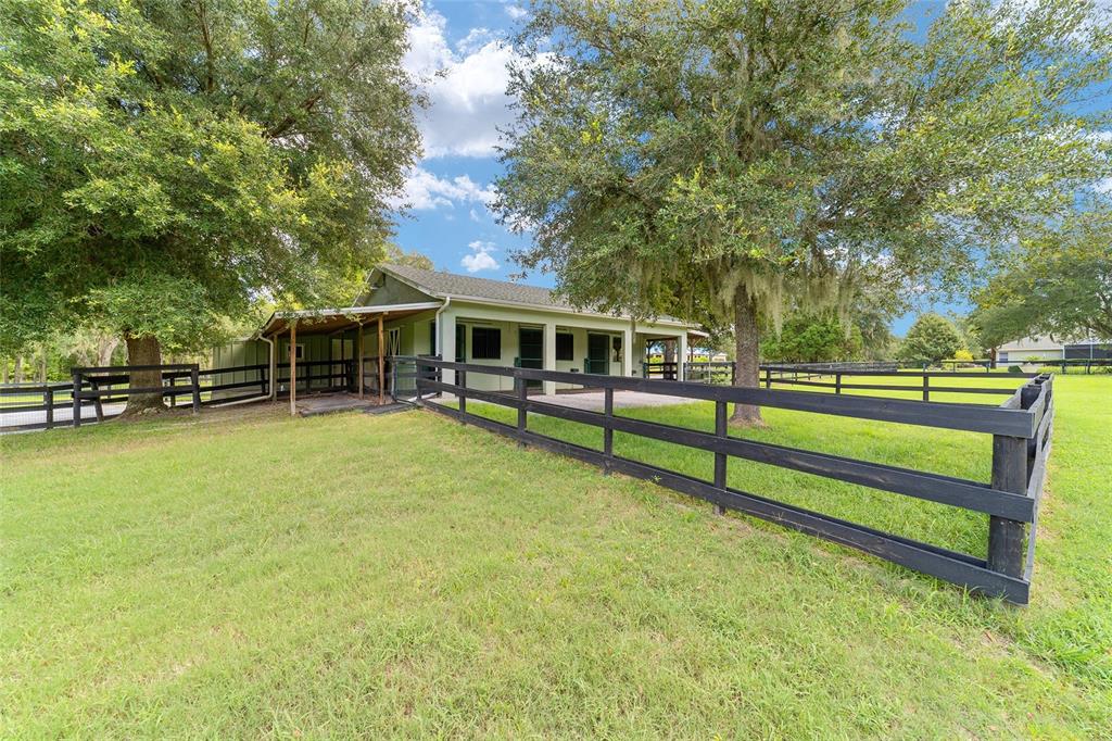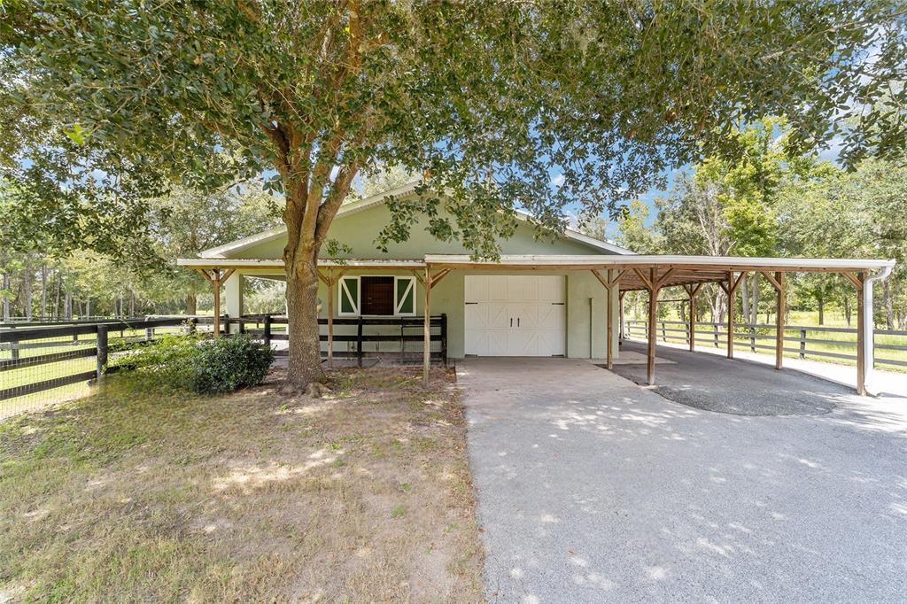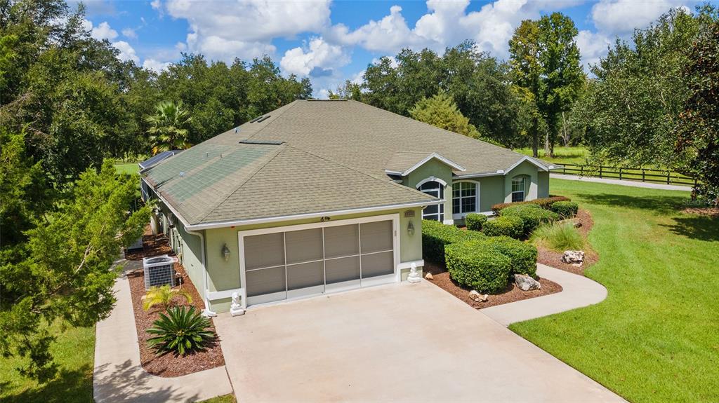 The village at hidden lakes: welcome to your dream equestrian estate in the tranquil village at hidden lakes, a premier gated equestrian community known for its serene setting and abundant wildlife. this exquisite 4-bedroom, 2-bath home is perfectly designed for both relaxation and entertaining, offering a spacious living environment and exceptional outdoor amenities. as you step through the front door, the home welcomes you into a large living room, complete with a cozy gas fireplace that seamlessly opens to a well-appointed kitchen. the kitchen is a chef's delight accented with neutral tile backsplash, featuring corian countertops, newer stainless-steel appliances, ample cabinet space, an attached dining area and a breakfast bar, ideal for casual meals . additional dining options include a separate formal dining room. french doors from the kitchen lead into a tiled sun-drenched enclosed sunroom, providing panoramic views of the property and direct access to the screened outdoor oasis. the master suite is a luxurious retreat situated on one side of the home, boasting a large closet and an en-suite bathroom with a sunken garden tub, separate shower, and dual vanities. the opposite side of the home houses three additional bedrooms and a spacious guest bathroom with dual sinks. practical features include an inside laundry room with a sink and cabinets, a two-car garage, and a whole-home generator, ensuring comfort and convenience throughout the property. the outdoor living area is nothing short of spectacular, featuring an inground pool with a new propane heater, a relaxing hot tub, and a captivating waterfall, all enclosed to create a private paradise. just off the pool deck you will find the stamped stone deck which offers ample space for sunbathing, grilling, and entertaining guests. mature landscaping enhances the beauty and privacy of this outdoor haven. equestrian facilities on this 4.52-acre estate are thoughtfully designed to meet all your needs. a three-stall concrete block barn with oversized stalls, mats, a large tack room with potential for air conditioning, a storage closet, a loading dock, and a ramp making deliveries very convenient. a concrete aisleway also ensures the utmost in care and convenience for your horses. the property includes two irrigated pastures, each equipped with automatic waterers, a rain gauge and a new oversized loafing shed, providing plenty of space for grazing on some of the best soil/grass marion county has to offer. and extra bonus to this property is you have two gated entrances, one to the main home and one to the barn. this is perfect for convenience and enhancing the accessibility and security of the equestrian facilities. located less than 10 minutes from williston, 20 minutes to gainesville, 9 miles to the hits showgrounds, 19 miles to the world equestrian center, and just 20 miles to ocala, this property offers easy access to some of the best equestrian facilities in marion county. whether you're watching the breathtaking sunsets over the adjoining 1200-acre farm, observing the family of hand-fed deer that frequent the farm, or simply enjoying the pastoral view of neighboring farms, this estate and community promises a life of peaceful enjoyment and equestrian excellence.Farm 4 bedrooms - THE VILLAGE HIDDEN LAKES for Sale