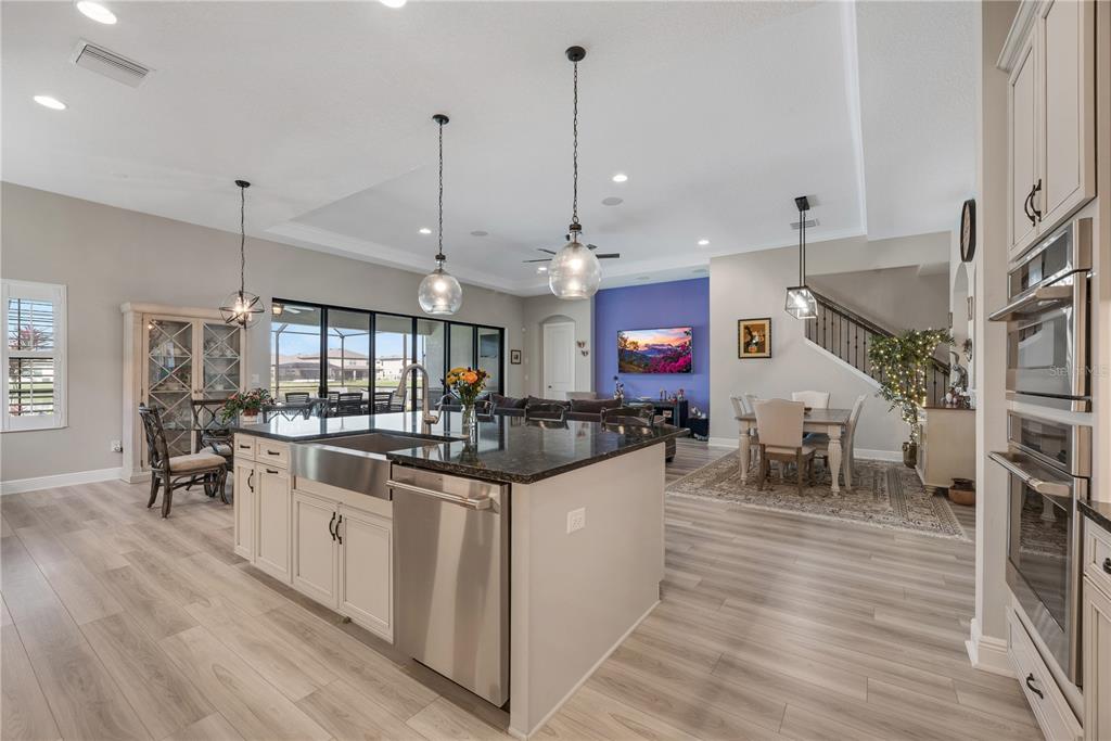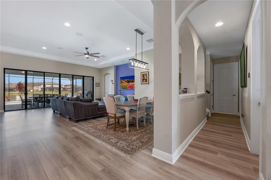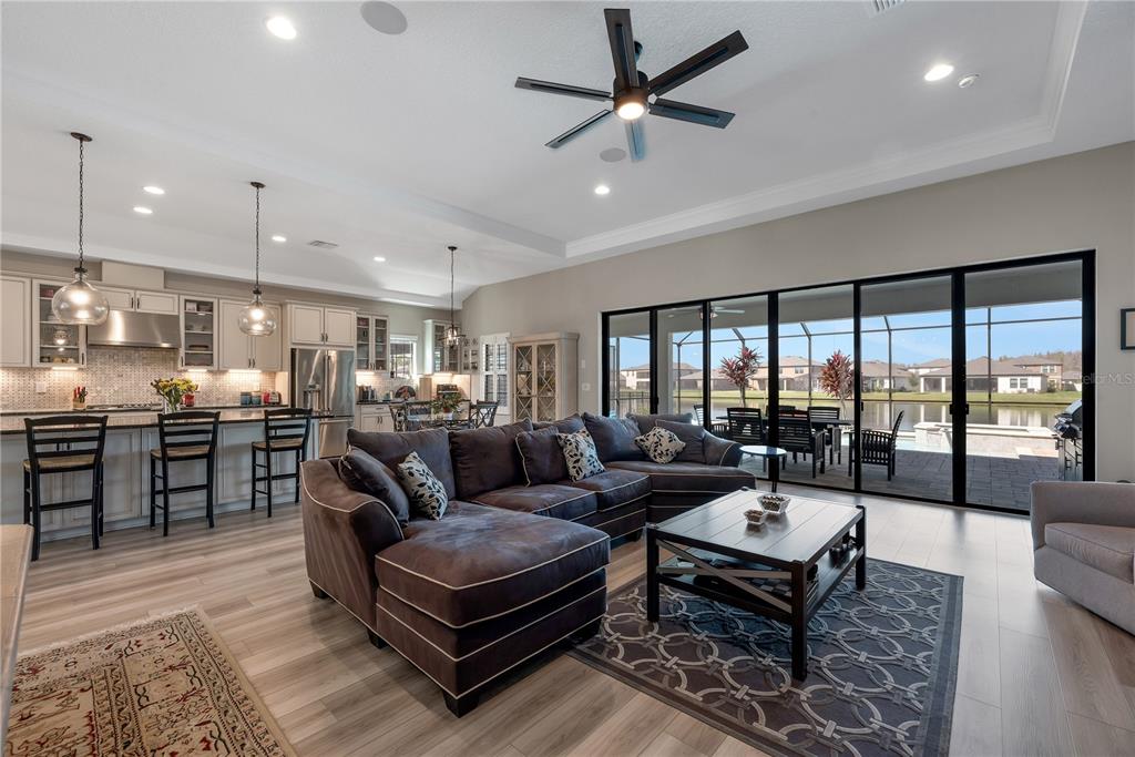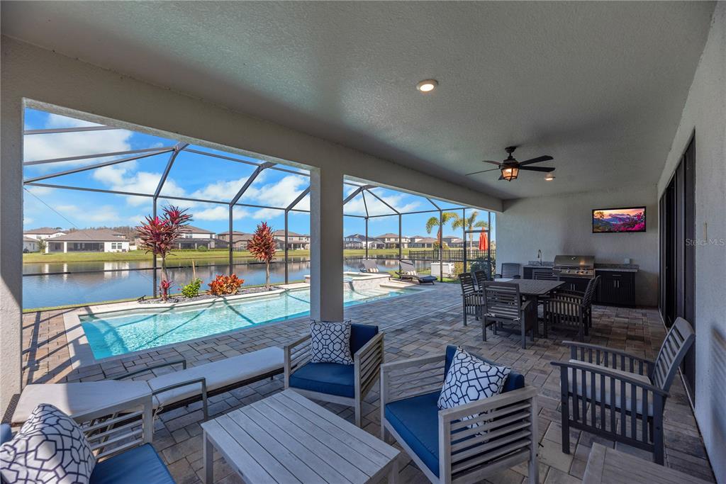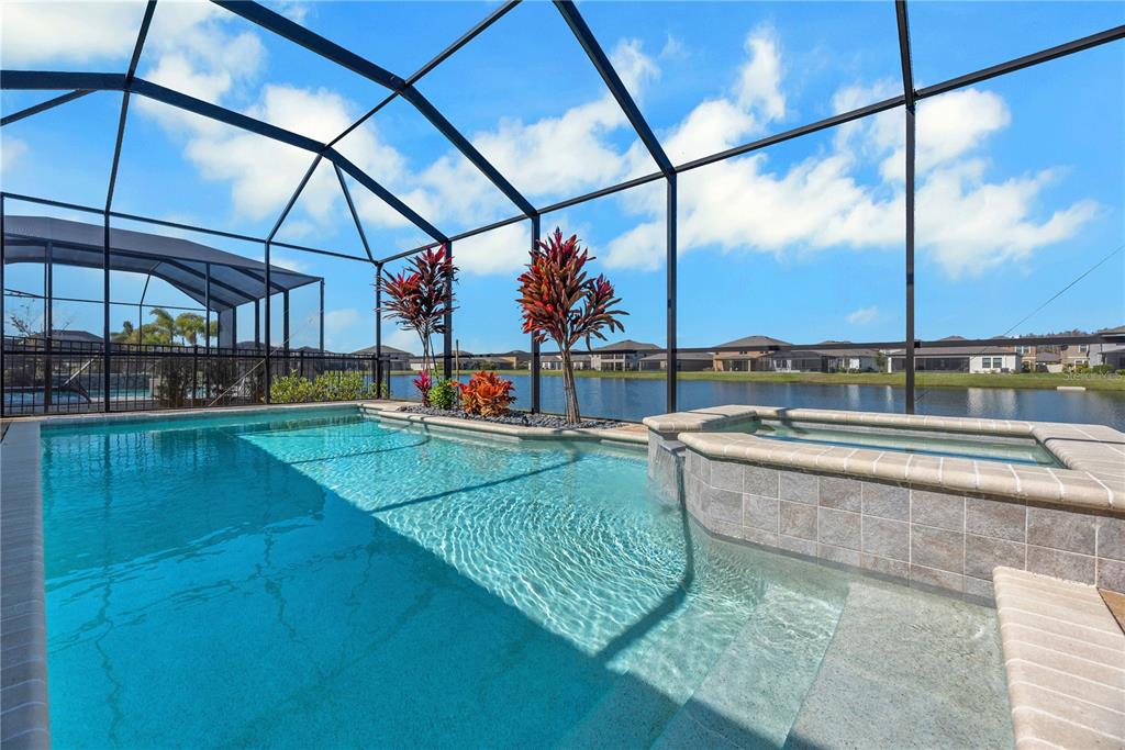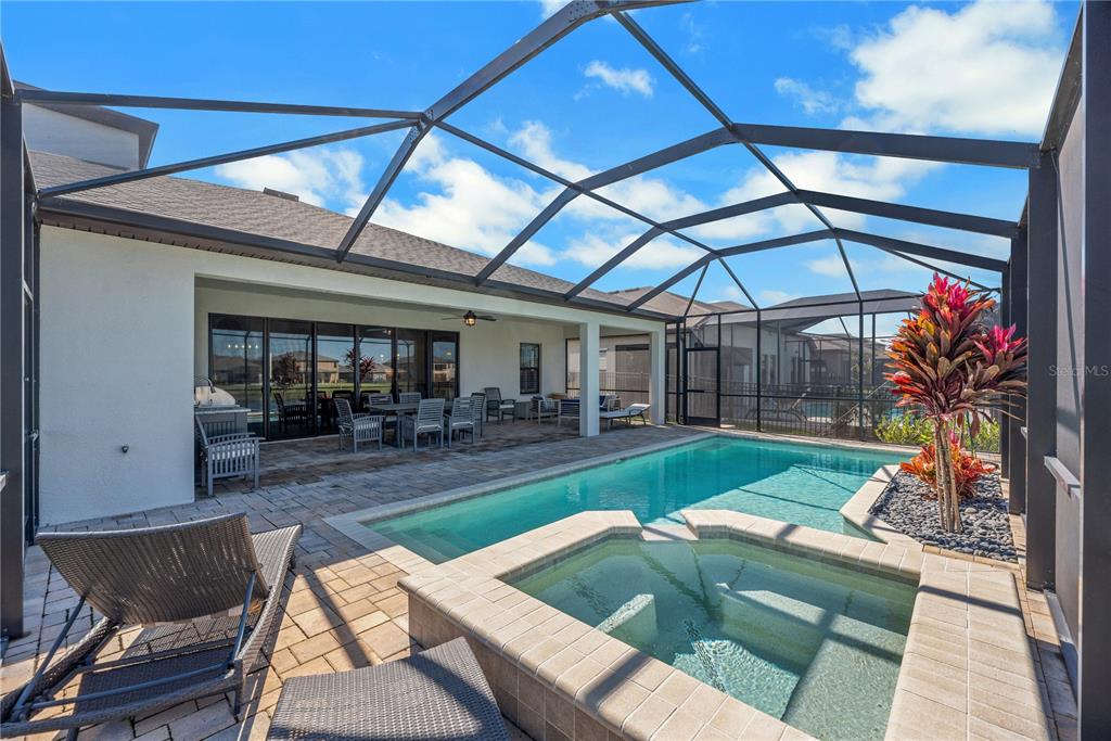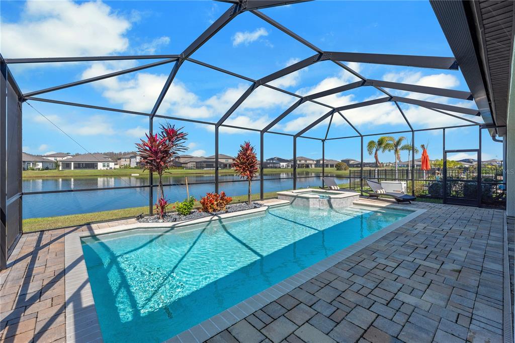 Welcome to this stunning westbay bayshore ii home, where luxury and thoughtful design come together to create an exceptional living experience. boasting 3,245 square feet of well-appointed space, this four-bedroom, four-bathroom home offers both elegance and functionality, along with a three-car garage, an office which could be a 5th bedroom, a spacious second-floor bonus room, and breathtaking water views that provide a tranquil backdrop for everyday living. from the moment you arrive, the brick paver driveway and sidewalk lead you to the grand double glass front doors, setting the tone for the elegance found within. inside, soaring 8-foot doorways and an open, flowing floor plan create a seamless transition between the main living areas. the great room serves as the heart of the home, featuring surround sound for tv and an inviting atmosphere that effortlessly extends outdoors through 18-foot sliding glass doors. these oversized doors open onto a screened and pavered lanai, where a saltwater pool and spa await, offering the perfect retreat for relaxation or entertaining. the lanai is further enhanced by a ceiling fan, stylish landscape lighting, and a fully equipped outdoor kitchen, making it an ideal space for hosting gatherings or simply enjoying the peaceful pond views. designed with both style and practicality in mind, the gourmet kitchen is a chef’s dream. the space is outfitted with custom-built cabinetry, a built-in microwave and oven, a wine refrigerator, under-cabinet lighting, and an eye-catching full tile backsplash. a generously sized walk-in pantry with custom wood shelving ensures ample storage for all your culinary needs. the open-concept design allows the kitchen to flow effortlessly into the dining and living areas, making it the perfect setup for entertaining guests or enjoying everyday meals with family. the primary suite is a luxurious retreat, featuring a spa-like walk-in shower with a built-in bench, creating a serene space to unwind. the suite also boasts double walk-in closets with custom closets by design storage systems, offering both beauty and functionality. the split-bedroom floor plan enhances privacy, making this home an excellent choice for families or multi-generational living. additional thoughtful upgrades include a generac generator, providing peace of mind during storm season, as well as garage shelving for extra storage and landscape lighting that beautifully accentuates the home’s exterior in the evenings. offering a perfect balance of modern conveniences, high-end finishes, and serene outdoor living, this exceptional home is ready to welcome its next owner. don’t miss the opportunity to experience this breathtaking property in person—schedule your private tour today!14522 WOODLAND SPUR, LITHIA, FL 33547