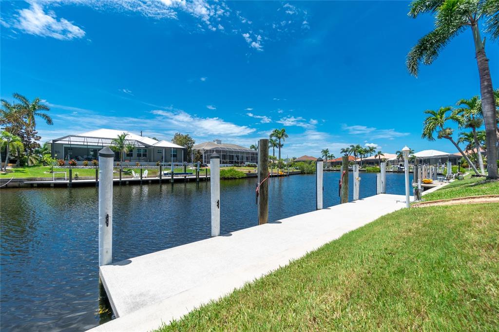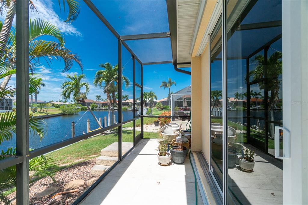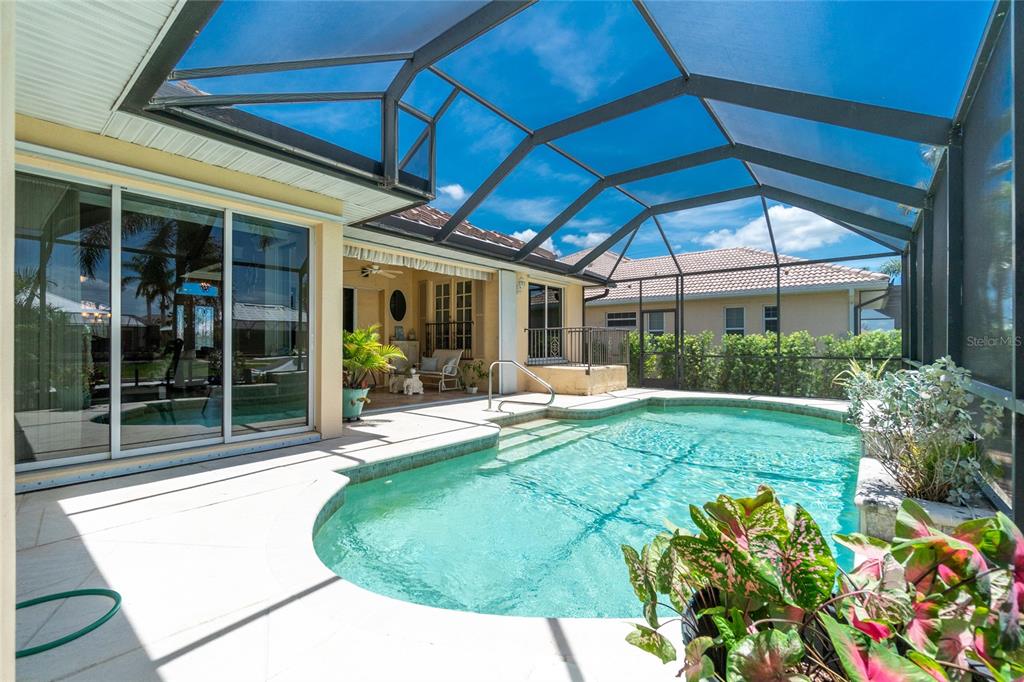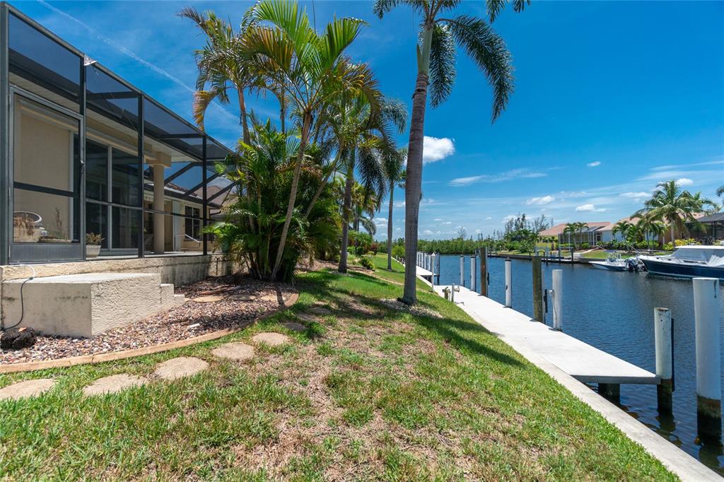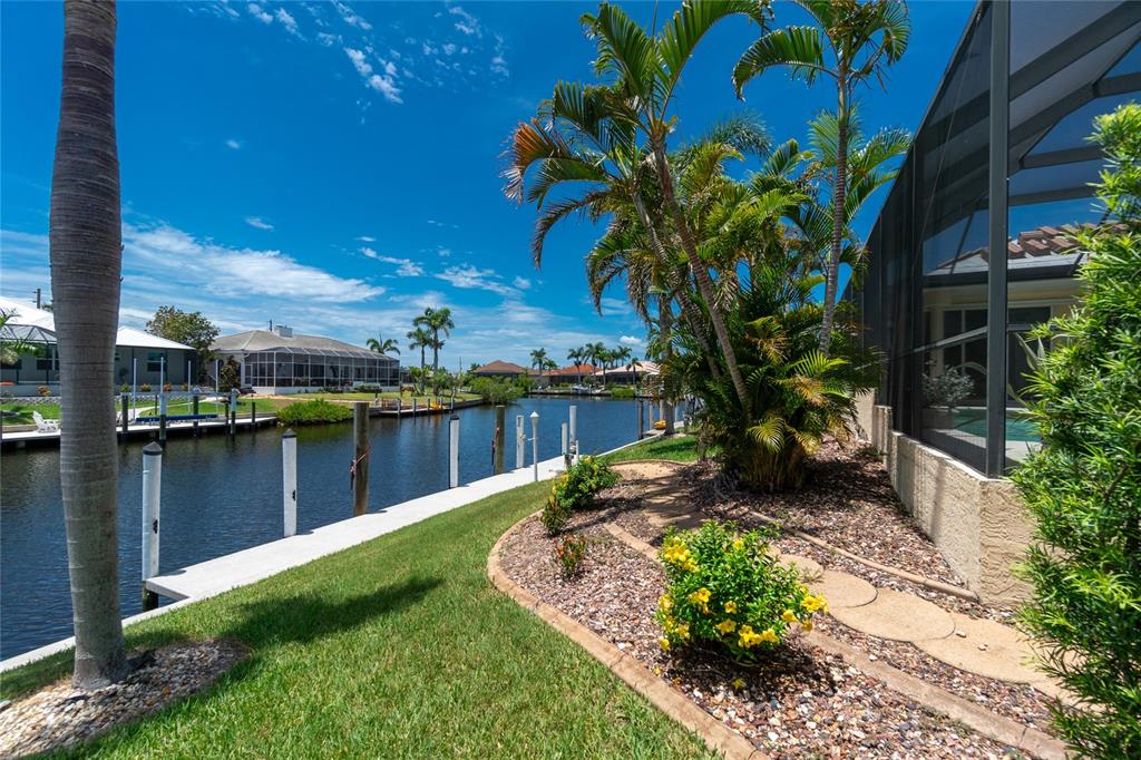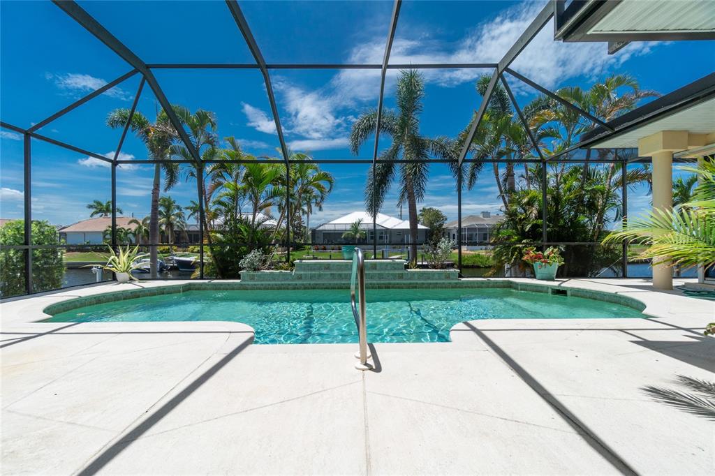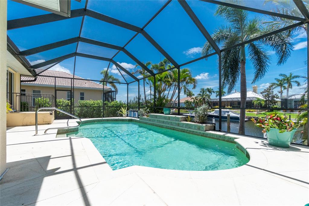 Impressive waterfront custom 3 bedroom plus den/office, 2 bathroom home with attached oversized 2 car garage. built by fero construction. located on a quiet cul-de-sac street in desirable deed restricted punta gorda isles. this home offers sailboat access (no bridges) to charlotte harbor and on to the gulf of mexico. 45 foot concrete dock with water and electricity and 80 foot concrete seawall. this stunning light and bright home offers an open and split bedroom floor plan with great room, separate dining room, well appointed kitchen, inside laundry. features include italian porcelain tile floors in the living areas, high ceilings, dining room with tray ceiling and crown molding, zero corner sliding glass doors. custom wrought iron railing, manabloc plumbing, water softener, tankless water heater, workshop area in the garage, transom window over the front door. the following items convey with the house: kitchen table, breakfast bar stools, entertainment center in the great room. the kitchen offers stainless appliances, granite counters, 42 inch white cabinetry, tile backsplash, breakfast bar, swanstone sink, pantry closet and dining area overlooking the pool and water. the laundry room has front loading washer and dryer, storage closet, utility sink. the master bedroom suite features zero corner sliding glass doors, huge custom closet with access to the laundry room, dual sinks, large walk in shower and clawfoot soaking tub. three steps take you to the guest area. there are two large guest bedrooms and the guest bathroom has a tub/shower combo and granite counters. the spacious den/office has a private balcony and french doors open to overlook the covered lanai. your living space extends to the screened lanai with heated inground saltwater pool, outdoor shower, covered area and plenty of open deck for sunbathing. utilities are city water and sewer. storm protection includes hurricane shutters and impact windows. new tile roof 2023, new tankless hot water heater 2020, new owned water softener 2021, new pool heater 2018, new pool screens after hurricane ian 2022. this home is minutes from historic downtown punta gorda shopping, dining, medical care, waterfront parks, boat ramps, fishing piers, art galleries, walking and biking paths, weekend farmers markets, fishermen's village, events and more!1453 WREN, PUNTA GORDA, FL 33950