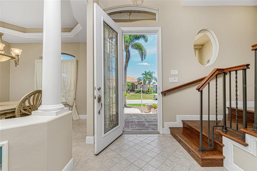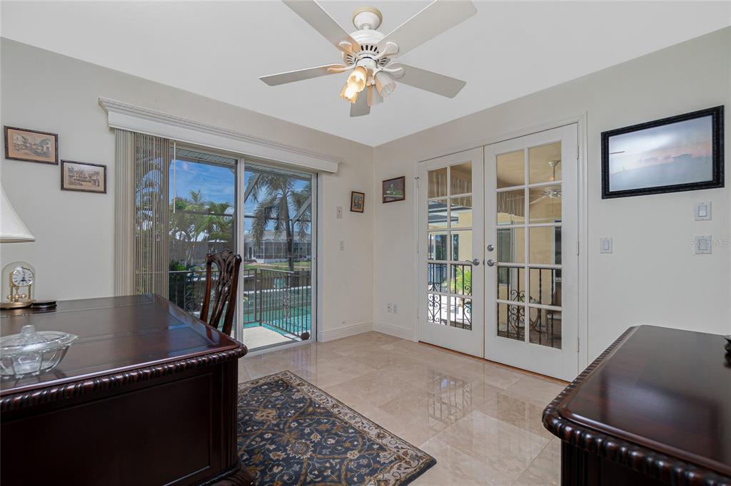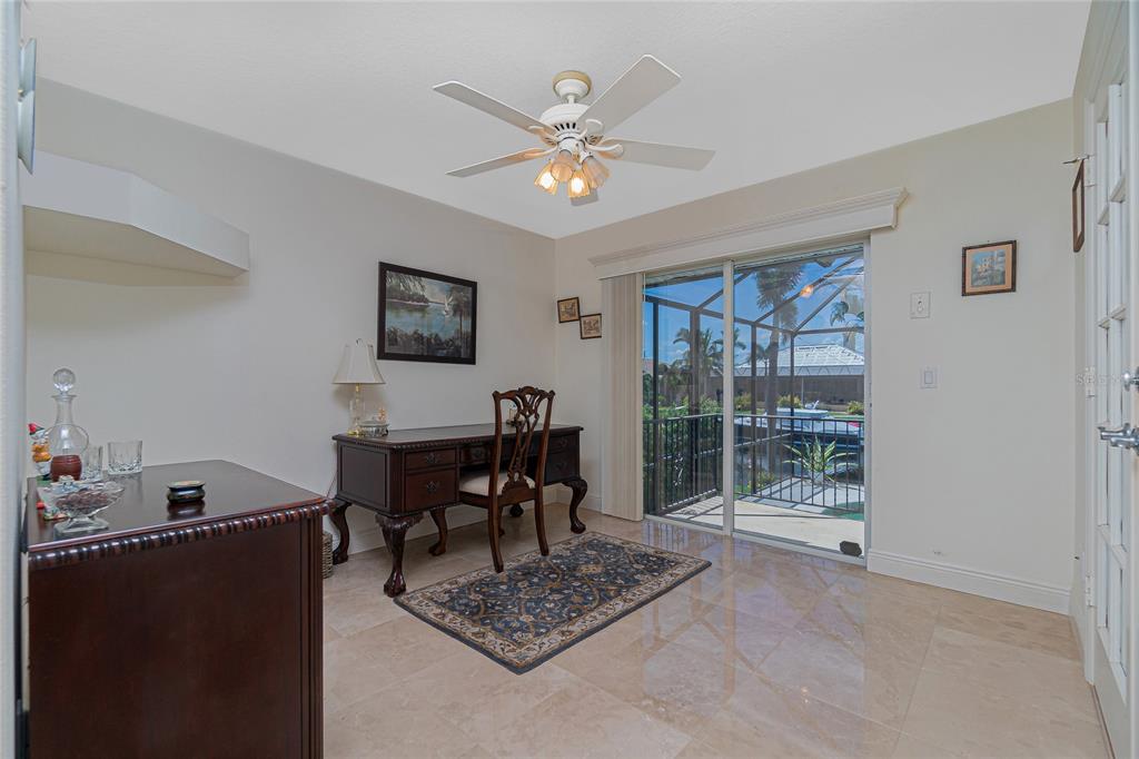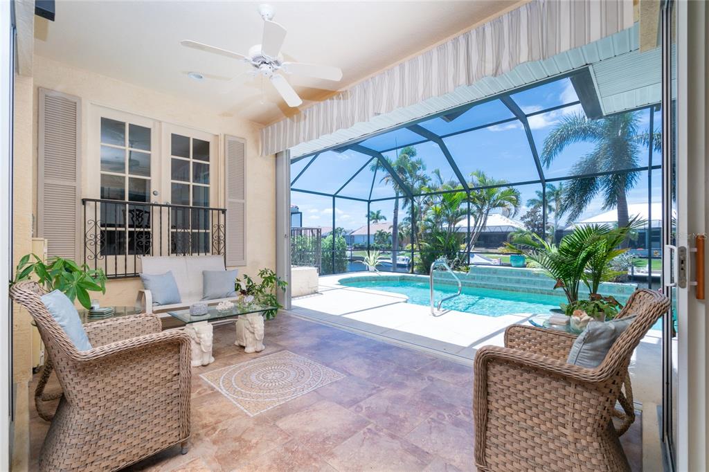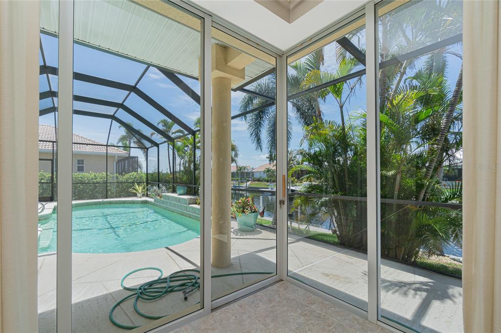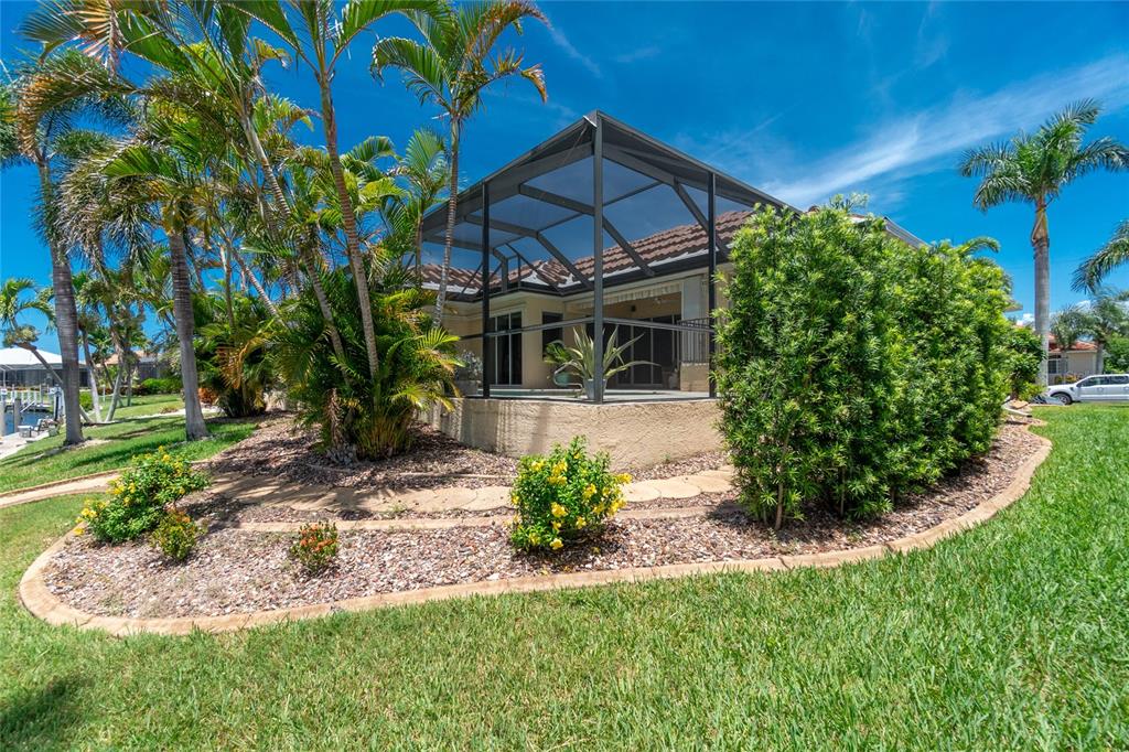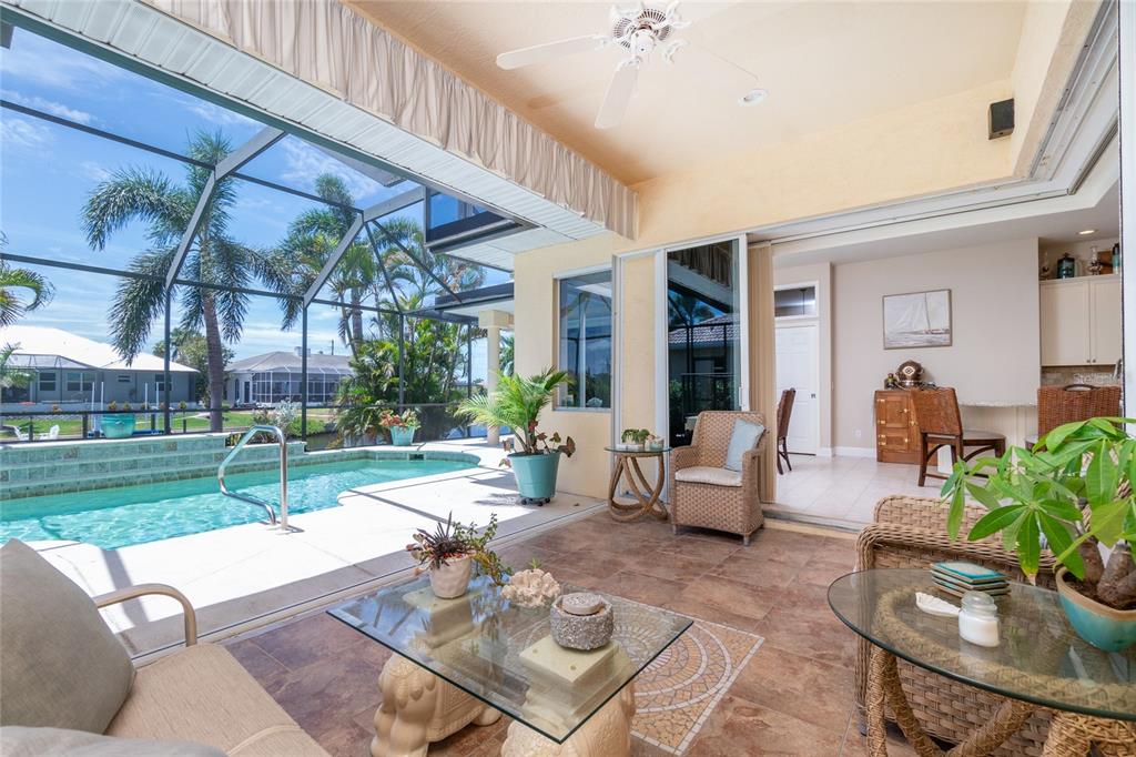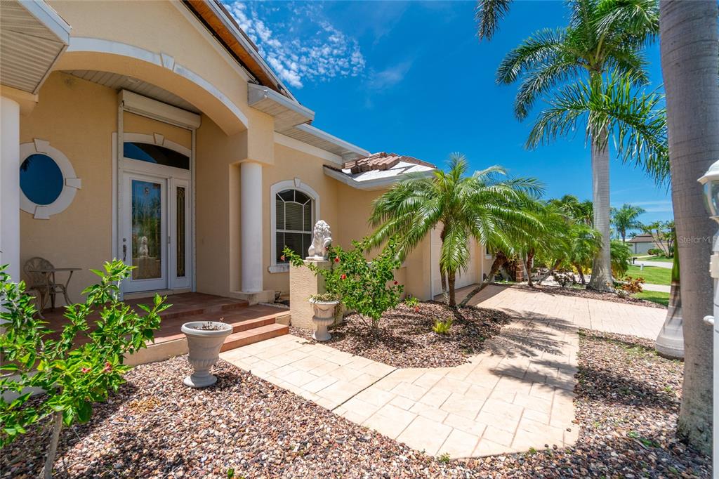 Impressive waterfront custom 3 bedroom plus den/office, 2 bathroom home with attached oversized 2 car garage. built by fero construction. located on a quiet cul-de-sac street in desirable deed restricted punta gorda isles. this home offers sailboat access (no bridges) to charlotte harbor and on to the gulf of mexico. 45 foot concrete dock with water and electricity and 80 foot concrete seawall. this stunning light and bright home offers an open and split bedroom floor plan with great room, separate dining room, well appointed kitchen, inside laundry. features include italian porcelain tile floors in the living areas, high ceilings, dining room with tray ceiling and crown molding, zero corner sliding glass doors. custom wrought iron railing, manabloc plumbing, water softener, tankless water heater, workshop area in the garage, transom window over the front door. the following items convey with the house: kitchen table, breakfast bar stools, entertainment center in the great room. the kitchen offers stainless appliances, granite counters, 42 inch white cabinetry, tile backsplash, breakfast bar, swanstone sink, pantry closet and dining area overlooking the pool and water. the laundry room has front loading washer and dryer, storage closet, utility sink. the master bedroom suite features zero corner sliding glass doors, huge custom closet with access to the laundry room, dual sinks, large walk in shower and clawfoot soaking tub. three steps take you to the guest area. there are two large guest bedrooms and the guest bathroom has a tub/shower combo and granite counters. the spacious den/office has a private balcony and french doors open to overlook the covered lanai. your living space extends to the screened lanai with heated inground saltwater pool, outdoor shower, covered area and plenty of open deck for sunbathing. utilities are city water and sewer. storm protection includes hurricane shutters and impact windows. new tile roof 2023, new tankless hot water heater 2020, new owned water softener 2021, new pool heater 2018, new pool screens after hurricane ian 2022. this home is minutes from historic downtown punta gorda shopping, dining, medical care, waterfront parks, boat ramps, fishing piers, art galleries, walking and biking paths, weekend farmers markets, fishermen's village, events and more!1453 WREN, PUNTA GORDA, FL 33950