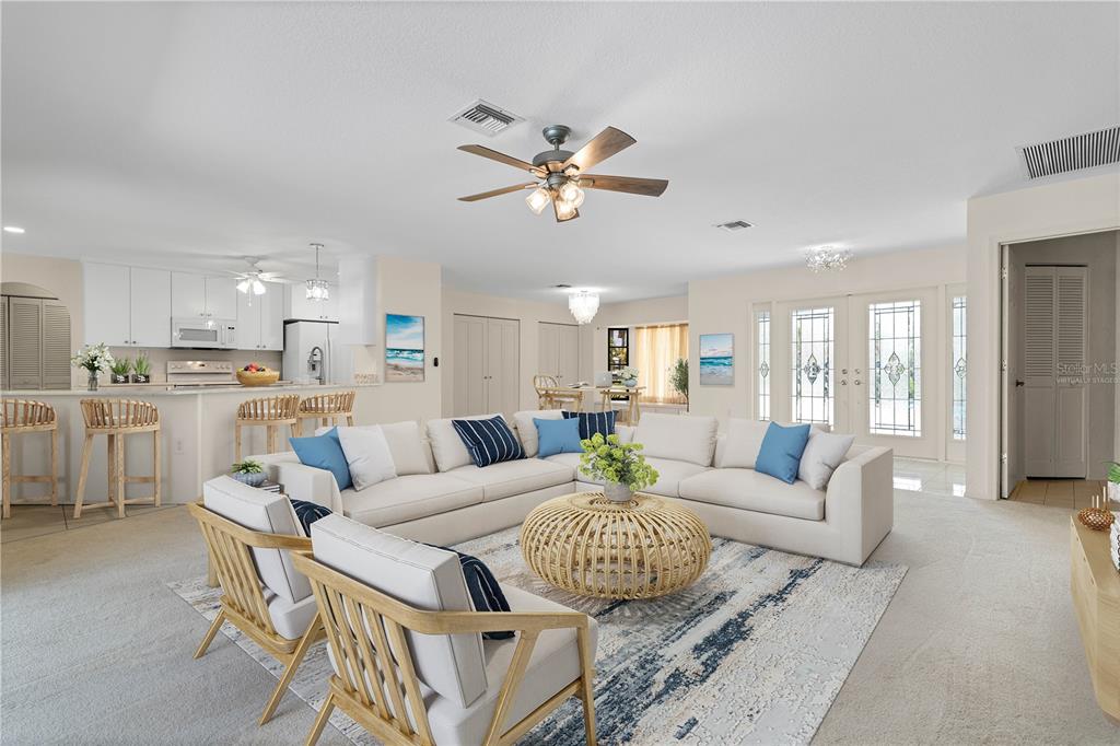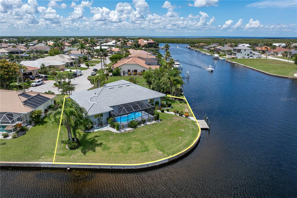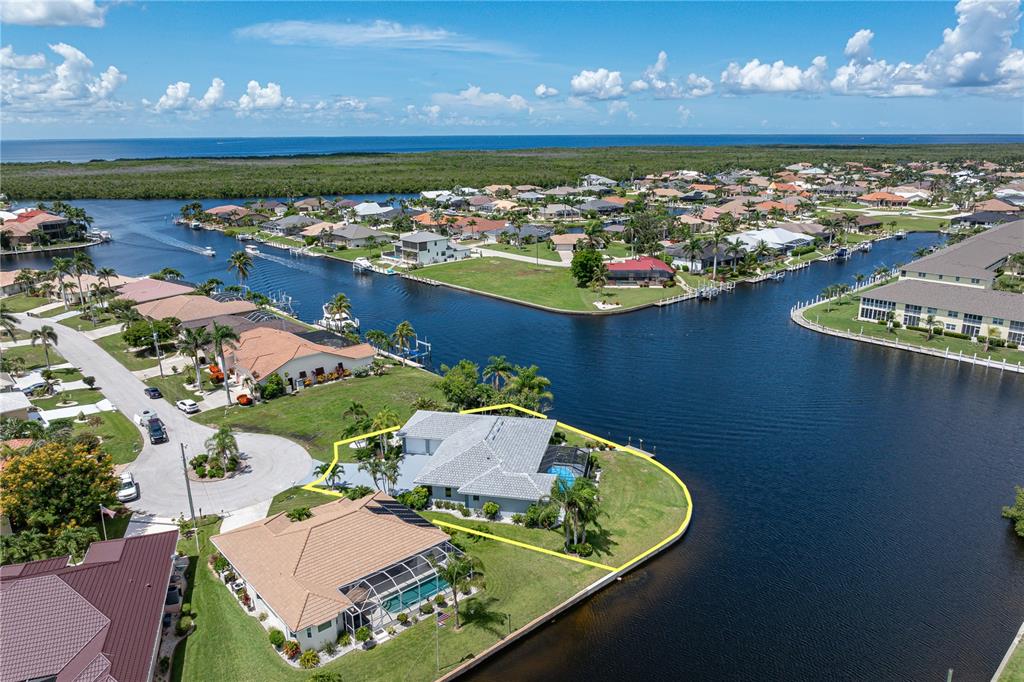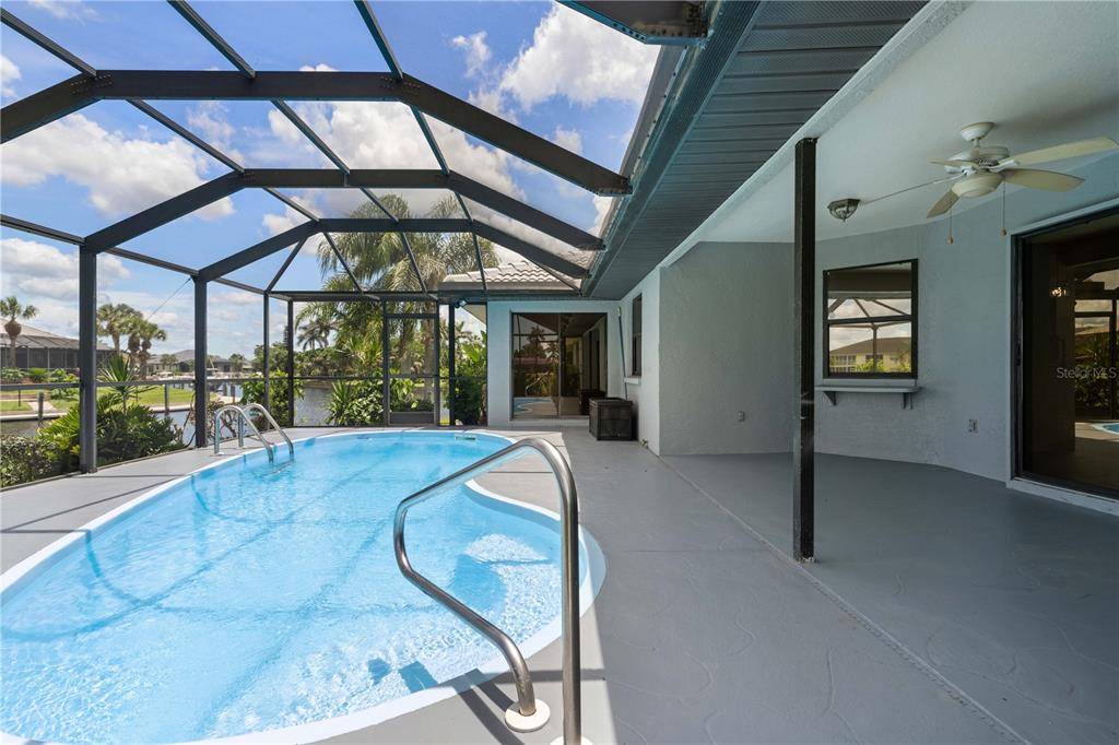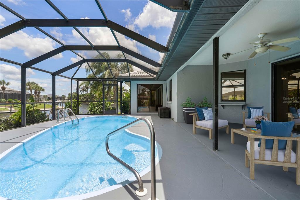 One or more photo(s) has been virtually staged. pgi waterfront home on tip lot with 173ft of seawall, intersecting canal views & **new roof**- situated on an oversized, tip lot in punta gorda isles, this 3 bed/2 bath waterfront pool home delivers exceptional sailboat access to charlotte harbor in minutes via buckley’s pass or ponce outlet. boasting 173 feet of city-maintained seawall, a wide turning basin, and intersecting canal views, this home offers the ultimate boating lifestyle from your backyard. inside, the home features a bright and welcoming layout with fresh neutral finishes and thoughtful upgrades. the heart of the home—a recently updated kitchen—offers granite countertops, all-white cabinetry, led lighting, and a versatile, mobile center island. the spacious great room flows seamlessly to the lanai through disappearing sliding glass doors, creating a spacious indoor/outdoor connection. the split-bedroom floor plan ensures privacy for owners and guests alike. the generous master suite includes walk-out access to the lanai, two picture windows framing the water view, a walk-in closet, and an en-suite bath with dual sinks, a garden tub, and a separate shower. both guest bedrooms are comfortably sized with walk-in closets; one guest suite has direct access to the pool and shares a beautifully remodeled guest bath with dual sinks and a walk-in tiled shower. step outside to the screened lanai that includes an in-ground pool surrounded by covered seating area that is perfect for al fresco dining or catching gorgeous sunset views. a concrete dock awaits your boat just steps from the home. thanks to the extended wraparound seawall, the location of the dock does not compromise the fantastic view. there's plenty of room to add a 2nd dock & still not affect the view. additional features include a brand-new roof (2024), new a/c system (2022), attic insulation, upgraded ceiling fans and light fixtures, fresh living room carpet, and a full-size laundry room with utility sink and newer washer/dryer. hot tub hookup added - ready for hot tub if buyer so desires. the side-facing oversized two-car garage offers a storage bump-out for your tools or gear. located just minutes from st. andrews south golf club, isles yacht club, fishermen’s village, and historic downtown punta gorda, this home combines the best of boating, golfing, and dining. enjoy sw florida’s year-round sunshine and coastal lifestyle from one of the finest waterfront properties on the market. boat is for sale separately.1457 SEA FAN, PUNTA GORDA, FL 33950