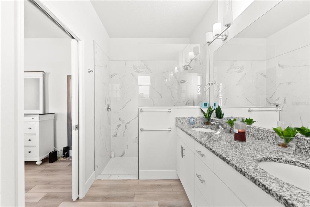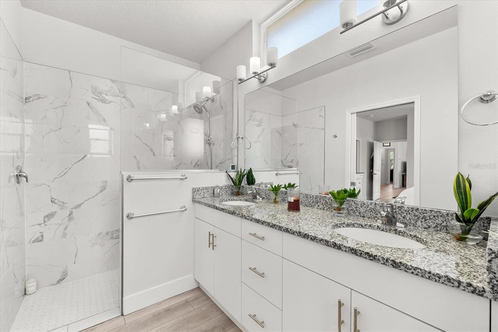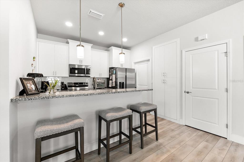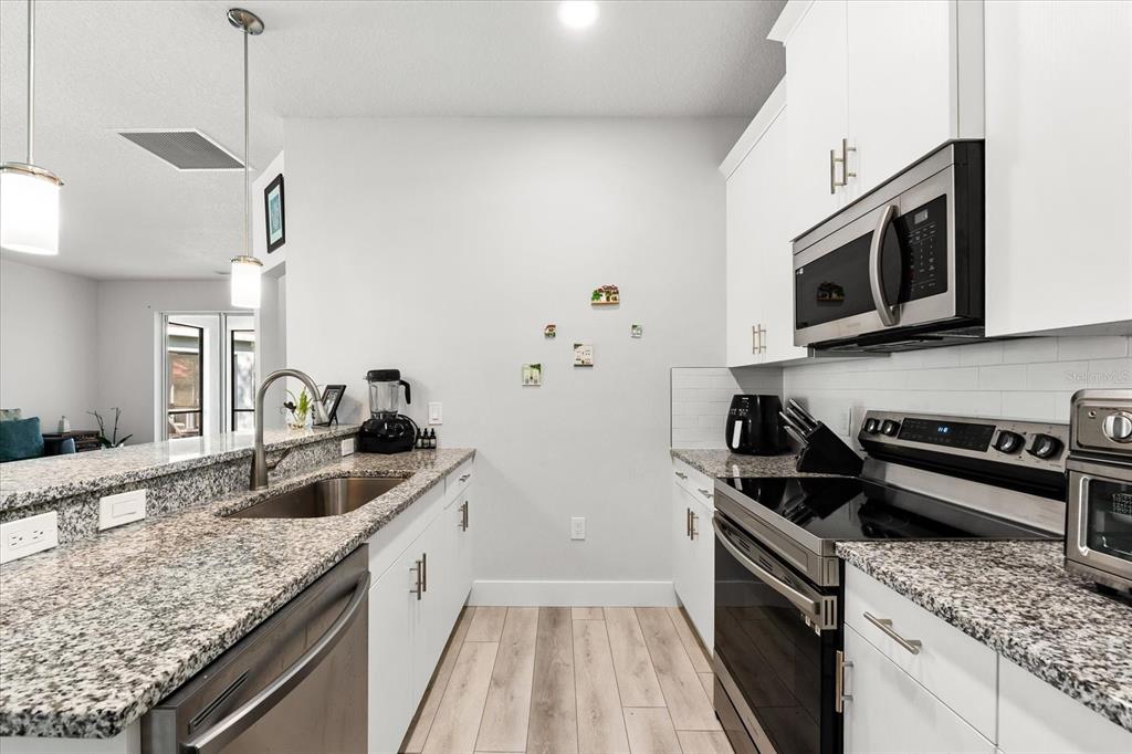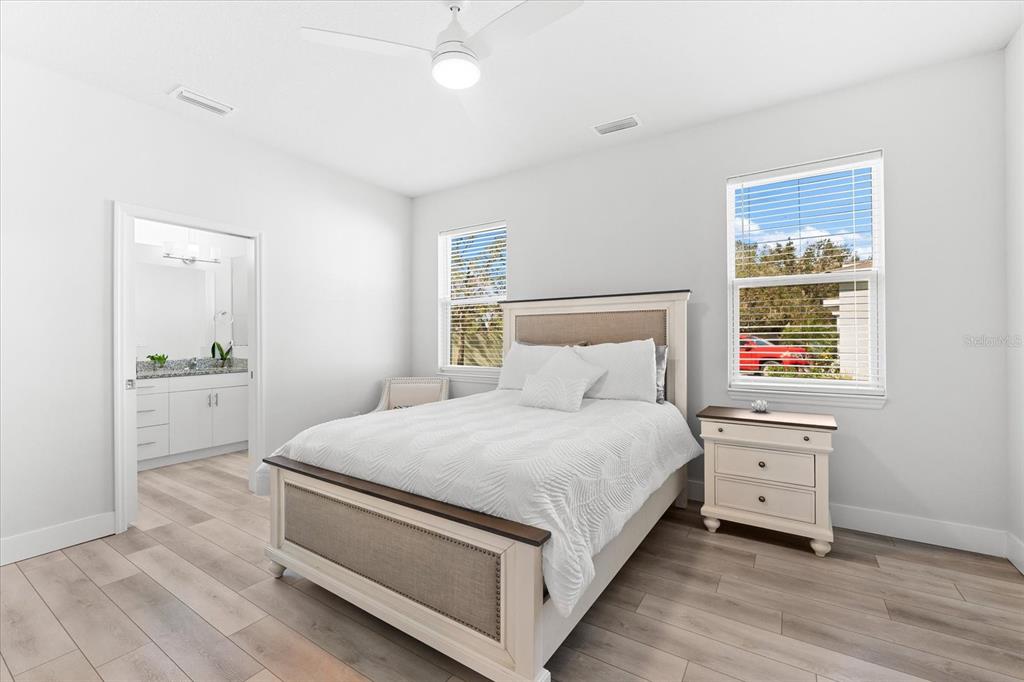 Split Bedroom Walk-In Closet(s)Ceiling Fan(s) High Ceilings Living Room/Dining Room Combo Stone Counters Window Treatments Primary Bedroom Main Floor Kitchen/Family Room ComboExterior Features:
