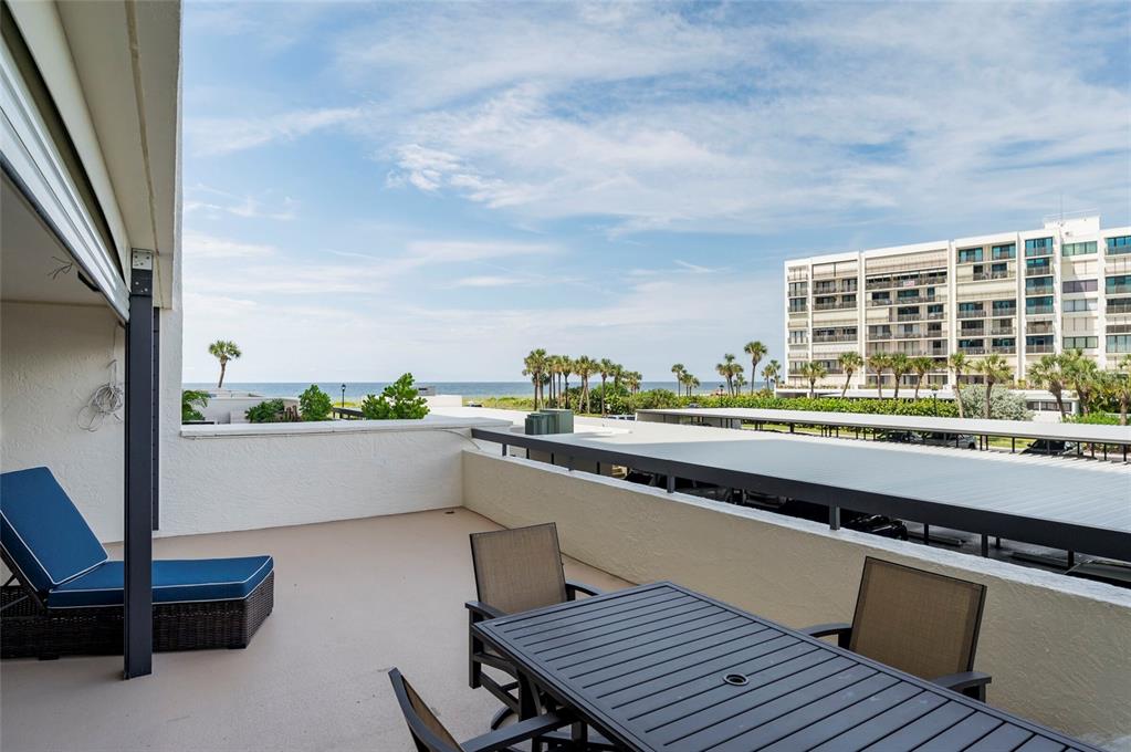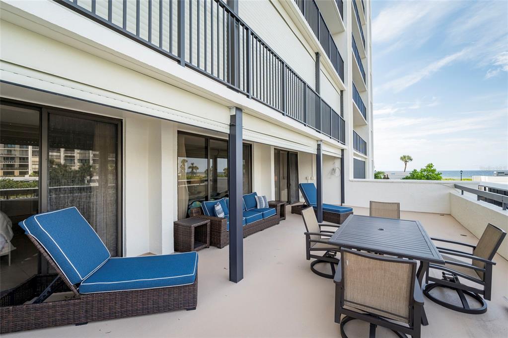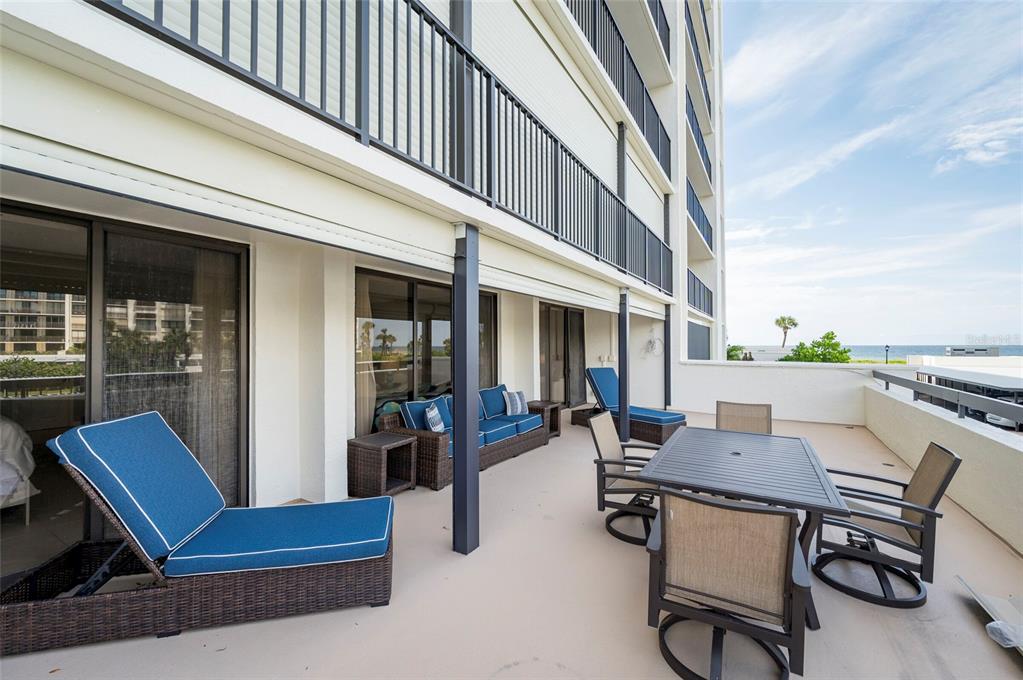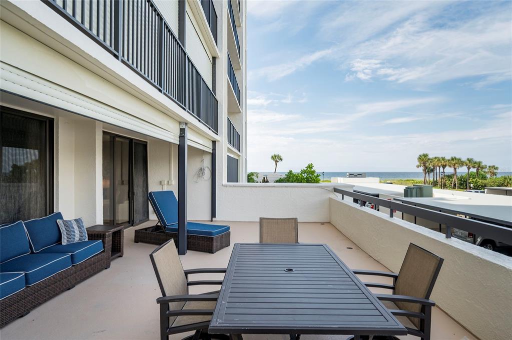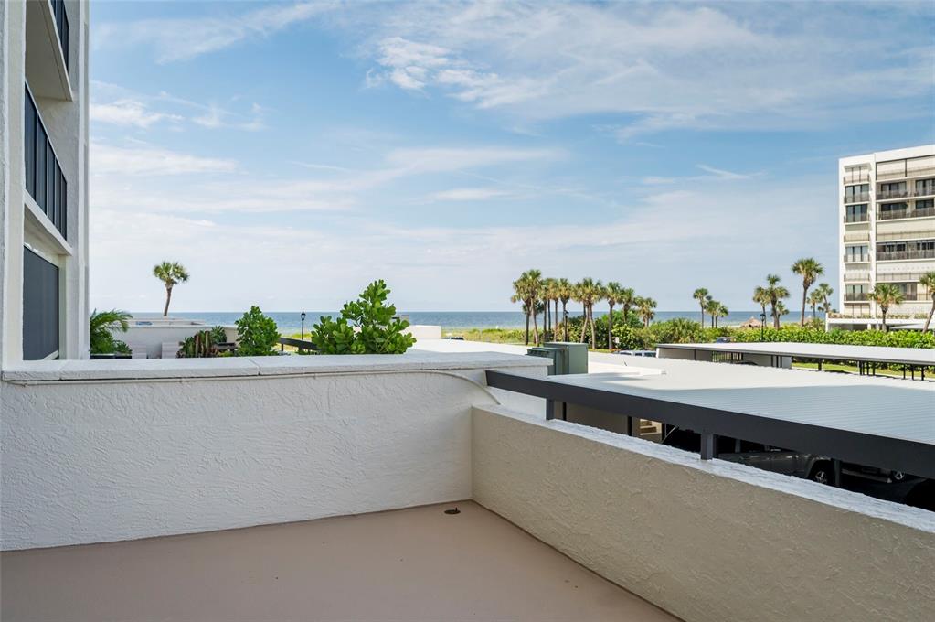 Rare unit - 500 sqft oversized balcony! walk out of your beach residence straight to the pool area, no need for an elevator! this turnkey, fully furnished luxury condo offers an impeccable open floor plan featuring two expansive bedrooms and two exquisitely renovated, spa-inspired bathrooms. tile flooring flows throughout, enhancing the sophisticated ambiance. the open-concept kitchen and living area seamlessly extend to the oversized patio, where breathtaking views of the gulf and intracoastal await. this highly coveted outdoor space is perfect for entertaining or enjoying mesmerizing sunsets. notable upgrades include hurricane shutters, beautifully textured ceilings, newer ac, water heater, and a washer/dryer. both bathrooms have been recently remodeled, showcasing modern colors and premium finishes. the master suite is a private retreat, with refined finishes and sliding doors that lead to the patio, blending indoor and outdoor living. nestled in a prestigious community near the fine dining and boutique shopping of sand key, residents enjoy a resort-style pool with ample lounging space, tiki huts for gathering, and direct access to the pristine white sands of the beach. the building also offers a community room for hosting larger events. this condo includes covered carport parking (#108) and a storage locker (#108). with its prime location, you are a short walk from the vibrant shoppes of sand key and renowned restaurants like columbia and backwaters. the trolley, pickup spot for which is conveniently located just outside the community, offers easy access to clearwater’s abundant dining, shopping, and entertainment options. tampa international airport is a short 20-minute drive, and tampa and st. petersburg are close by for endless adventures.1460 GULF #108, CLEARWATER BEACH, FL 33767