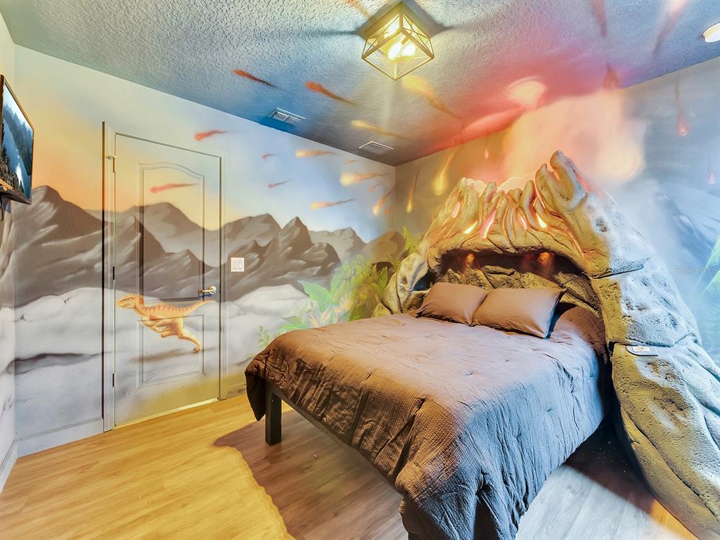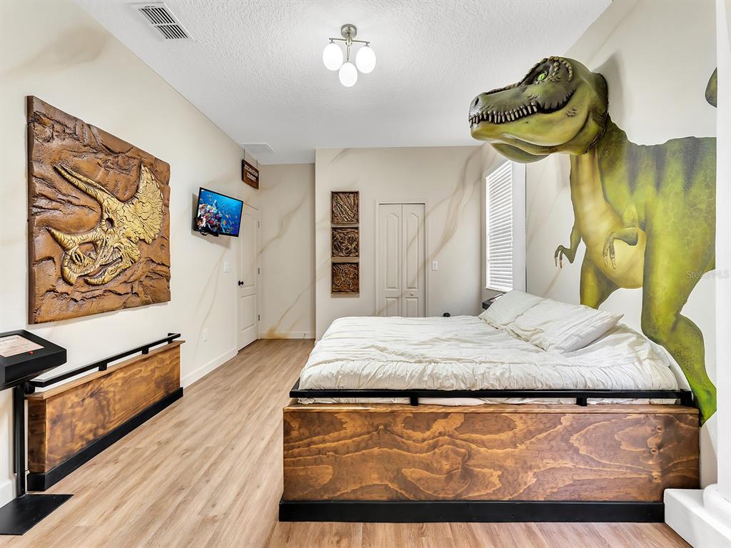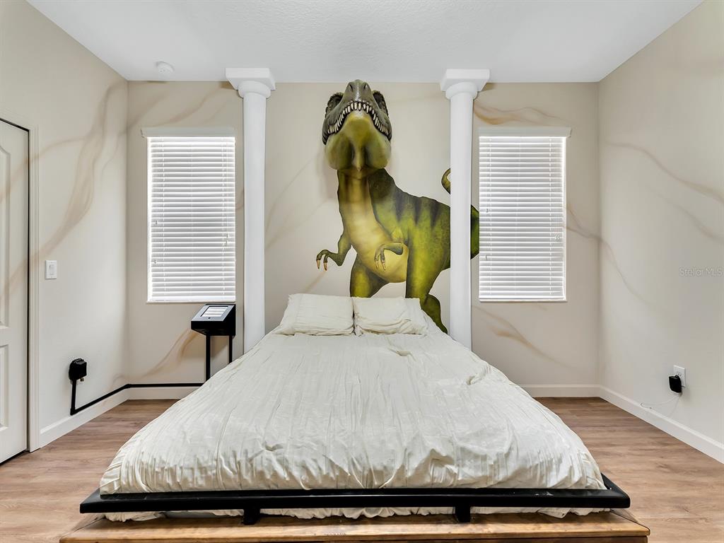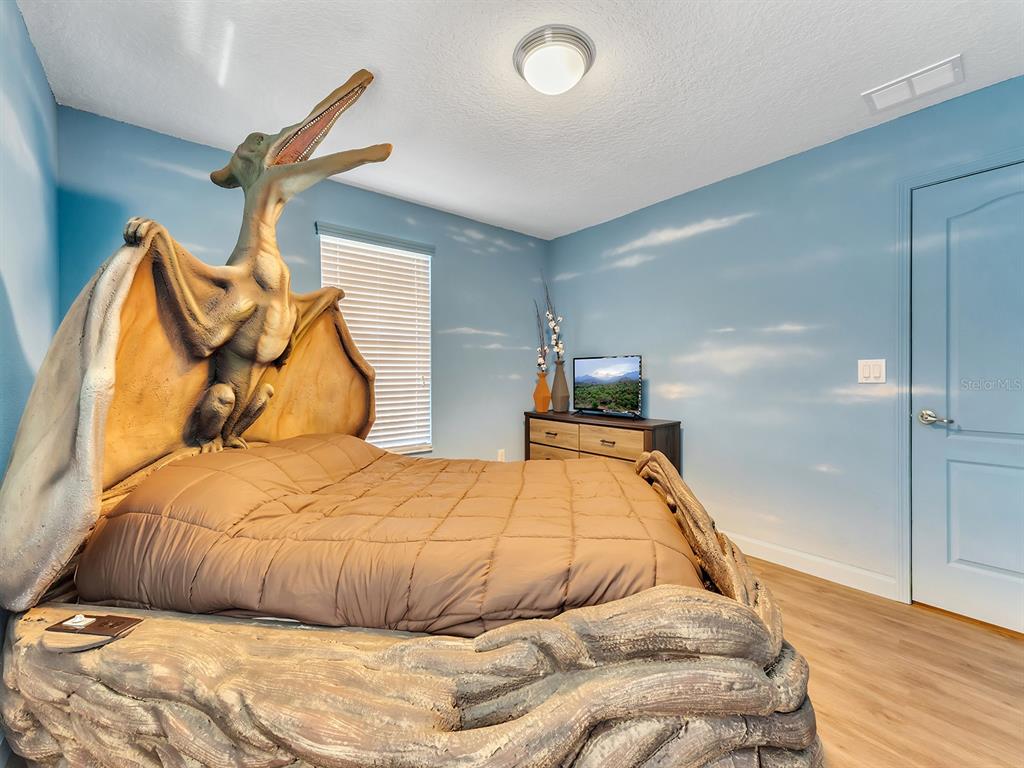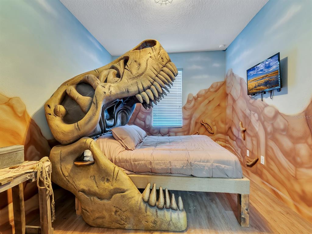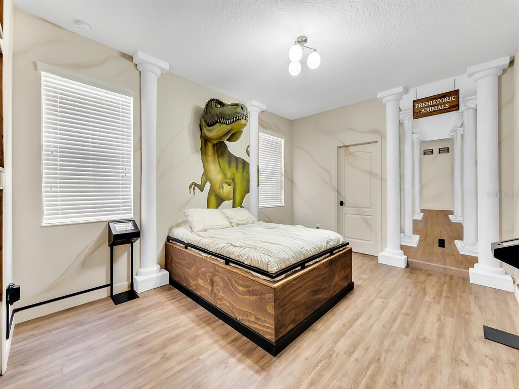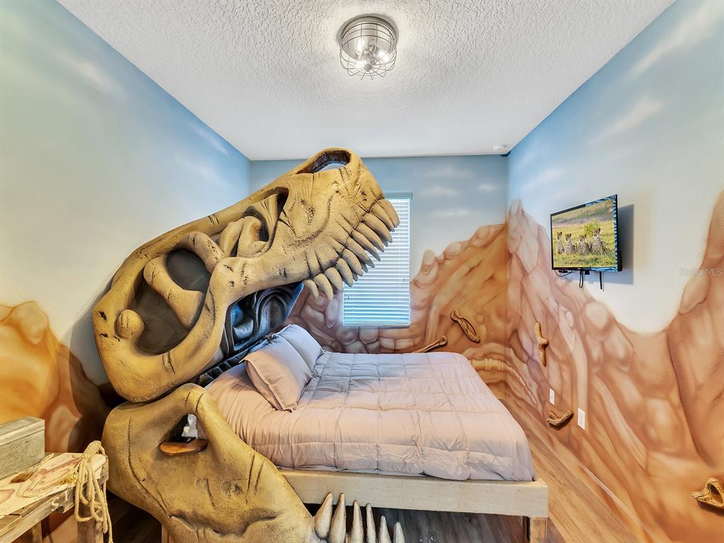 Here's your chance to own the world famous raptor retreat! this home made 160,000 in revenue in 2022, and includes over $175,000 in theming and upgrades (cabinets, backsplash, furniture etc..). buying an already themed home avoids having to spend the additional cash yourself, increasing roi and cash on cash returns dramatically! raptor retreat has amazing quality theming, as well as lights and sounds and informational displays, so guests can play and learn during their stay! home is a 3 min walk from the multimillion dollar oasis club, also enjoy the new retreat club at champions gate resort, and the golf club and driving range, pickleball and mini golf, this resort is the best in central florida!1465 BELLE TERRE, DAVENPORT, FL 33896