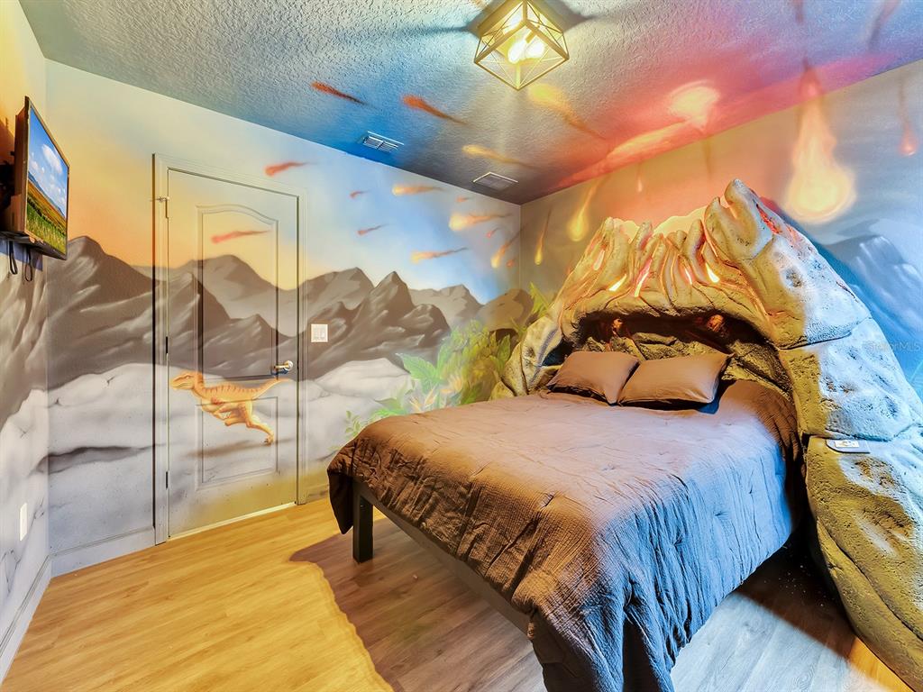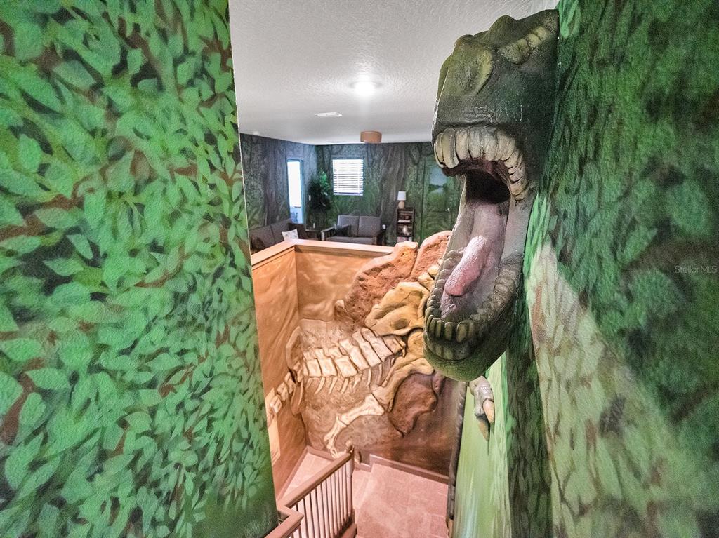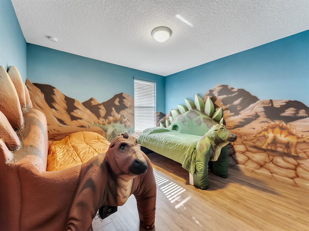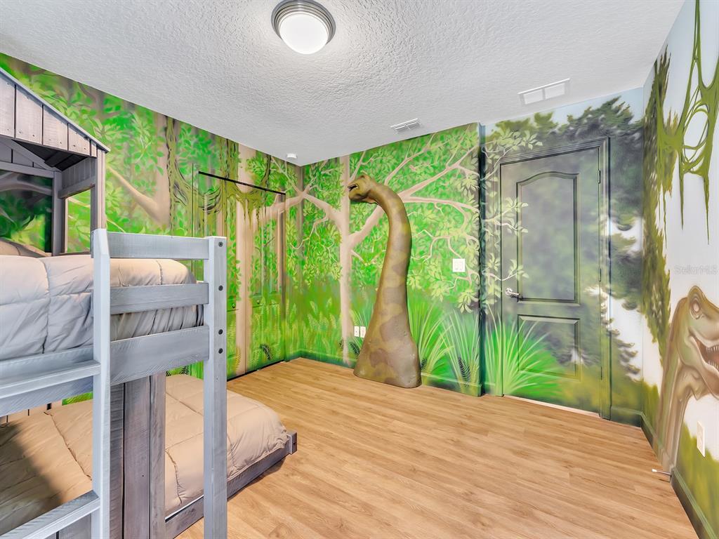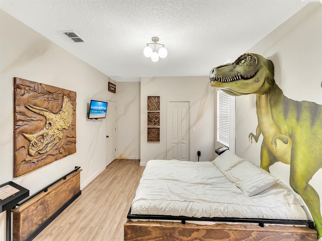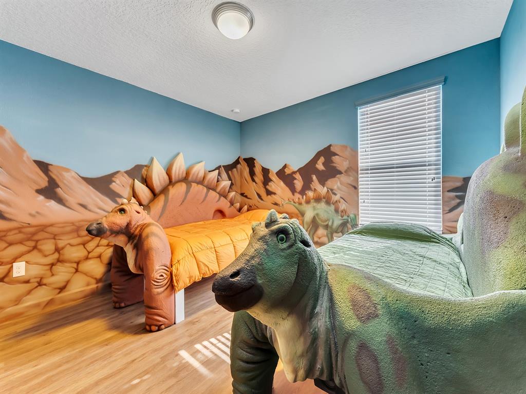 Here's your chance to own the world famous raptor retreat! this home made 160,000 in revenue in 2022, and includes over $175,000 in theming and upgrades (cabinets, backsplash, furniture etc..). buying an already themed home avoids having to spend the additional cash yourself, increasing roi and cash on cash returns dramatically! raptor retreat has amazing quality theming, as well as lights and sounds and informational displays, so guests can play and learn during their stay! home is a 3 min walk from the multimillion dollar oasis club, also enjoy the new retreat club at champions gate resort, and the golf club and driving range, pickleball and mini golf, this resort is the best in central florida!1465 BELLE TERRE, DAVENPORT, FL 33896