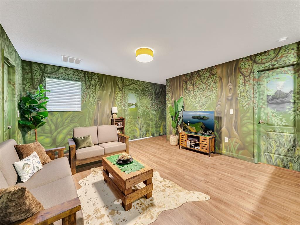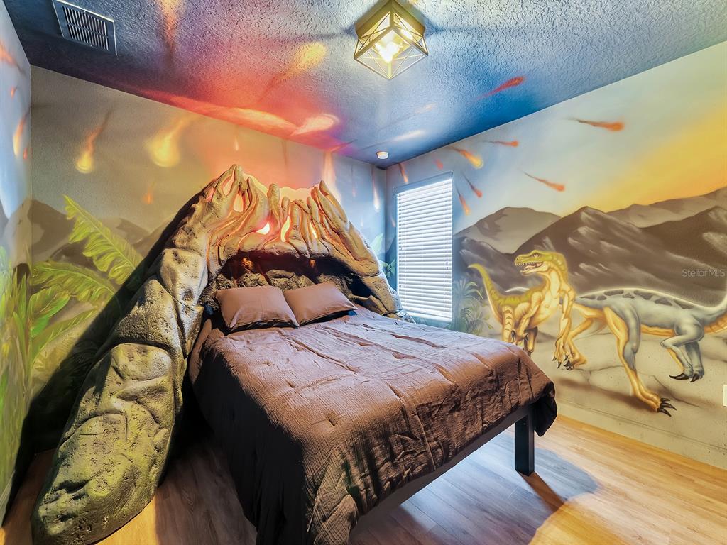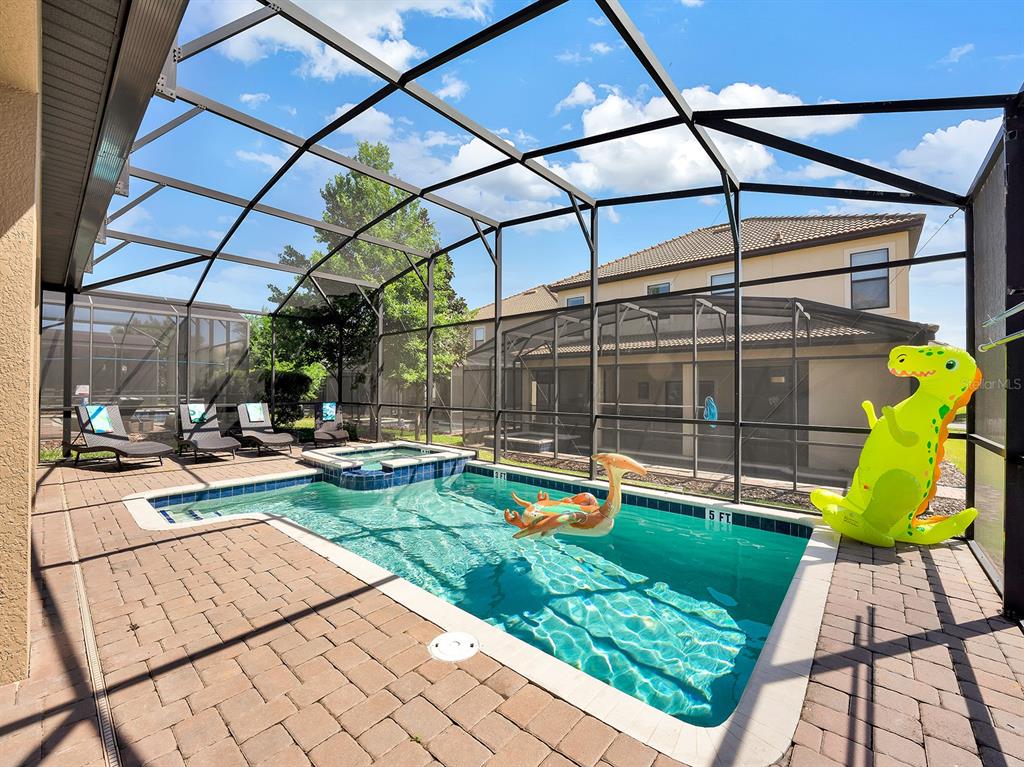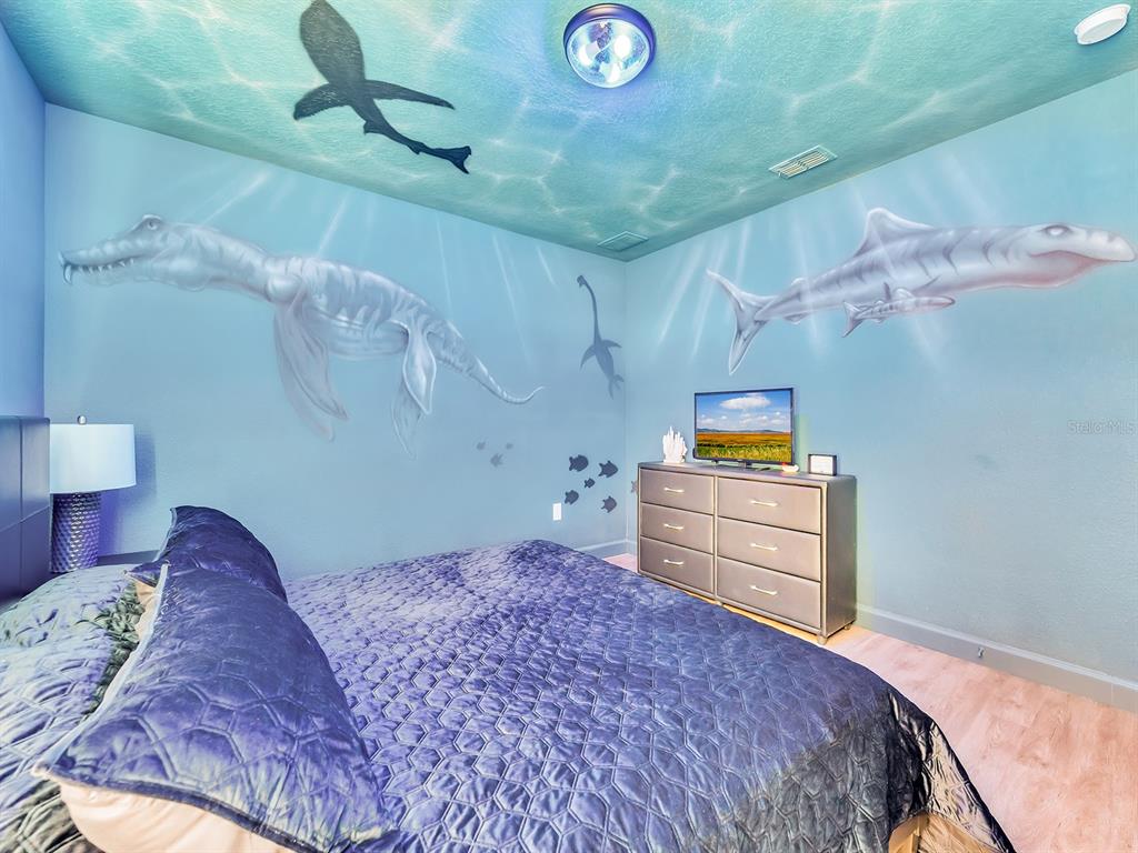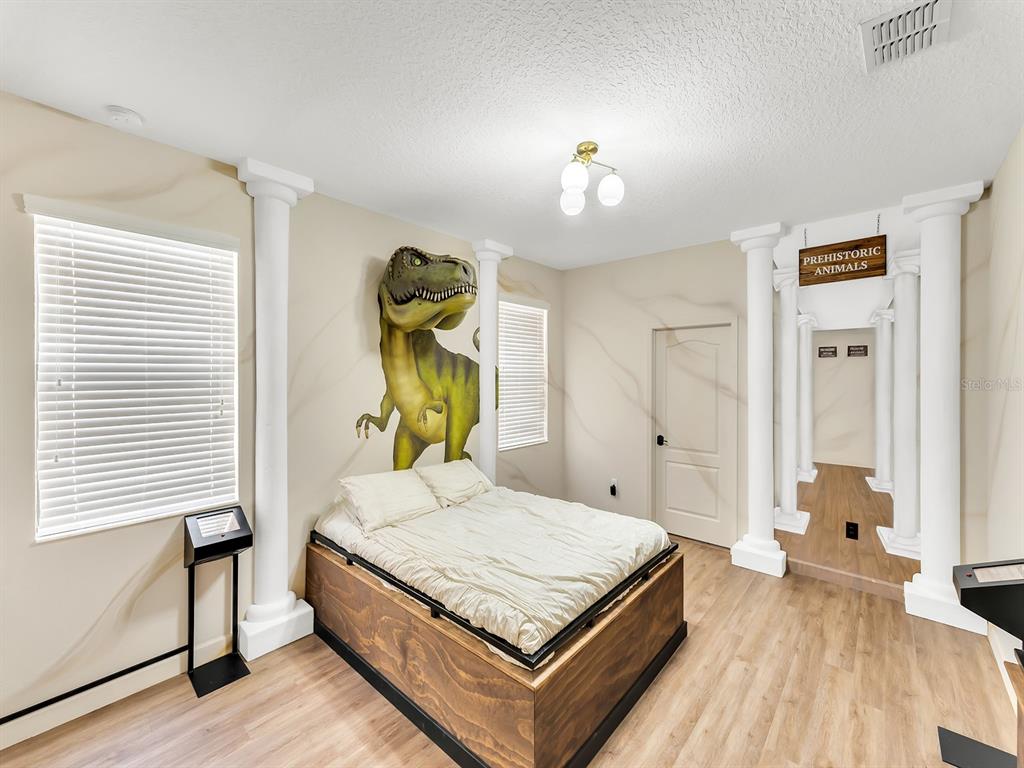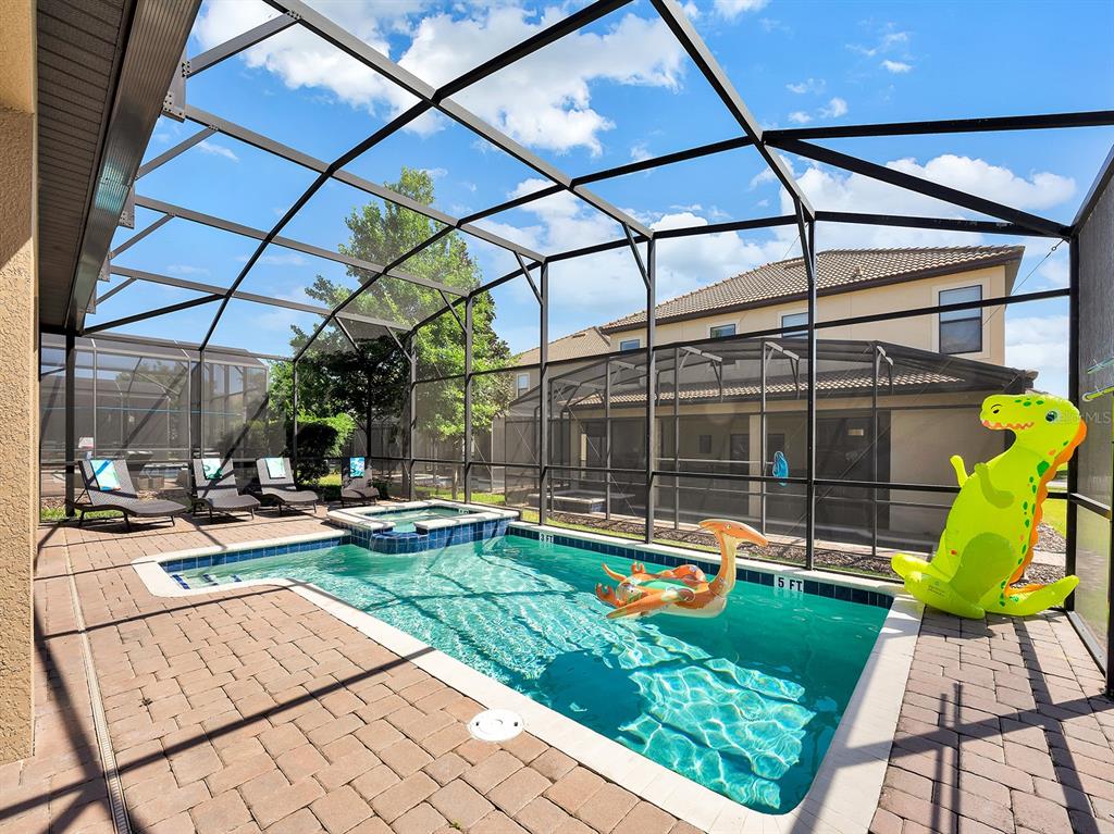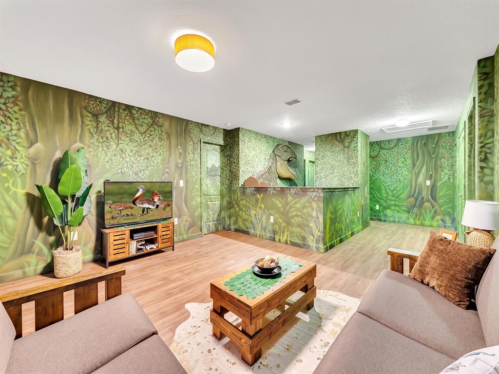 Here's your chance to own the world famous raptor retreat! this home made 160,000 in revenue in 2022, and includes over $175,000 in theming and upgrades (cabinets, backsplash, furniture etc..). buying an already themed home avoids having to spend the additional cash yourself, increasing roi and cash on cash returns dramatically! raptor retreat has amazing quality theming, as well as lights and sounds and informational displays, so guests can play and learn during their stay! home is a 3 min walk from the multimillion dollar oasis club, also enjoy the new retreat club at champions gate resort, and the golf club and driving range, pickleball and mini golf, this resort is the best in central florida!1465 BELLE TERRE, DAVENPORT, FL 33896
