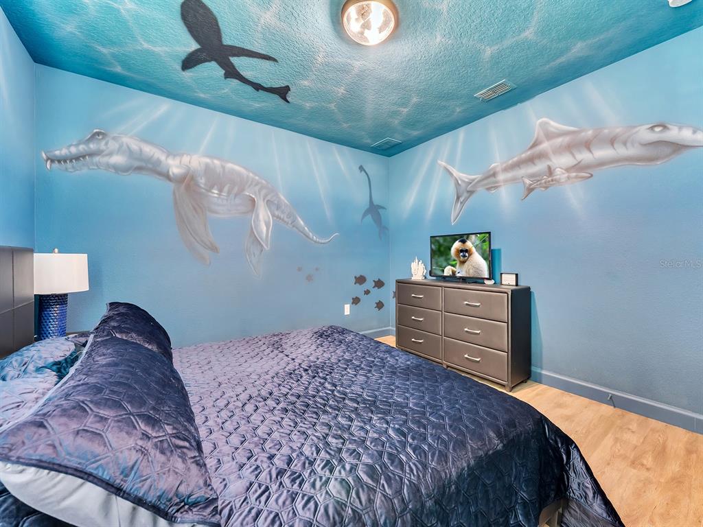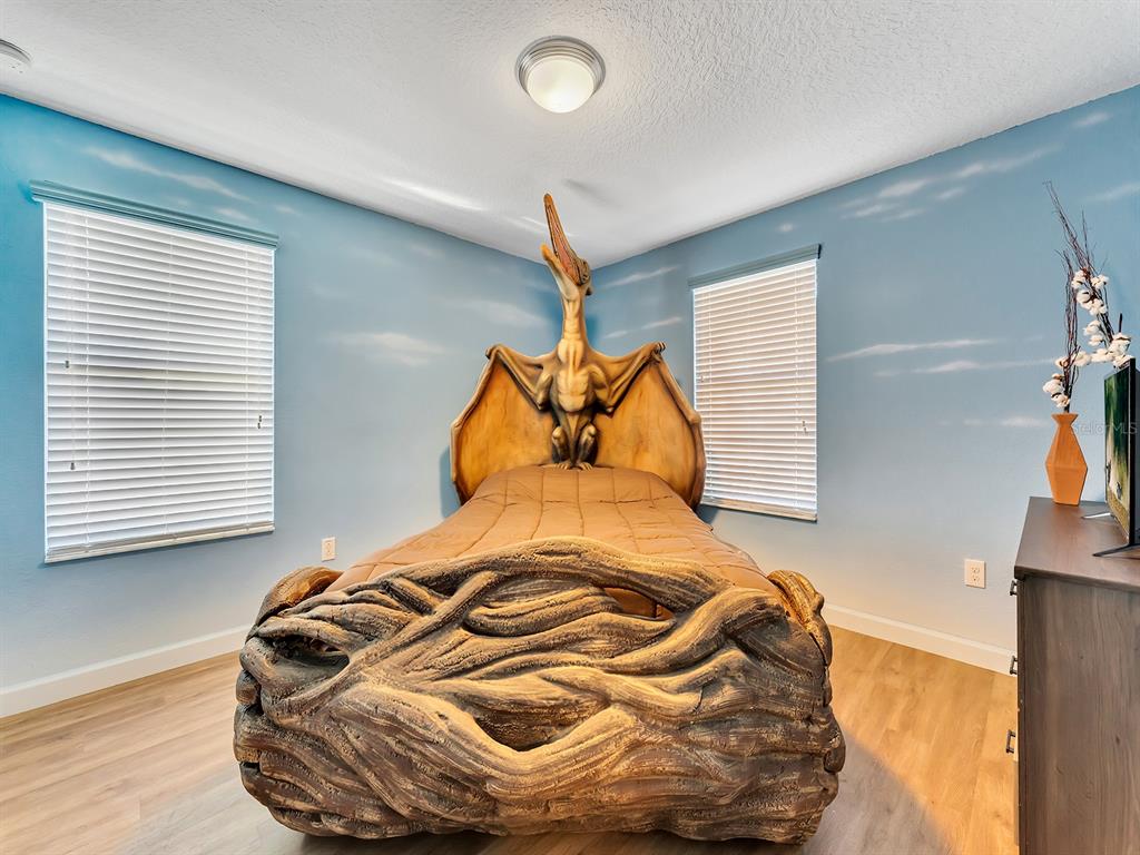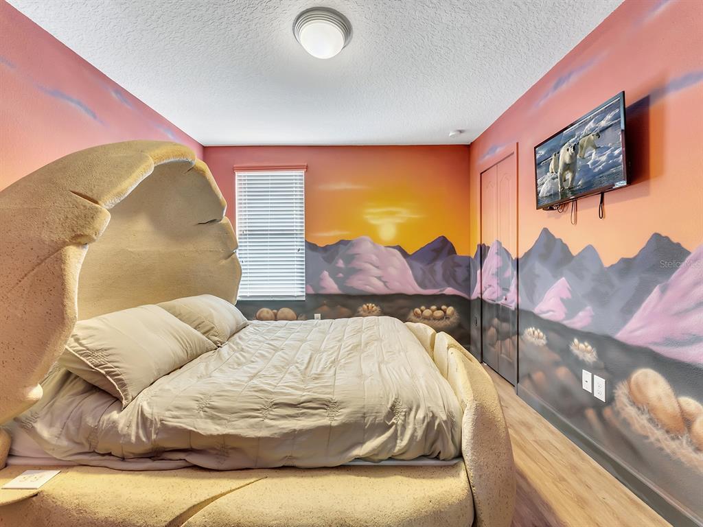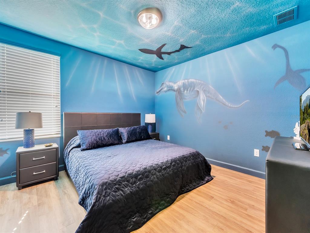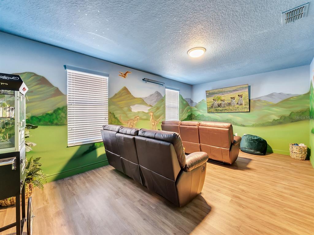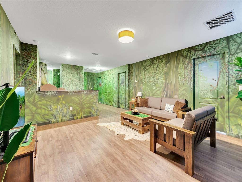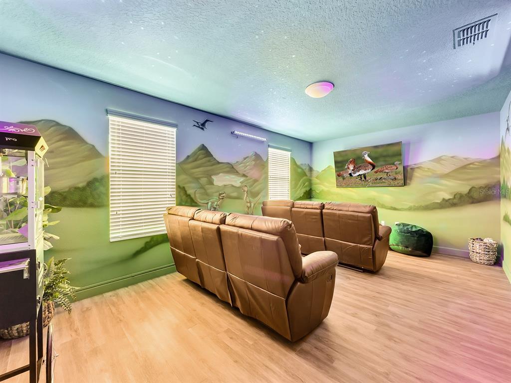 Here's your chance to own the world famous raptor retreat! this home made 160,000 in revenue in 2022, and includes over $175,000 in theming and upgrades (cabinets, backsplash, furniture etc..). buying an already themed home avoids having to spend the additional cash yourself, increasing roi and cash on cash returns dramatically! raptor retreat has amazing quality theming, as well as lights and sounds and informational displays, so guests can play and learn during their stay! home is a 3 min walk from the multimillion dollar oasis club, also enjoy the new retreat club at champions gate resort, and the golf club and driving range, pickleball and mini golf, this resort is the best in central florida!1465 BELLE TERRE, DAVENPORT, FL 33896