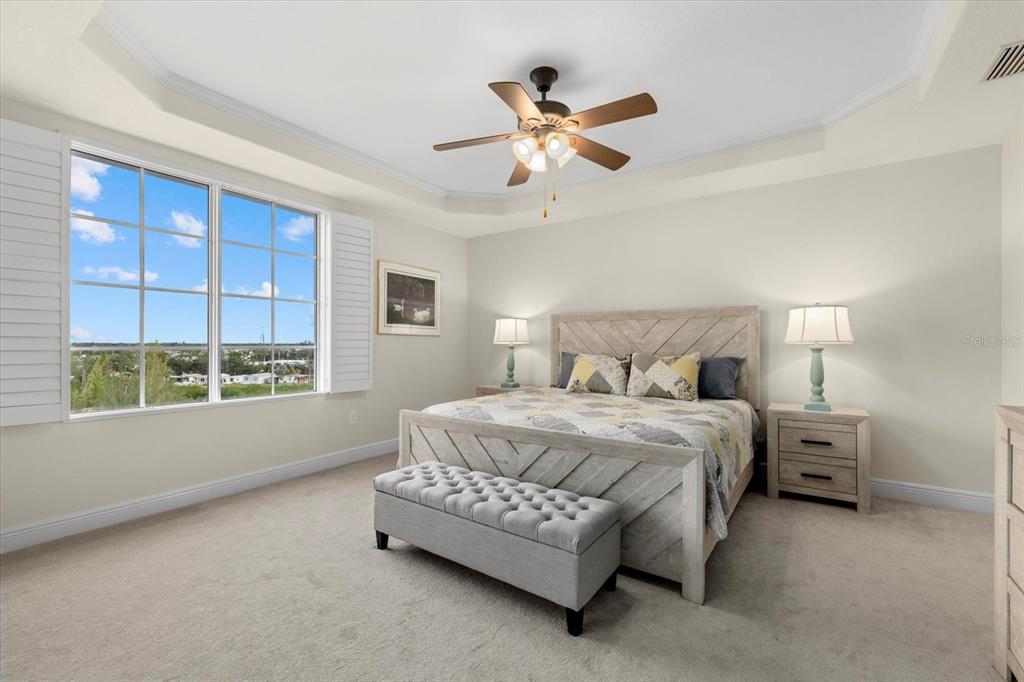 Welcome to your waterfront retreat in venice, florida! this stunning 7th-floor condo located in a gated community offers unobstructed views of the intracoastal waterway, where dolphins and manatees swim by daily. enjoy the best of both sunrise and sunset views from your private front patio and outdoor lanai, creating the perfect setting for morning coffee or evening relaxation. the open concept layout is perfect for entertaining both friends and family, while the office can also act as an overflow space for guests to sleep while they visit. the venetian bike trail runs alongside the property, offering scenic biking and walking opportunities along the water. located just 1.1 miles from venice beach and 16 miles to the world famous siesta key island, this condo combines coastal convenience with nice amenities/features. a rare covered parking space ensures your vehicle stays protected, while the community pool and secure, code-protected elevator enhance comfort and security. inside, the primary suite boasts crown molding and elegant coffered ceilings, adding some detail to the condo. impact windows provide peace of mind during storms, and the property has never sustained hurricane damage—a huge advantage for anyone looking to live on the gulf coast. embrace everything that venice has to offer by living in this condo that is centrally located to everything a person would want.147 TAMPA E #702, VENICE, FL 34285