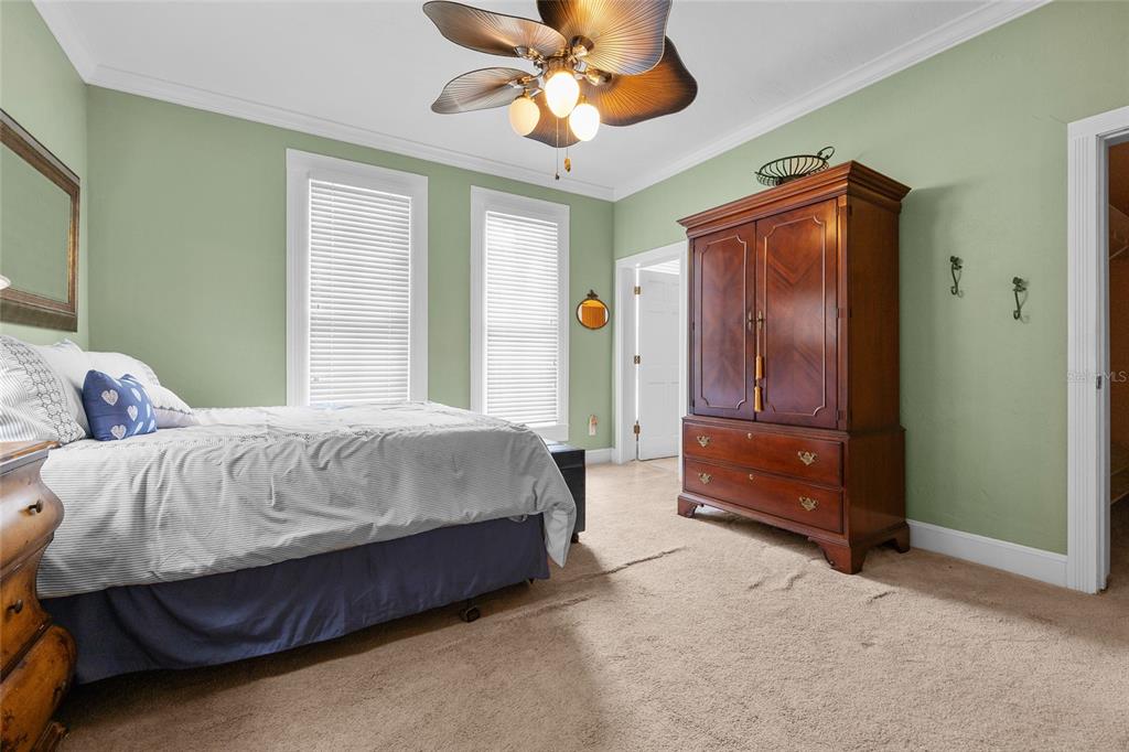 Split BedroomBuilt-in Features Walk-In Closet(s)Ceiling Fan(s) High Ceilings Thermostat Window Treatments Solid Surface Counters Solid Wood CabinetsCrown Molding Primary Bedroom Main Floor Tray Ceiling(s)Cathedral Ceiling(s) Chair RailExterior Features: