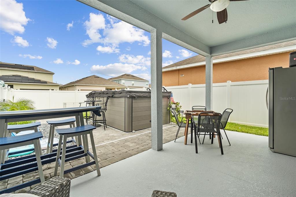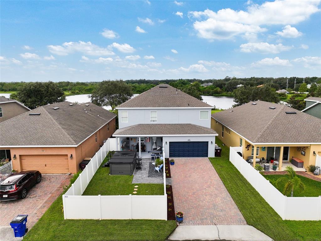 Charming water view home in turtle creek – welcome to this beautifully updated 4-bedroom, 2.5-bathroom home with a 2-car garage and convenient alley access, perfectly situated in the desirable turtle creek community with no cdd fees. from the moment you arrive, you’ll appreciate the brick-paver driveway and walkway, along with the freshly painted interior and exterior for a move-in-ready feel. inside, you’ll love the all-new luxury vinyl plank flooring —no carpet! the main level features 18x18 ceramic tile in the living and dining areas, along with a flexible bonus room that can serve as a fifth bedroom, office, or den. the upgraded kitchen is a true centerpiece, boasting solid wood cabinetry, stainless steel appliances, granite countertops, a large island, and plenty of space for entertaining. upstairs, enjoy a spacious loft, all bedrooms, and a convenient laundry room with a new washer and dryer(2025). additional recent upgrades include a new refrigerator(2025), newer dishwasher (2023), and new garage storage shelving (2025). step outside to your private backyard retreat featuring a vinyl privacy fence, extended paver patio, covered lanai, and a large hot tub with swim lane with the electric underground—perfect for relaxation or gatherings. the welcoming front porch also offers serene water views, making it an ideal spot to unwind. turtle creek residents enjoy fantastic community amenities, including walking trails, a pool, playground, dog park, and open recreational fields. this home truly combines style, comfort, and functionality—schedule your private showing today and experience the turtle creek lifestyle!1493 REFLECTION, ST CLOUD, FL 34771