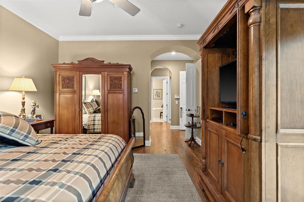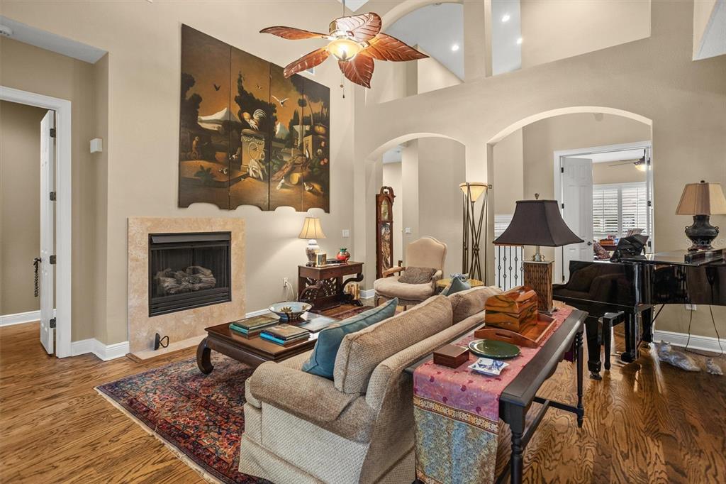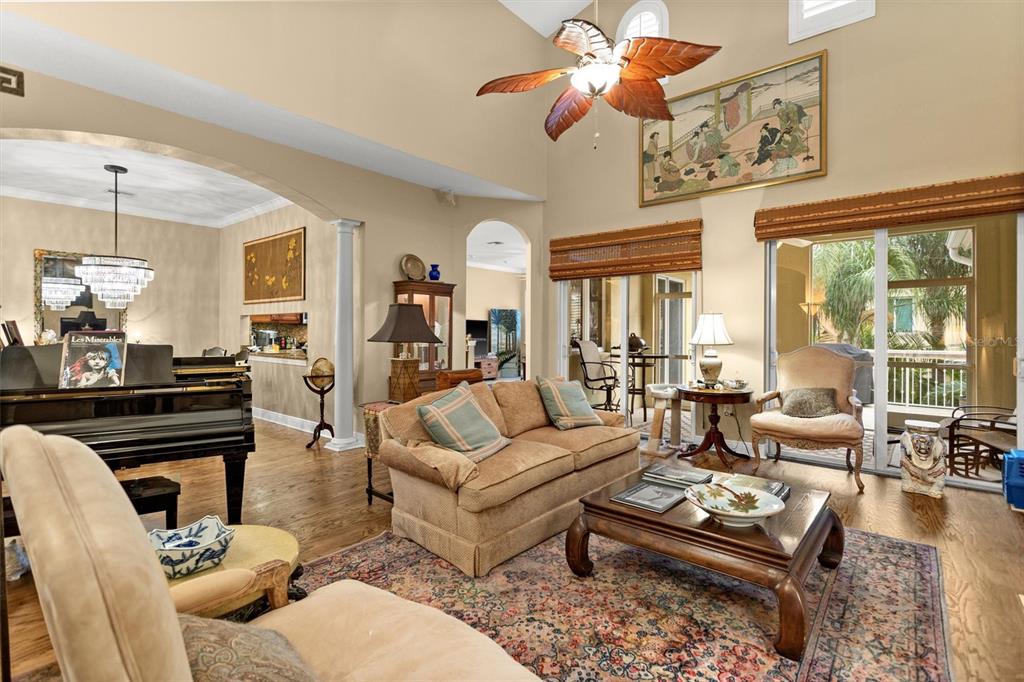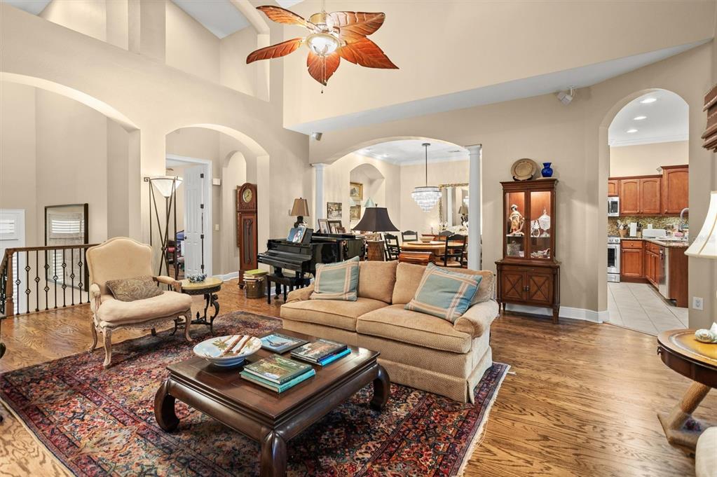 Split BedroomElevator Walk-In Closet(s) Vaulted Ceiling(s)Ceiling Fan(s) High Ceilings Living Room/Dining Room Combo Open Floorplan Window Treatments Solid Wood CabinetsCrown Molding Primary Bedroom Main Floor Kitchen/Family Room Combo In Wall Pest SystemExterior Features:
