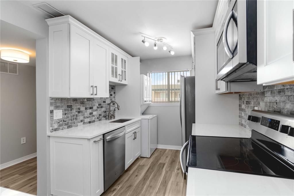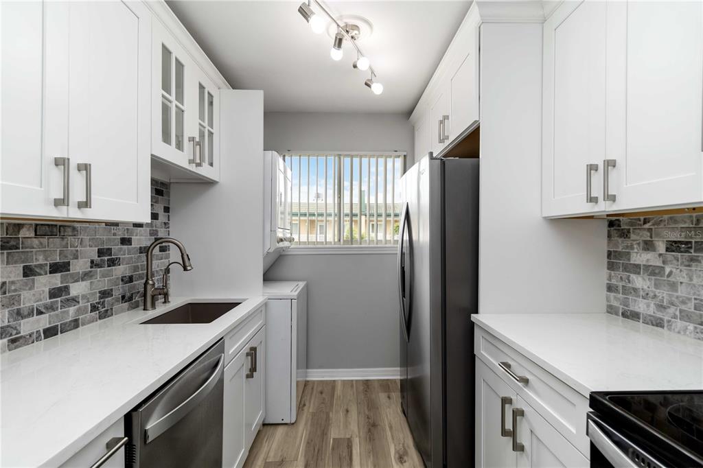 Prime location in downtown, historic punta gorda, just steps away from charlotte harbor. this 55+ community offers resort style living right outside your front door. located on the harbor walk, which is a 2.5 mile path running along charlotte harbor and connects laishley and gilchrest parks, as well as providing a path to fisherman’s village. move right in to this modern, 2 bedroom, 2 full bathroom condo. enjoy the views of the pool, the harbor and the sinking sunset from the top floor. charlevoi has an elevator for easy coming and going. luxury vinyl plank flooring throughout. the modern kitchen has quartz counters w/a breakfast bar, white, soft close cabinetry, tile/stone backsplash, an aqua pure water filtration system, stainless steel appliances, slide out pantry cupboard and tons of storage. roomy bedrooms, with attached bathrooms in each. tile showers and quartz cabinetry in both bathrooms. guest bath has a tub. open living space with dining area. large closets (walk in and built in closets in primary bedroom) in all areas of the condo. in unit laundry comes with washer and dryer. triple slider takes you out to the enclosed lanai with floor to ceiling windows. impact windows and slider provide storm protection. condo comes with a rare, assigned/numbered parking spot. there is an additional covered and deeded carport spot that is negotiable. charlevoi offers a range of amenities for its residents…heated pool, fitness rooms, shuffleboard, community room, library and a host of activities. find yourself surrounded by restaurants (tt’s tiki bar is right outside on the north end of charlevoi-cocktails, live entertainment, food and sunsets!) shops, boutiques, fishing, boating, entertainment (just across the harbor from the sunseeker resort) and all of the other bonuses of being in the heart of downtown punta gorda!150 HARBORSIDE #307, PUNTA GORDA, FL 33950
