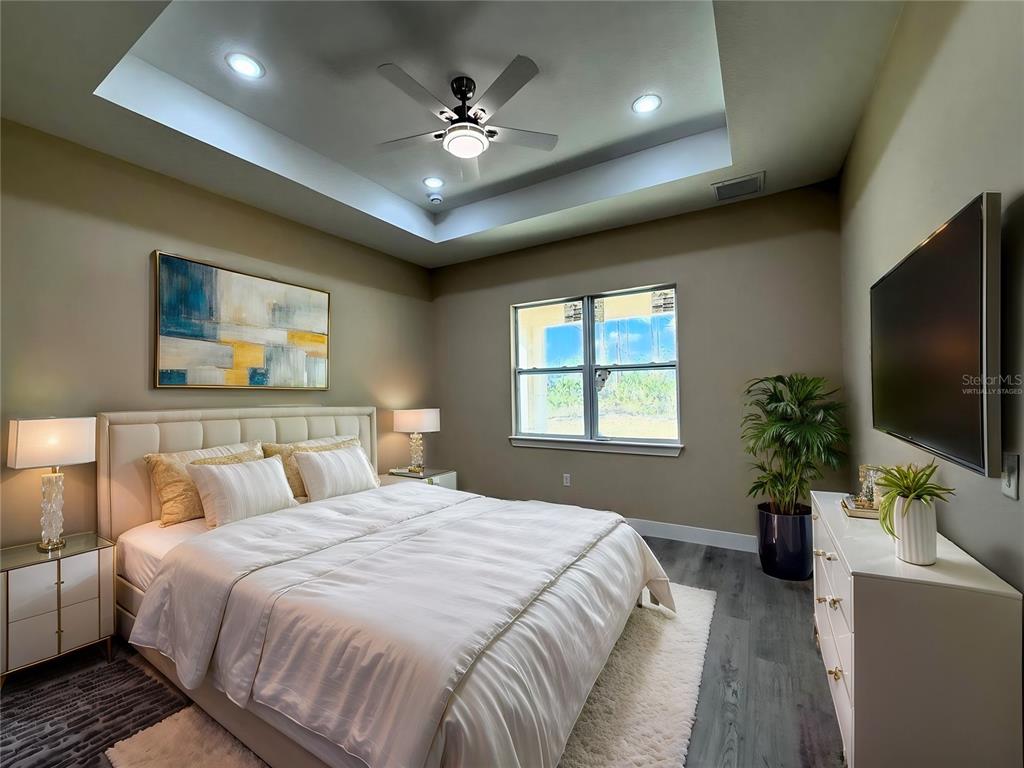Walk-In Closet(s)Ceiling Fan(s) Stone Counters Thermostat Open Floorplan Tray Ceiling(s)Exterior Features: