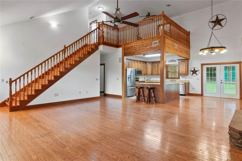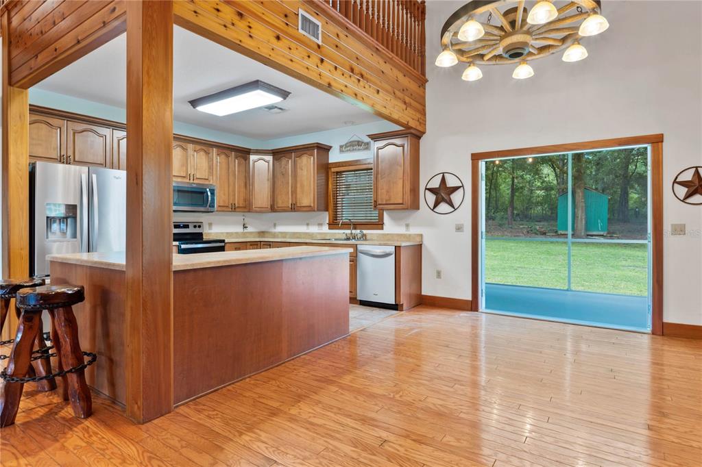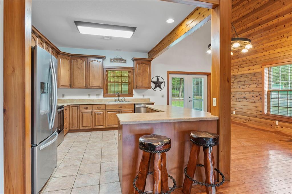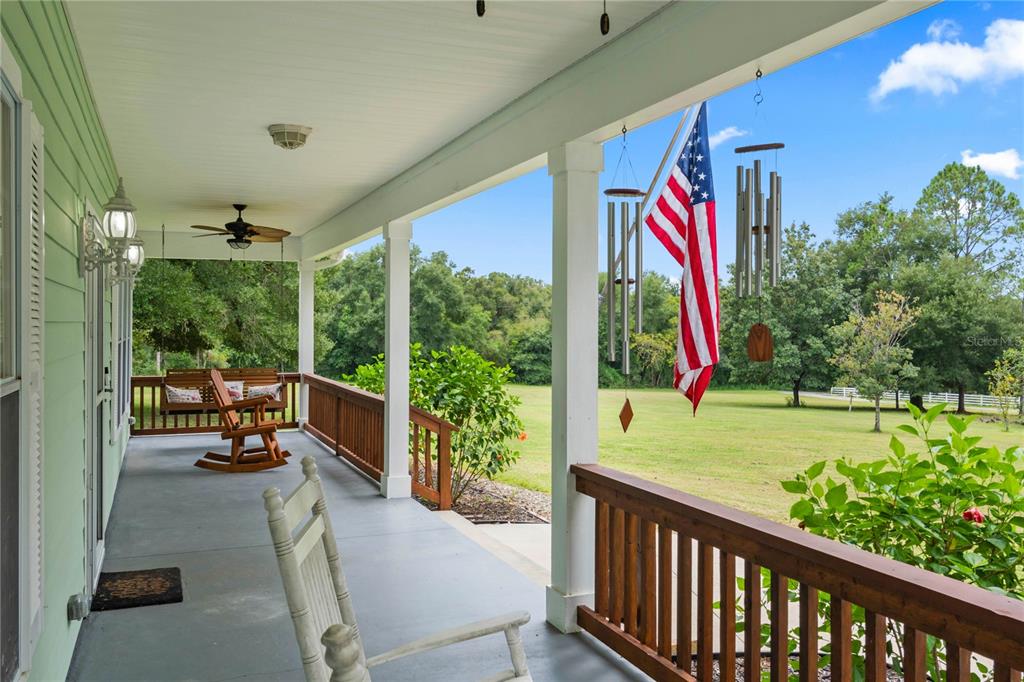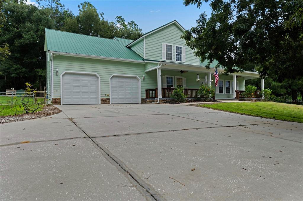 Dreaming of a mountain-style retreat in sunny florida? we have it...right here in the rolling hills of dade city! enjoy the charm of mountain living with the convenience of modern comforts in this awesome appaloosa hills home, designed to be energy efficient with 2022 trane ac, while maintaining a rustic, cabin-like aesthetic feel with cedar walls and oak flooring. built in 2005 by renowned custom home builder bob larkin, offers 3,024 square feet of living space. situated on pristine 5.44 acres, this spectacular country home with metal roof, nestled on a wooded hill is the perfect blend of rustic charm and modern luxury, while the sprawling land offers privacy, natural beauty, with space for horses and stunning views! inviting rocking chair front porch welcomes you with a wooden country swing, perfect for watching the sunsets. wow factor greets you as you enter thru leaded glass door onto hardwood oak floors and striking wooden accent wall with a stunning 18 foot fieldstone gas/wood fireplace as the focal point! this open-concept living room, dining room, and spacious kitchen features cedar wood walls, an inviting oak staircase and a spacious loft (for office or gameroom) overlooking the living area. the kitchen is a chef’s dream, with rinaldo-built custom maple cabinetry, crown moldings, roll-out shelves, large drawers, and corner specialties. french doors from the dining area open to a 10 x 54 wraparound screened back porch covering two sides with a newly painted deck, features edison lights offering ambiance to the additional outdoor entertaining space! outside, the barn houses a lawn equipment garage and the property, zoned for horses, includes a 48 x 36 four bay garage. added bonus to the property are 2 additional sheds in the backyard and one shed by the driveway in the sideyard (with electricity) for storage, a fenced dog run and raised garden beds on the back open patio. don’t miss the batting cage in the woods to the left of the home for those baseball enthusiasts! the house itself is loaded with upgrades, including 9-foot ceilings, built-in surround sound, wagon wheel chandelier in the dining room and upgraded ceiling fan in the great room. the owner’s suite, located on the first floor, boasting two large closets, a cultured marble walk-in shower, oversized garden tub and an expansive vanity. interior laundry room with utility sink and extra storage also has access to the screened back porch. the main house includes an attached, oversized 25 x 26 two-car garage with additional detached four-bay garage equipped with a workshop/paint room and storage area/tool/tack room, making this home a dream come true for those who crave space and functionality. gas water heater and gas fireplace with buried propane gas tank. whether you're seeking a peaceful retreat or a place to entertain, this colorado-style home in the hills of east pasco delivers everything you could desire. call today!15050 APPALOOSA HLS, DADE CITY, FL 33523