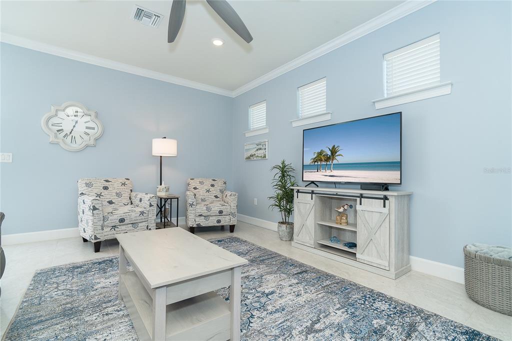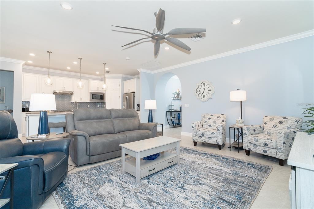 Split Bedroom Vaulted Ceiling(s)Ceiling Fan(s) High Ceilings Thermostat Open Floorplan Window Treatments Solid Surface CountersCrown Molding Kitchen/Family Room Combo Tray Ceiling(s) Smart HomeExterior Features: