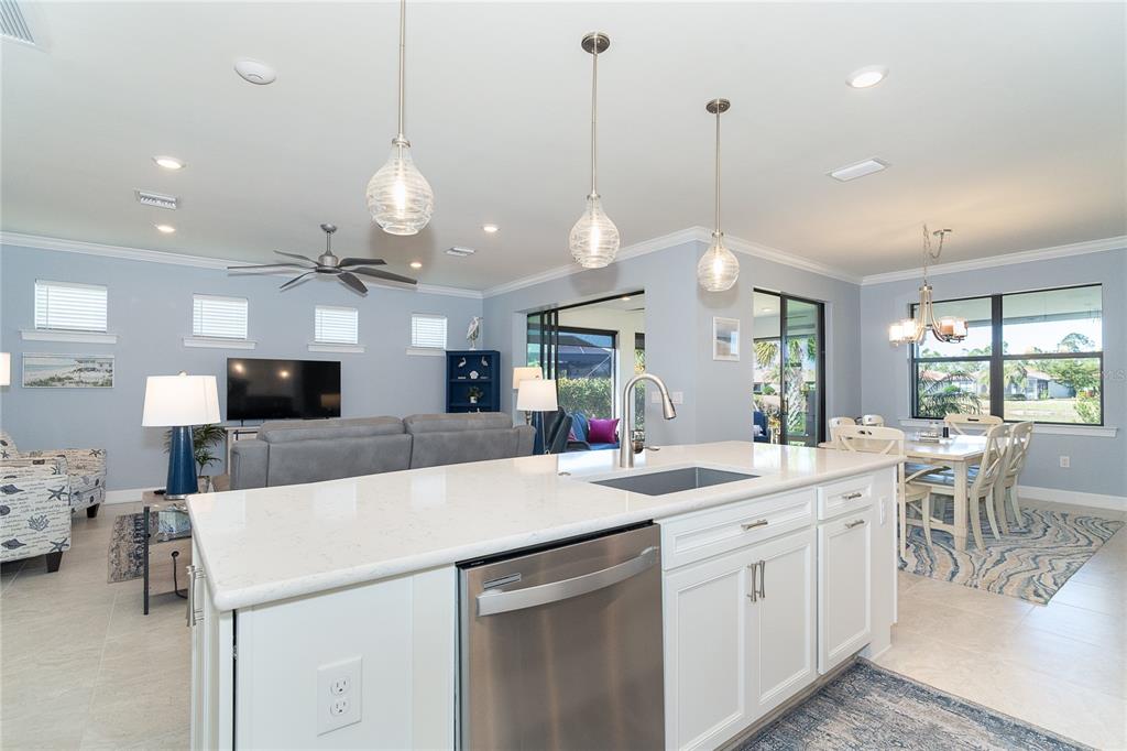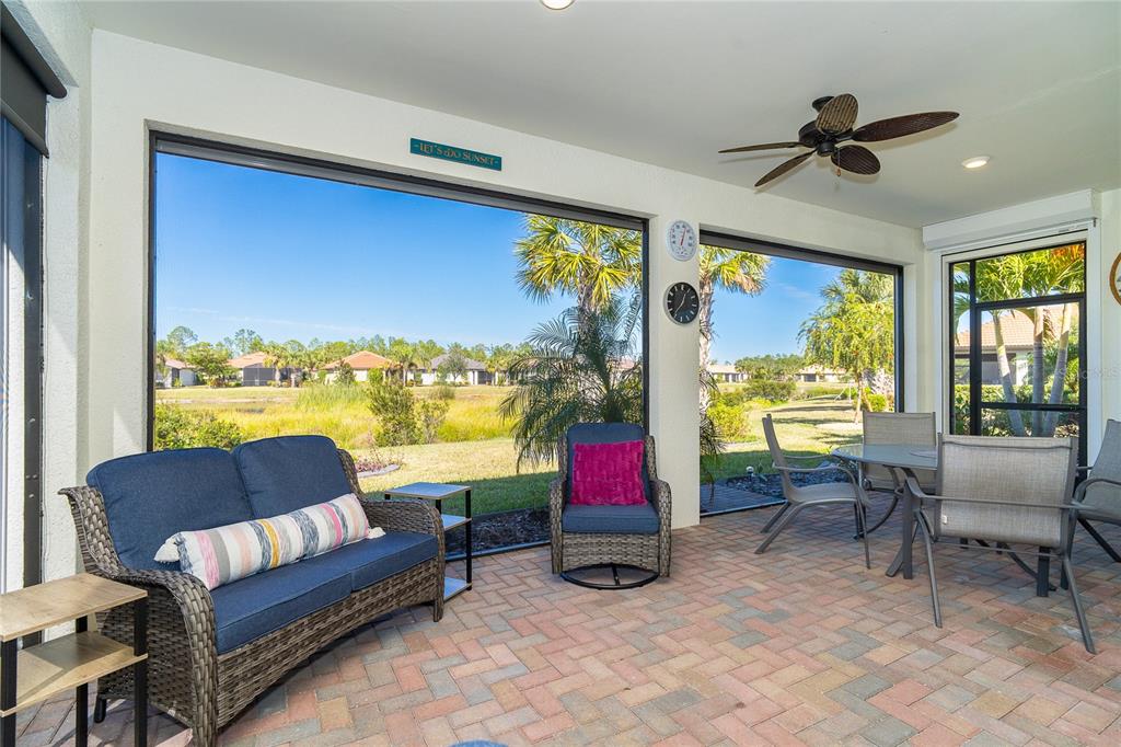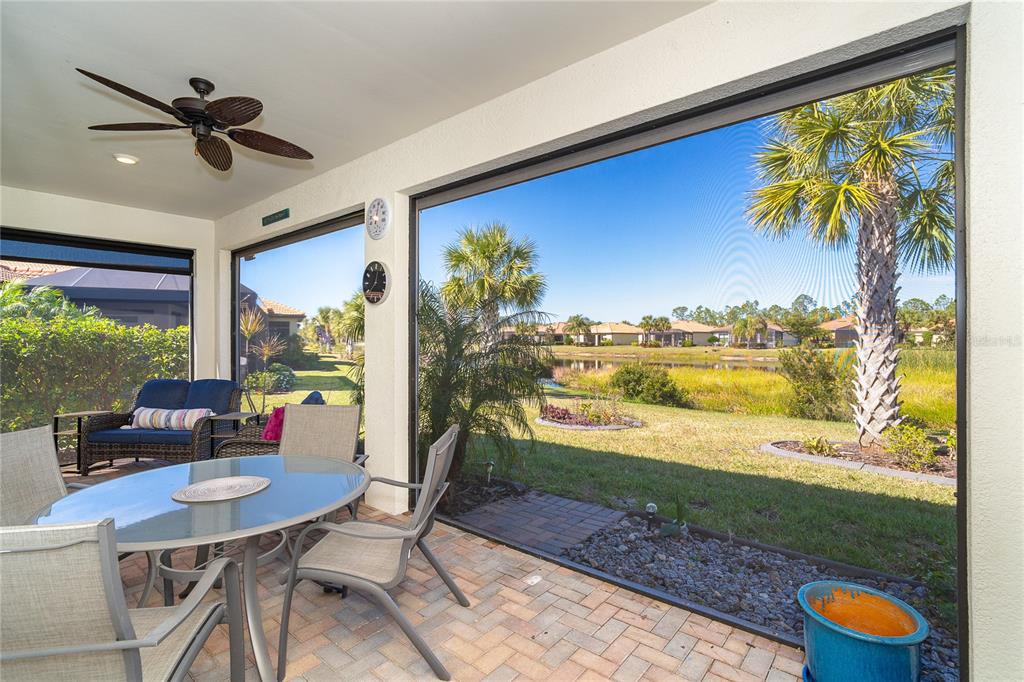 Welcome to this stunning luxury furnished, turnkey home in the coveted 55+ del webb community of cypress falls, offering the ultimate in hassle-free living. with over $70,000 in upgrades, including powered hurricane shutters offering you ease & comfort in any storm. this immaculate 2-bedroom, 2-bathroom home features a versatile flex room and an oversized, extended garage with space for your golf cart. enjoy the serene views of the lake from your beautifully landscaped backyard oasis. inside, the open and airy design welcomes you with 9’ ceilings, 8’ doors, and large windows, creating a bright and inviting atmosphere. the chef’s kitchen is a showstopper, equipped with stainless steel appliances, upgraded white cabinets, a stylish tile backsplash, and white quartz countertops. with plenty of cabinet space, a walk-in pantry, and pendant lighting over the expansive island, this kitchen is perfect for both everyday living and entertaining. the owner’s suite, with breathtaking views of the water, provides a spa-like retreat with dual sinks, a granite vanity top, a luxurious walk-in shower, a linen closet, and a spacious walk-in closet. the open concept floor plan is ideal for entertaining, and the split-bedroom layout ensures privacy for both you and your guests. the second bedroom and guest bath, with walk-in shower, offer additional space and comfort. convenience is key with a large laundry room featuring whirlpool washer and dryer, extra countertops, and cabinets for storage. step outside through the triple sliding glass doors onto your covered, extended lanai, where you can relax and enjoy the beautiful florida weather. the lanai is also equipped with powered hurricane shutters. this home is designed for easy living with powered hurricane shutters, lush landscaping, palm trees, and built-in pest control system, providing peace of mind and a low-maintenance lifestyle. lawn care and irrigation are included, allowing you to enjoy more free time without the worry of mowing or edging. cypress falls is a maintenance-free community with resort-style living and a small-town feel. experience an active, vibrant lifestyle with an abundance of amenities including pools, a spa, pickleball courts, bocce ball, billiards, and much more. discover your dream retirement lifestyle at cypress falls—where luxury, comfort, and relaxation await.1506 HYSSOP, NORTH PORT, FL 34289
