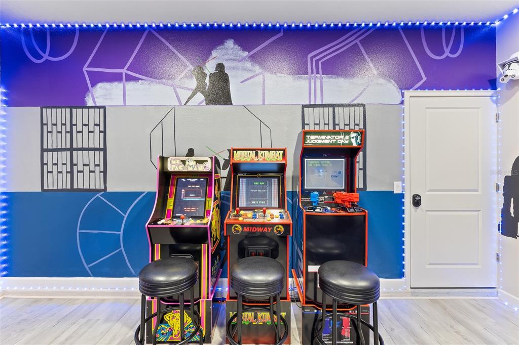 Escape to your own enchanted escape, a beautifully disney, harry potter, and marvel themed vacation rental located in the sought-after champions gate neighborhood of davenport, florida. this impressive 8-bedroom, 5-bathroom estate has been professionally designed by an interior decorator and features hand-painted murals by a professional artist making it the ultimate retreat for fun-seeking families and groups looking for an unforgettable vacation experience. boasting a 5-star rating on airbnb and an exceptional rating on vrbo, this property comes with positive rental history, offering great potential for generating even more rentals with a dedicated investor. the property features 8 bedroom, 5 bathrooms, sleeps 16 – thoughtfully designed for maximum comfort and convenience. multiple professionally decorated and themed rooms featuring disney’s lion king, frozen, mickey mouse and minnie mouse, 101 dalmatians, pirates of caribbean, aladdin, marvel, harry potter, and space themed décor with custom murals on walls and doors of all rooms. private theater room with theater projection screen and professional surround sound. arcade & game room for endless family fun. chef’s kitchen with high-end appliances, private ice machine, and expansive prep space. indoor/outdoor living with spacious family room opening to a screened lanai and pool. fully furnished with all items thoughtfully selected to enhance guest comfort. investment highlights include rental history with excellent reviews. actively managed across airbnb, vrbo, private website, and social media platform and all will transfer to new owners. offered turnkey and fully furnished, ready to generate income from day one. rare opportunity to own a themed home in one of central florida’s top 5% short-term rental on airbnb. champions gate lifestyle highlights. located just minutes from walt disney world, universal studios, and orlando attractions, champions gate offers guests world-class amenities: the oasis club at champions gate with lazy river, water slides, tiki bar, and fitness center. two greg norman–designed golf courses. resort-style dining, shopping, and entertainment within the community. the opportunity is now. whether you’re looking to expand your portfolio with an amazing vacation rental or acquire a second home that pays for itself, enchanted escape delivers the magic. this is more than a home—it’s a destination where guests create lifelong memories while you benefit from a performing investment. call today to schedule your private showing of enchanted escape and experience the magic for yourself. all items updated in 2022: pool heater, florida glass installed on pool deck (you can see out but no one can see in), all new furniture, new paint and décor throughout, tv living room, washer and dryer, murals, new carpet fans, new high-end mattress and box springs, appliances, dishwasher replaced (2024), game room designed, pool furniture, theater completely redesigned and entrance to theater. all items as you see it stay with the home.1513 FLANGE, DAVENPORT, FL 33896
