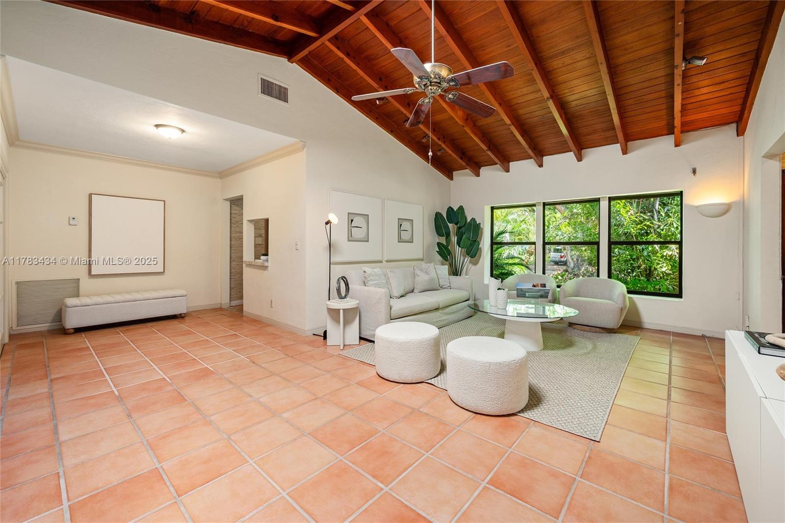 Tucked away on a lush lot in coveted coral gables, this meticulously maintained tropical oasis brims w/warmth, character & potential. its premier location 1 blk from um places this classic mid-century home in the heart of walkable coral gables. tidy interiors feature: vaulted ceilings, crown molding; built-ins; tile floors; skylights & impact windows. graciously scaled living rm. family rm invites nature indoors. updated kitchen w/viking appliances & pass-thru to dining area. primary suite boasts spa-style shower, 2 walk-ins & patio access; 2nd bdrm w/patio access + flexible extra space for 3rd bdrm or office w/ full bath. beautiful resort-style backyard anchored by waterfall pool, deck & mature palms. enchanting & timeless, this lovely little paradise is a hidden gem.1514 ZULETA AVE, CORAL GABLES, FL 33146