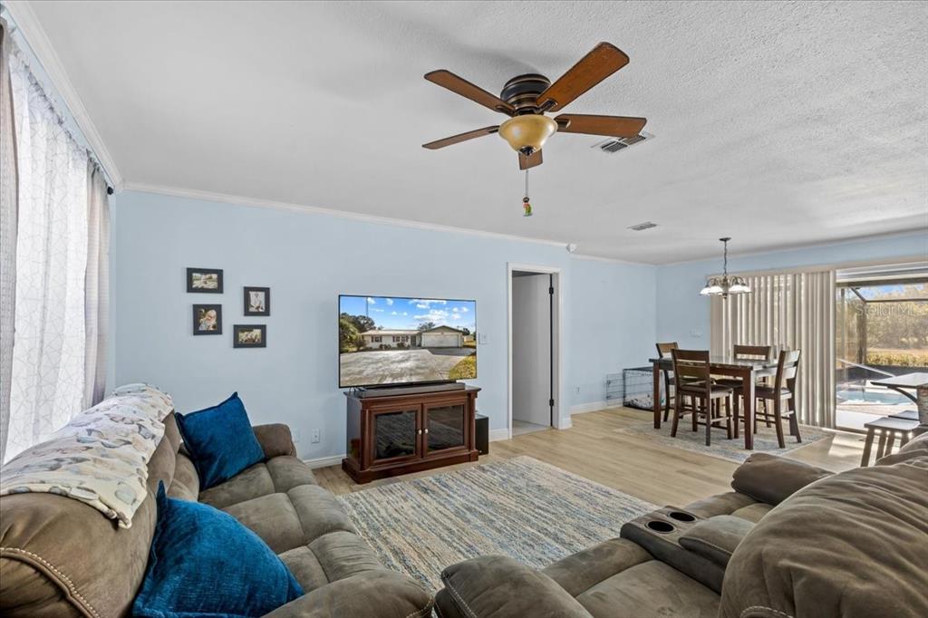 Country club pool home up from grabs sitting on the williston golf course which is currently undergoing restoration! featuring 2 bedrooms and 2 bathrooms this home has the perfect split floor plan. the recently updated open kitchen has a grand island and stainless-steel appliances. with luxury vinyl plank flooring throughout the main living areas and tile bathrooms this one will not disappoint! step outside and you’ll find the perfect oasis after a long day. a screen enclosure featuring a beautiful inground pool and patio will be ready for you and any company you may have! sitting on the 13th hole with a kitchen pass through window you can enjoy this lania year around! additionally, the property holds a great storage shed. with the roof replaced in 2021 this home has everything you’re missing and more! call today because this one is priced to sell!15148 NE 3RD, WILLISTON, FL 32696