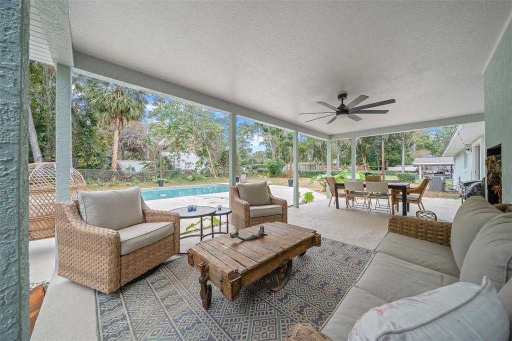 This beautiful remodeled home is move in ready!!!!the gorgeous 4 bedroom , 2 bath home has a huge primary suite that features a sitting area with a fireplace, the primary bath includes a garden tub, large shower and a large walk in closet. you will find 3 additional bedrooms and one bath on the other end of this split plan, each with a spacious closets. the beautiful kitchen over looks the family room and you can walk through the french doors to the covered lanai over looking a 23 x 19 amazing pool. new lights have been installed in and around the pool. you can enjoy a firepit in the back yard. roof is under 2 years old. this home is in a highly sought-after community. the neighborhood has multiple parks, free libraries thru out, and allows golf carts on some roads.1516 SE 22ND, OCALA, FL 34471