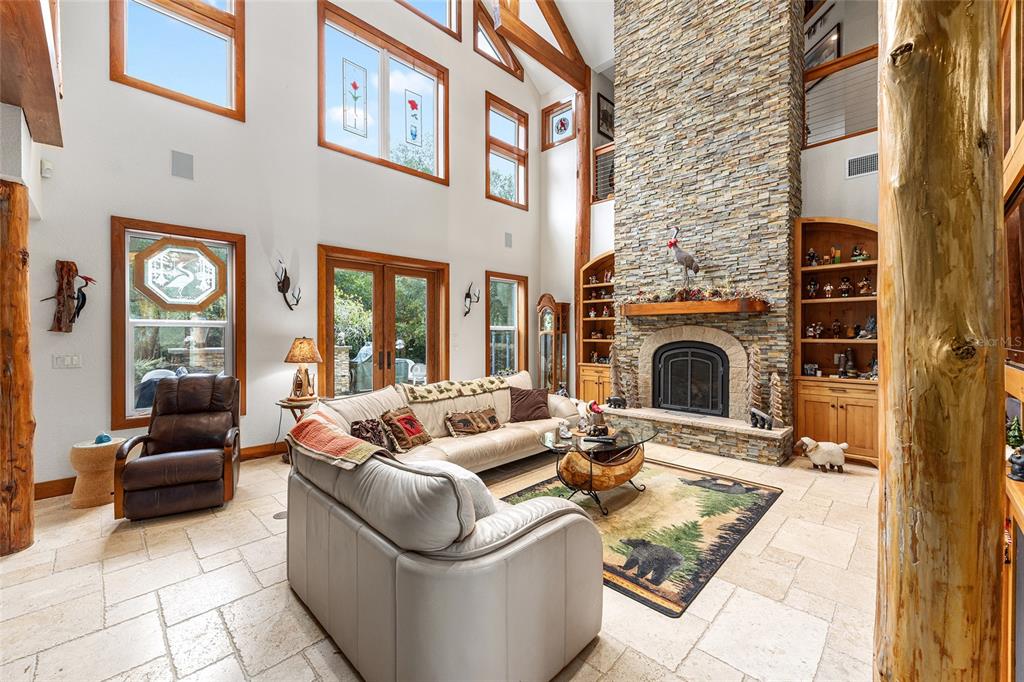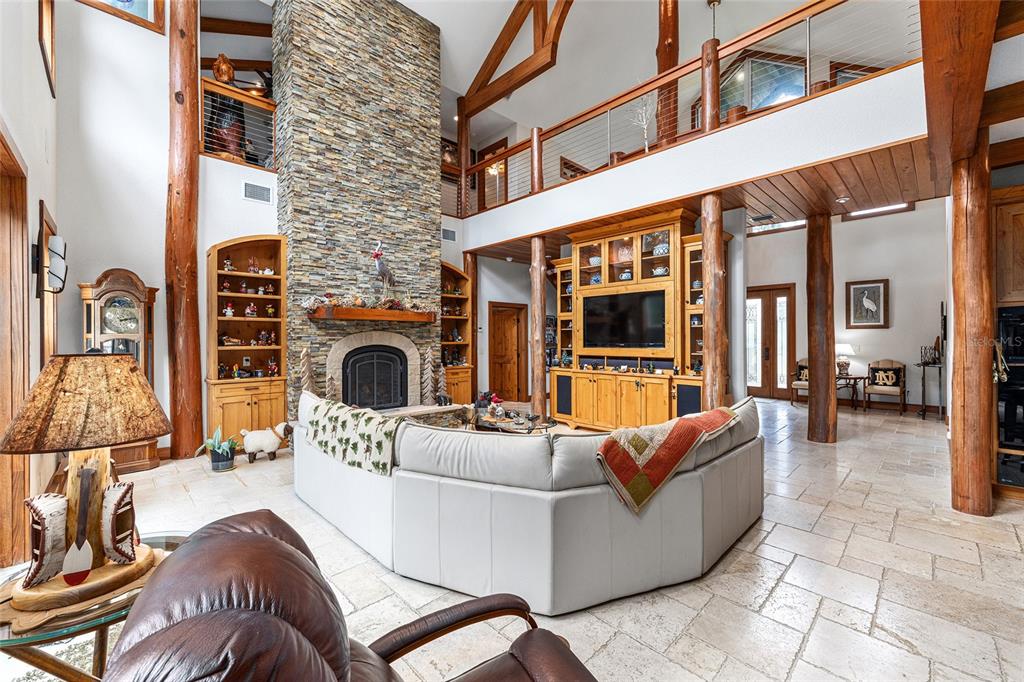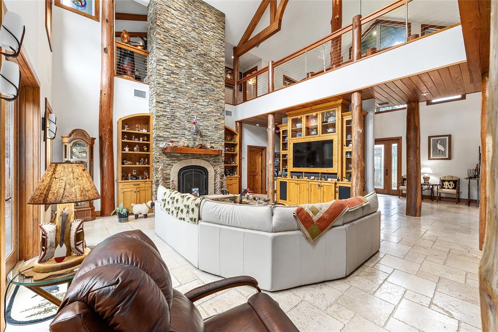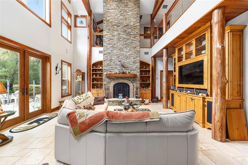 Welcome to the manor house at lake kerr – a truly one-of-a-kind custom estate, artfully designed with exceptional craftsmanship, high-end finishes, and timeless architectural detail. from the grand entrance framed by dramatic cypress pillars to the intricate millwork and travertine flooring throughout, every element exudes quality and elegance. the main residence features 3 bedrooms—potentially 4—and 4.5 bathrooms. the expansive first-floor primary suite offers french doors opening to the rear terrace, a private sitting room with fireplace and dry bar with refrigerator, a spa-inspired bathroom with vanity area, and a generous dressing room. upstairs, all bedrooms enjoy french doors that open to covered wood balconies. one spacious bedroom includes an ensuite bath, while another features an additional sleeping loft—ideal for extra guests. a charming upstairs sitting room with its own fireplace connects to a jack and jill bathroom and could easily be converted into a fourth bedroom. the formal entry is nothing short of spectacular, where soaring cypress log pillars and a hand-painted mural make a memorable first impression. the great room features cathedral ceilings, a dramatic two-story dry-laid stone fireplace, and custom built-ins. an open-concept kitchen anchors the living space with a center island, breakfast bar, and a large butler’s pantry—equipped with two additional refrigerators and ample storage. just off the kitchen, a sunken bar opens seamlessly to the outdoor entertainment terrace, complete with built-in grill, fire pit, and an electrical hookup for a future spa. the three-bay tandem garage is ideal for storing watercraft, atvs, or other recreational gear. above the garage, a versatile bunkhouse includes a full bath and kitchenette—perfect for a gym, home theater, or guest suite. set on 1.27 acres with panoramic views of little lake kerr, (the main home recently appraised in july for $1m) the estate also includes two additional parcels: a 0.17-acre lot (parcel id 10829-001-02) with approved plans for a guest house a 0.22-acre canal-front lot (parcel id 10753-001-53)featuring a 2012 two-bedroom, two-bath manufactured home—ready for interior updates and boathouse improvements. the boat ramp is situated next to the property on 242nd ave. this exceptional property is a rare opportunity to own a refined lakeside retreat with room to grow, entertain, and enjoy the very best of florida living.15225 NE 246TH, SALT SPRINGS, FL 32134