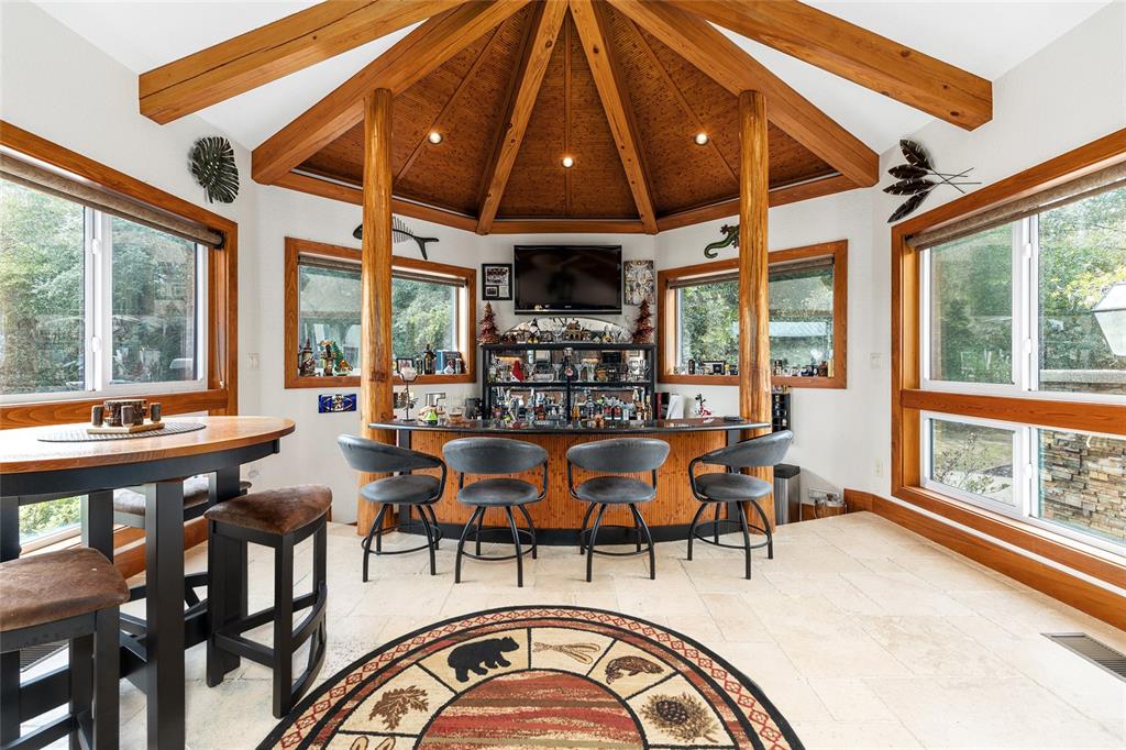Wet Bar Walk-In Closet(s)Ceiling Fan(s) Stone Counters Open Floorplan Solid Wood Cabinets Primary Bedroom Main FloorCathedral Ceiling(s)Exterior Features: