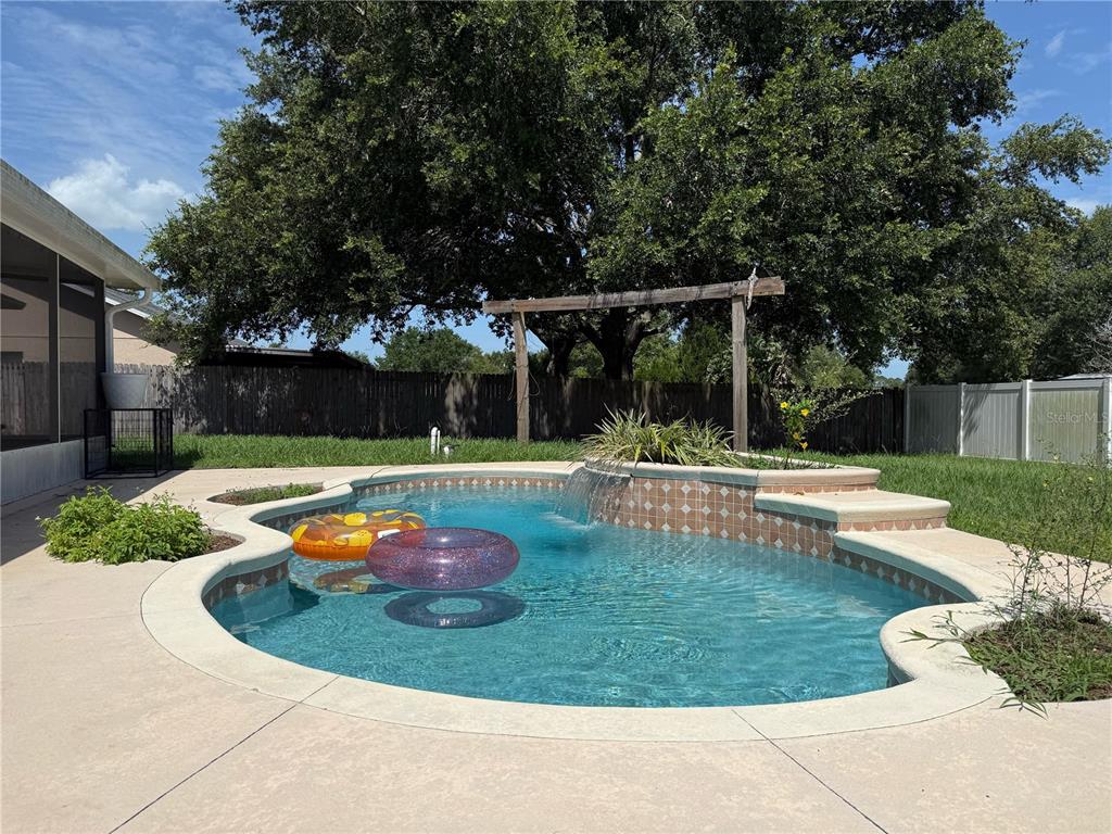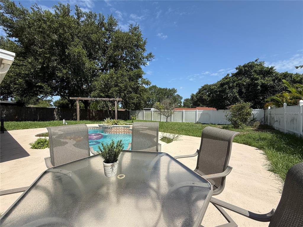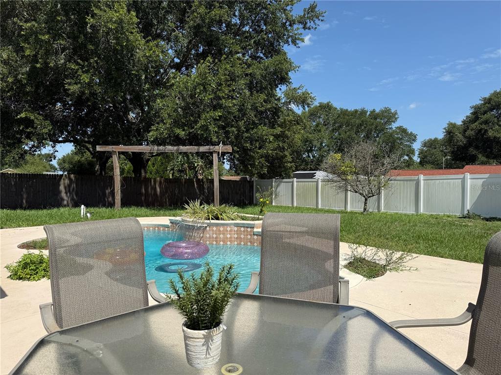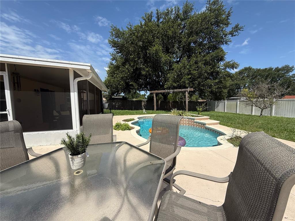 ***pool home*** kitchen cabinets being painted this week***four-bedroom, two-bath home split floor plan with new windows 2024! this home has 5 1/4 inch baseboards throughout, tile on the diagonal in the great room, kitchen and one bedroom; the other three bedrooms have laminate flooring. vaulted ceilings in the great room, and there is a pass-through from the kitchen to the dining room area. the kitchen has newer stainless steel appliances, gas stove, and a pantry. there is a smaller eat-in kitchen area if you prefer this location for morning coffee or casual meals. the primary bedroom has a en suite bathroom, ceramic tile floors, walk in closet. the primary bathroom has ceramic tile flooring, a shower and water closet. bedroom 2 has a double door entry so can be a bedroom or a study or den. the extra-large lanai is a great spot to relax or step out into your backyard and hop in the pool to cool down. the pool is chlorine and has water features to enjoy relax and lounge around in .large screened in patio/lanai as well as as an screened in patio/lanai as well as as a open patio area for additional seating areas and barbecue. fenced rear yard even has some fruit trees. roof- 2020..new windows in 2024, water heater in 2020. great location on a dead-end street with a cul-de-sac. there are sidewalks in the community – meet some neighbors to get some exercise in. easy access to all major roads, including most disney parks in 30 minutes or less. great shopping centers nearby, including major and local restaurants, walmart, publix, and tons of other stores, services, medical and even a new er nearby. situated about halfway between highways 50 and 192, it is an ideal location no matter where you work or play!15349 LAFITE, CLERMONT, FL 34714