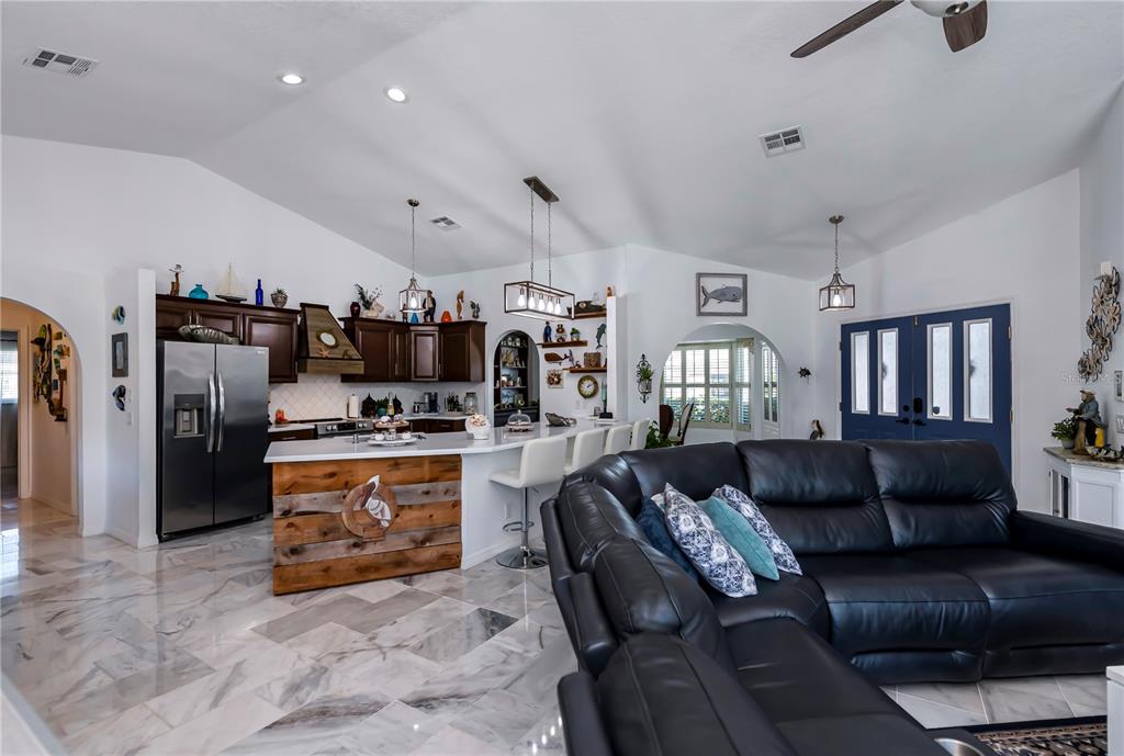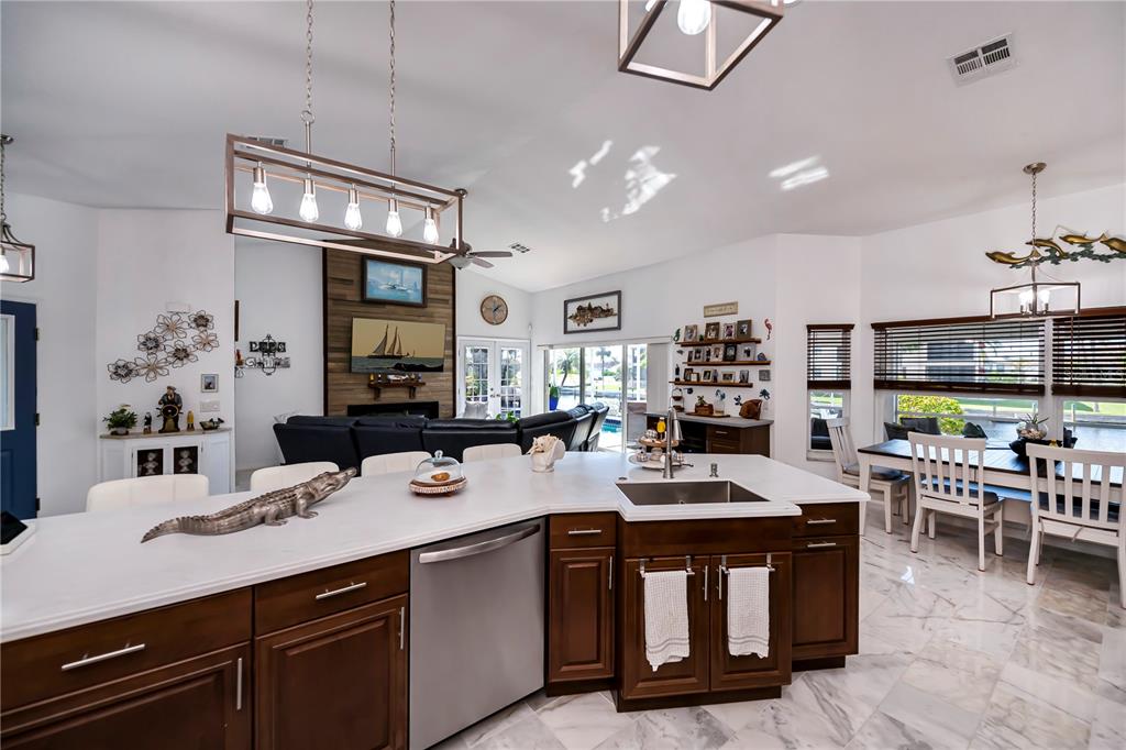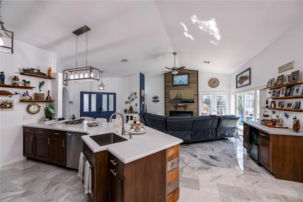 Amazing sailboat water and no bridges home awaits you. this awesome home has been updated from stem to stern. this home is located in the highly sought after bird section of punta gorda isles. less than 10 minutes to buckley's pass and charlotte harbor by your boat. home has never flooded! this home contains 1953 square feet of elegance, and i do mean elegance. a large, screened foyer entrance leads to double entrance doors. inside you will be greeted by soaring ceilings. white carrrara marble floors throughout. huge great room with electric fireplace and accent wall. the updated kitchen with stainless steel appliances with all the bells and whistles, will delight any discriminating chef and includes large center island with snack bar. you will love the master suite. with a huge walk-in closet. master ensuite also opens up to the lanai. now to the other side of the home you will find 2 spacious guest bedrooms and your recently remodeled guest bathroom. and yes,the white carrara marble floors are there as well. outside is your lanai area which includes a nice size pool and separate hot tub with plenty of room to entertain. just a few steps away is your dock with a 10,000 lb boat lift new in 2022. with 117 feet of seawall. you’ll have plenty of room for your sailboat and power boat. the extra wide canal affords easy docking even for the novice. this is a home you will not want to pass up. this is an awesome location for the serious boater. beautiful sunsets await you and you’ll be so close to all historic punta gorda has waiting for you. live like a king on kinglet drive.1542 KINGLET, PUNTA GORDA, FL 33950