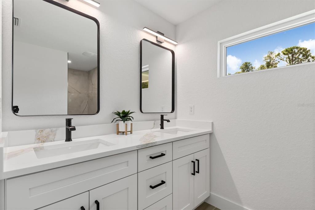 Welcome to your florida oasis — new build not in a flood zone! (1573 sq ft) built to 2024 code with high-end finishes in modern brown tones. fall in love with this open-concept gem that seamlessly blends comfort, style, and tranquility. the spacious layout welcomes you with abundant natural light, soaring ceilings, elegance style and attention to details. interior features you'll love: gourmet kitchen with all appliances included; split floor plan for added privacy ; primary suite oasis featuring a luxurious en suite bathroom, oversized walk-in shower, dual-sink vanity, and large walk-in closet; two spacious guest bedrooms and a stylish guest bathroom on the opposite side of the home. (split floor plan). step outside to the screened-in lanai—your own peaceful retreat perfect for morning coffee or evening relaxation. prime location - located in a quiet, established neighborhood yet close to everything: dining, shopping, and golf just minutes away! short drive to the pristine beaches of boca grande and surrounding gulf coast gems. close to spring training facilities for both the tampa bay rays and atlanta braves. a sister home in sleek black tones. is available next door. ask your agent about this when scheduling your showing.15474 DEMAS, PORT CHARLOTTE, FL 33954