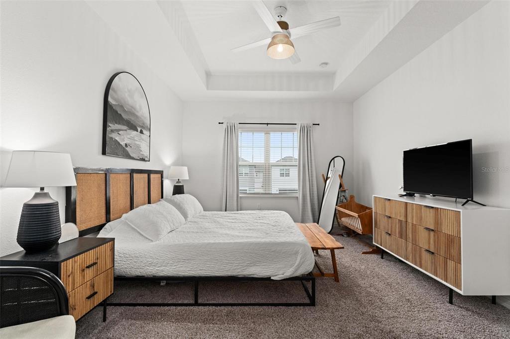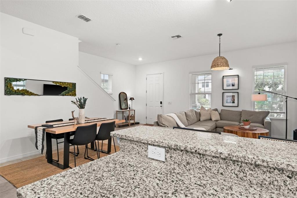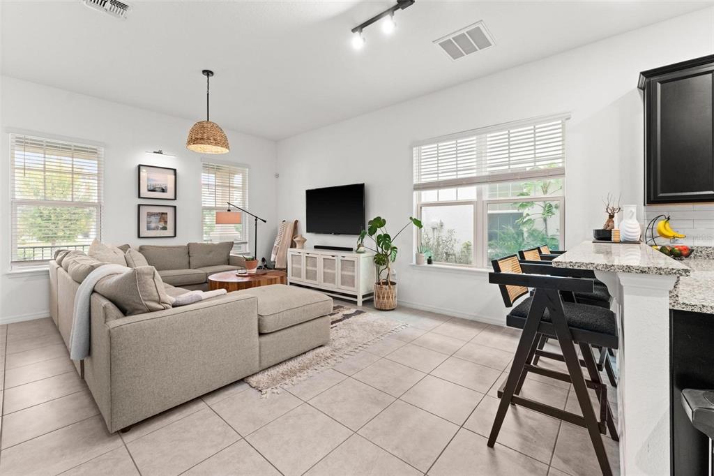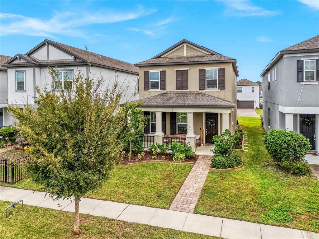 Look no further! this trendy, move-in-ready home is just what you've been looking for! discover the perfect blend of modern style, energy-efficiency, and convenience all in this eye-catching 3 bedroom, 3 bath home, with eco-friendly, cost-saving solar panels, and thoughtfully designed interior, featuring neutral tones and contemporary finishes, creating a versatile canvas. ideally located just minutes from an array of dining, shopping and entertainment options this home welcomes you with a charming front porch, beautiful landscaping and desirable curb appeal. inside is an open-concept great room filled with natural light and effortless flow between the kitchen, dining, and living areas - perfect for hosting gatherings or relaxing with loved ones. the kitchen showcases sleek espresso 42” cabinets, granite countertops, stainless steel appliances, a walk in pantry, and functional peninsula layout/ breakfast bar. the downstairs powder-room bathroom and convenient two-car garage complete the main level. upstairs, a flexible loft space awaits, ideal as a home office, creative studio, or secondary living area. surrounding the loft, you’ll find a generously sized master suite with a tray ceiling, a large walk-in closet, and an en-suite bathroom featuring a dual-sink vanity, garden tub, oversized shower, and private water closet. two additional bedrooms, a shared full bathroom with a shower/tub combo, and a laundry room round out the second floor. outside, a long driveway offers ample off-street parking. the well-designed community enhances your lifestyle with a refreshing pool and a playground, perfect for families and social gatherings. with its modern yet timeless vibe and prime location, this home offers a unique mix of comfort, character, and modern convenience in a fresh, vibrant community!1548 ASTORIA ARBOR, ORLANDO, FL 32824