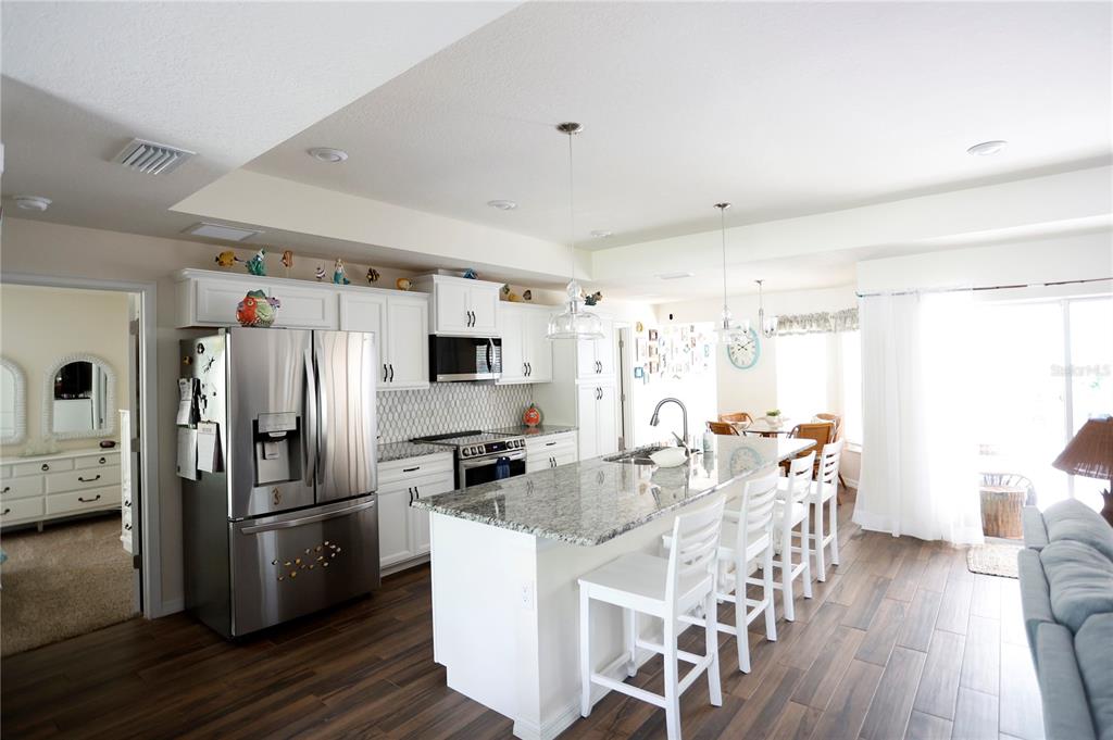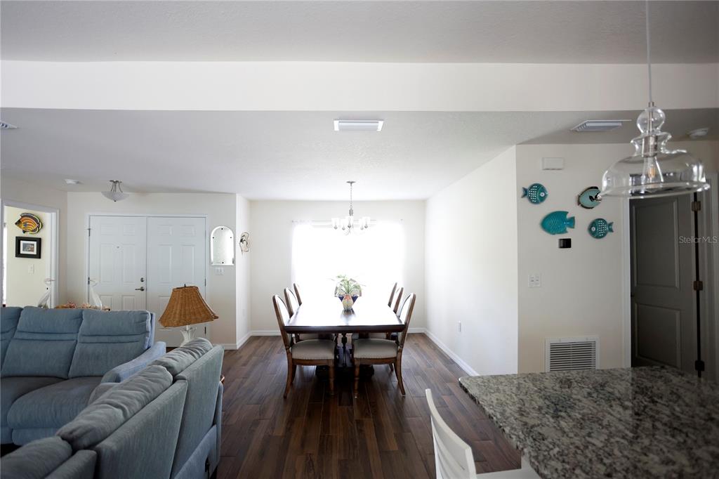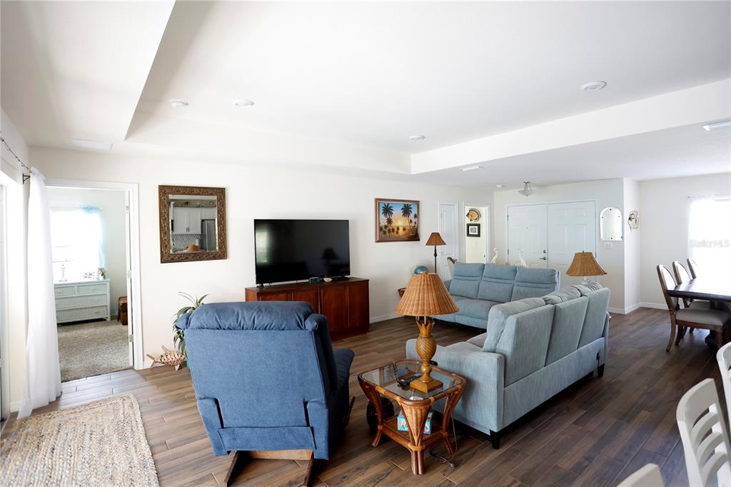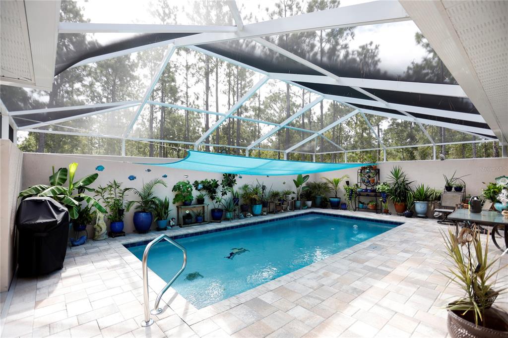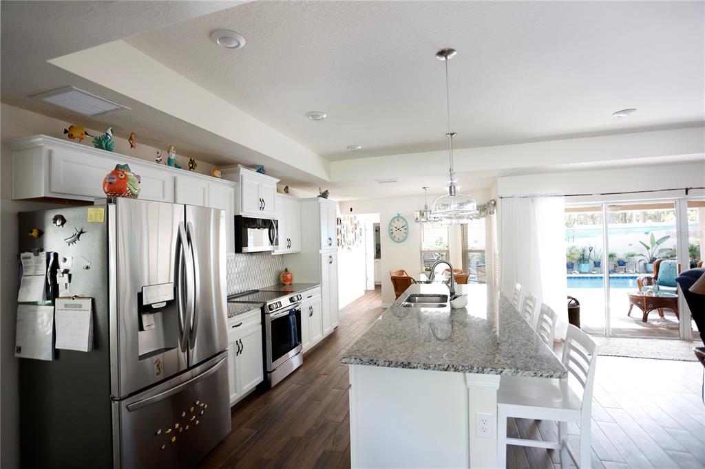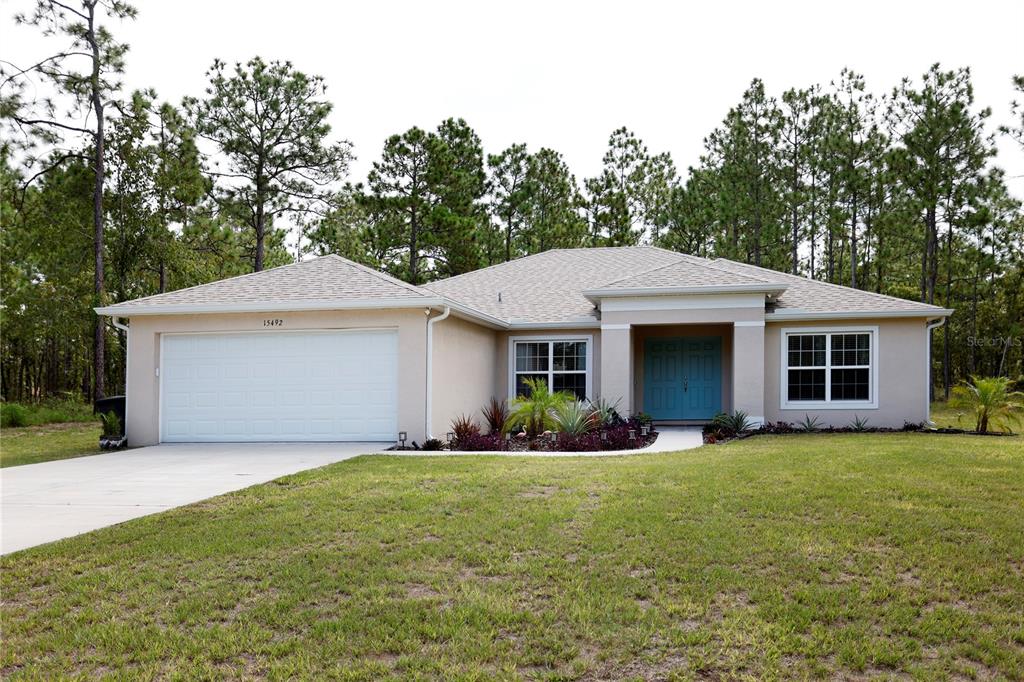 This home weathered hurricane helene and milton without missing a beat. situated 72' above sea level, the home did not experience any damage or loss of power! 2023 built palmwood home in royal highlands. like brand new but without the wait. 5/3 pool home with 2 car garage. pool is in ground with a privacy wall. very nice open concept living area with double split for the bedrooms provides lots of privacy. well appointed kitchen looks out over the family room which looks out over the outdoor pool and deck area. wood plank tiles through the main living area. large lot is almost an acre so lots of area to expand. sellers have plans in place for a pole barn. partially fenced with a dog run. impeccably maintained, this home is a must see!15492 POMP, WEEKI WACHEE, FL 34614